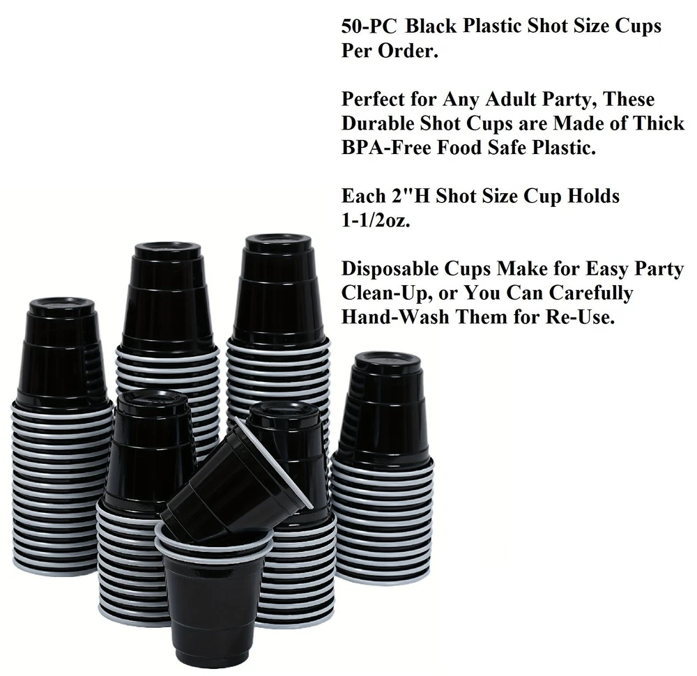 50-PC BLACK Plastic Adult Cocktail Party Shooter Cups 1.5-oz Disposable 2"H #549 50-PC BLACK Plastic Adult Cocktail Party Shooter Cups 1.5-oz Disposable 2"H #549 Click images to enlarge Description 50-PC BLACK Plastic Adult Cocktail Party Shooter Cups 1.5-oz Disposable 2"H. Serve up shots of adult beverages at your bachelor party, wedding, Mardi Gras, birthday, or just to have some fun with these green shot glasses. Made of plastic, each is disposable to make clean up a breeze! Details: Set of 50 Shot Glasses Holds 1.5-Ounces Each 2"High Made of Plastic Disposable - Makes Clean Up Easy BPA-Free ~Buy more than one item at the same time from our eBay store and save in shipping costs!~ (If buying different items, just put them all in your cart before paying, to get the combined shipping discount!) Shipping We use UPS SurePost, UPS, USPS and FedEx SmartPost to deliver our products to your home, depending on which method is more efficient for your order. We use suppliers for some of our orders and our suppliers will choose the service that is used for these orders. PLEASE MAKE SURE YOUR ADDRESS CAN BE VERIFIED BY USPS. Please allow 7-10 days for the item to reach your home. We cannot be responsible for items shipped to incorrect or incomplete addresses, which may result in the cancellation of your order. YES, we do combine shipping! The highest shipping cost item ships at regular price, and each additional item ships at $2.00 more in additional shipping charges. If you are buying several different items from our store, put them all into your cart before paying to get the combined shipping discount. Terms of Sale Unless otherwise noted, we accept returns up to 30 Days after your purchase, through the eBay Returns System. Please use eBay to contact us if there is any problems or issues with your order. In some cases, we order the item purchased from one of our suppliers, and it is shipped directly from our supplier to the customer. There are times when an item unexpectedly becomes unavailable from our supplier. We do our best to check on all of the items availability several timea a day. If an item is unexpectedly unavailable, we will issue a refund immediately. Contact Us Please use the message center in eBay to contact us. We check our message box in eBay several times a day. If you have any questions or concerns with your order, please feel free to contact us. We care very much about our customers being 100% happy with their purchases. We would very much appreciate you letting us resolve any issues you may have with your order by contacting us first, before taking any other unnecessary actions. Get images that make Supersized seem small. Showcase your items with Auctiva's Listing Templates! THE simple solution for eBay sellers.