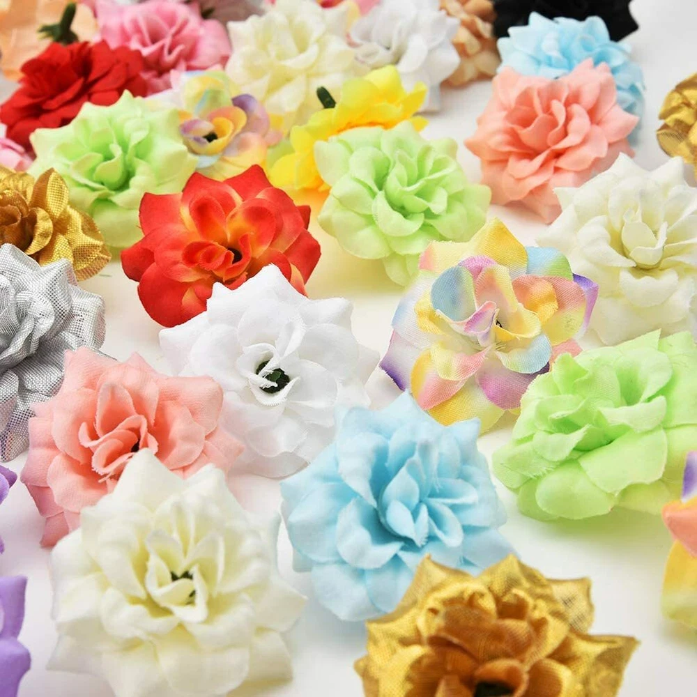 50PCS Artificial Flowers Silk Roses Heads Bulk for Wedding Party Decoration 2"