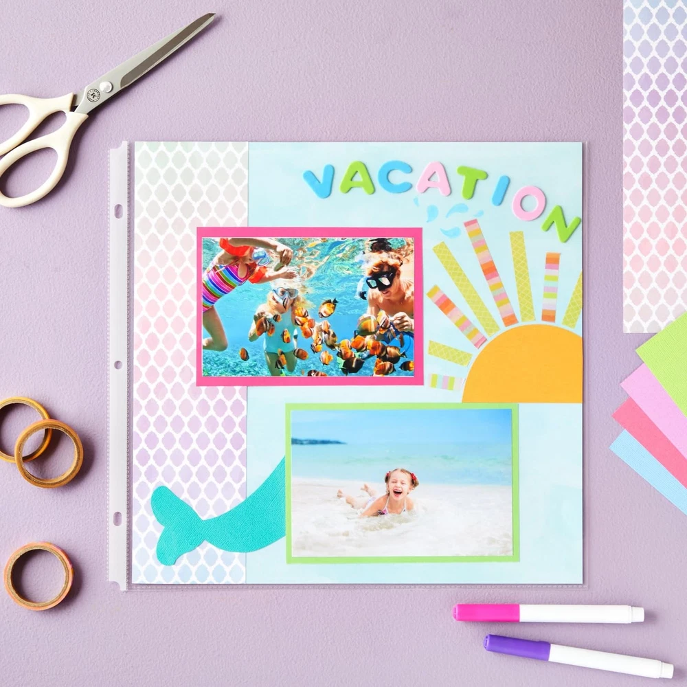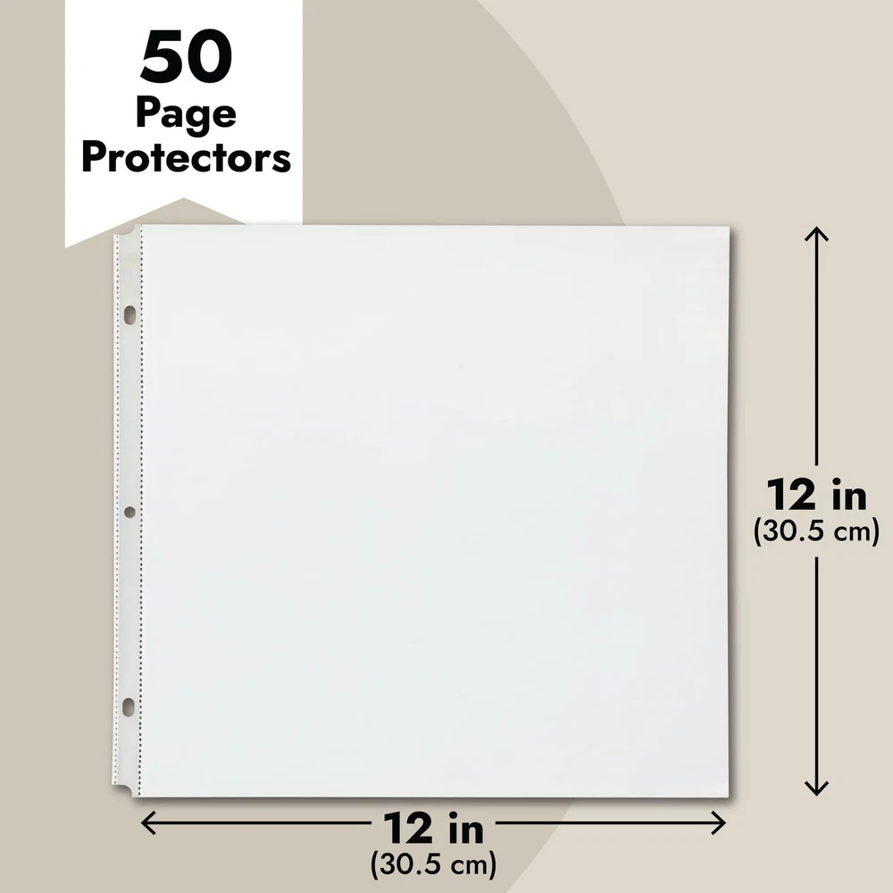 Preserving your cherished memories has never been easier with our 50-pack of 12 x 12 plastic sheet protectors. These protective sleeves are designed to fit perfectly in any scrapbook album with plastic sleeves, ensuring your pages remain clean, organized, and free from damage. Made with durable 0.16mm thick plastic material, these scrapbook refills 12x12 top load pages are built to last. The heavy-duty plastic construction provides excellent protection for your pages and helps to keep them from bending or tearing. You can trust that your pages are safe and secure with these full-size picture plastic sleeves for scrapbook 12x12. These scrapbook page protectors 12x12 are great for all of your scrapbooking needs. The top-loading design of these scrapbook refill pages makes it easy to add and remove pages, while the pre-punched holes allow them to fit perfectly in any 3-ring binder or scrapbook album with plastic sleeves. In this bulk pack, you will receive 50 scrapbook refills 12x12 top load pages, providing plenty of space to store and display your memories. Each protective sleeve 12x12 features a clear design that allows you to easily view and showcase your photos, ticket stubs, and other mementos. You won't have to worry about smudges or fingerprints detracting from your treasured mementos. Whether you're creating a scrapbook to commemorate a special occasion or simply want to document your daily life, these protective sleeves 12x12 are an excellent choice. They are perfect for preserving your most precious memories for years to come. Protective Sleeves 12 x12: These clear page protectors measure 12x12 inches and feature a top-loading design; plus, they're able to accommodate two layouts per protector, back to back Easy to Use: The protective sleeves are hole punched, allowing for easy insertion into standard 3-ring binders or scrapbook albums so you can quickly add new pages to your book Clear Design: The scrapbook sleeves feature a transparent design so you can clearly see your photos while they remain protected and secure in your album or book Heavy-Duty: Scrapbook refill pages are made with a durable 0.16mm plastic material that’s long-lasting and easy to handle, protecting your pages from everyday wear and tear Bulk Pack: You’ll get 50 scrapbook pages 12x12 refill in total; whether you're a beginner or a seasoned scrapbooker, this pack is a convenient and affordable way to stock up on quality sheets