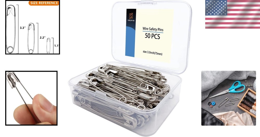 50PCS 3'' Stainless Steel Safety Pins - Extra Strong, Reusable & Durable ‹ › ‹ › ‹ › ‹ › ‹ › ‹ › ‹ › ‹ › 50PCS 3'' Stainless Steel Safety Pins -Extra Strong, Reusable & Durable Product Features: Extra Strong: Crafted from robust stainless steel that resists bending, ensuring durability and reliability. Nice Quality: These utilitarian safety pins are designed for practicality, making them a convenient choice for everyday use. Widely Used: Perfectly adaptable for home and office, allowing for quick and easy solutions to fastening needs. More Safety: Each safety pin includes a protective cover to shield you and your family from sharp points. Multipurpose: Ideal for fastening paper, fabric, or clothing, these safety pins provide versatile solutions for numerous applications. Broad Uses: Conveniently satisfies your daily and particular needs with 50 pieces included. Essential accessories for any sewing kit; ideal for quickly fixing clothing malfunctions and repairs. Perfect for sewing, quilting, craft projects, and various everyday tasks. An indispensable fastener tool set suitable for both home and office settings. Great for a wide range of craft projects, jewelry making, dressmaking, and sewing activities. Why Choose Our Stainless Steel Safety Pins? Elevate your craftsmanship and everyday tasks with our 50PCS 3'' Stainless Steel Safety Pins. Designed for durability, these extra strong pins ensure you won’t face any bending or breaking, making them a reliable addition to your toolkit. Their versatility allows for seamless use in various settings—be it for sewing, crafting, or organizing your office. Each pin is equipped with a safety cover, providing peace of mind while using them around children and in your home. Whether you are an avid crafter or simply in need of dependable fasteners, these safety pins are a must-have. Order your set today and experience the convenience and reliability that these pins offer! Shipping Free & Fast Shipping - We offer free shipping to most of the USA with a normal delivery time of 3-7 days. However, due to the current situation, additional delivery time (up to 3 weeks) may be required for some items. Alternative Carriers - We may use alternative carriers (e.g. USPS, FedEx, UPS, etc.) to ensure your package arrives safely and on time. Due to the use of multiple carriers, we are unable to provide a tracking number automatically. Handling Time - Orders are processed and shipped within 1-2 business days of receiving cleared payment. Shipping Restrictions - Shipping to Alaska, Hawaii, Puerto Rico, Guam, and other US territories may incur shipping charges or delivery restrictions. Please contact us before ordering, or your order can be refunded/cancelled. State Restrictions - There may be restrictions based on your state of purchase. For example, certain items may not be shipped to California due to state regulations. Contact for Tracking Updates - If you require tracking updates or have any concerns about the delivery of your order, please feel free to contact us, and we will be happy to assist you. Return 30-Day Hassle-Free Returns - We want you to be completely satisfied with your purchase. If you are not, you can return the item within 30 days of receiving it for a full refund or exchange. Easy Return Process - To start a return, simply contact us and we will provide you with a prepaid return shipping label and detailed instructions. Restocking Fee - There are no restocking fees for returns. However, the buyer is responsible for return shipping costs if the return is not due to a seller's error. Refund Processing Time - Refunds will be processed within 5 business days of receiving the returned item in its condition. Payment We accept all major credit cards, PayPal, and Apple Pay for your convenience. Your payment information is secure and encrypted to ensure a safe and seamless transaction. Please complete your payment within 3 days of purchase to avoid any delays in shipping. Feedback Your feedback is extremely important to us. We strive to provide the best products and customer service possible. If you are satisfied with your purchase, please take a moment to leave us a positive review. If you have any concerns or issues with your order, please contact us before leaving negative feedback. We are committed to resolving any problems and ensuring your satisfaction. Contact Us If you have any questions or concerns, please feel free to out to our customer support team. You can contact us through the eBay messaging system. We are available Monday to Friday, 9:00 am to 5:00 pm EST, and we will do our best to respond to your inquiry within 24 hours. Buy it now and enjoy a pleasant shopping experience! MPN: Safety_Pins Unit Quantity: 50 Type: Safety Pin Eye Shape: Round Size: 3 Tip Type: Sharp Unit Type: lb