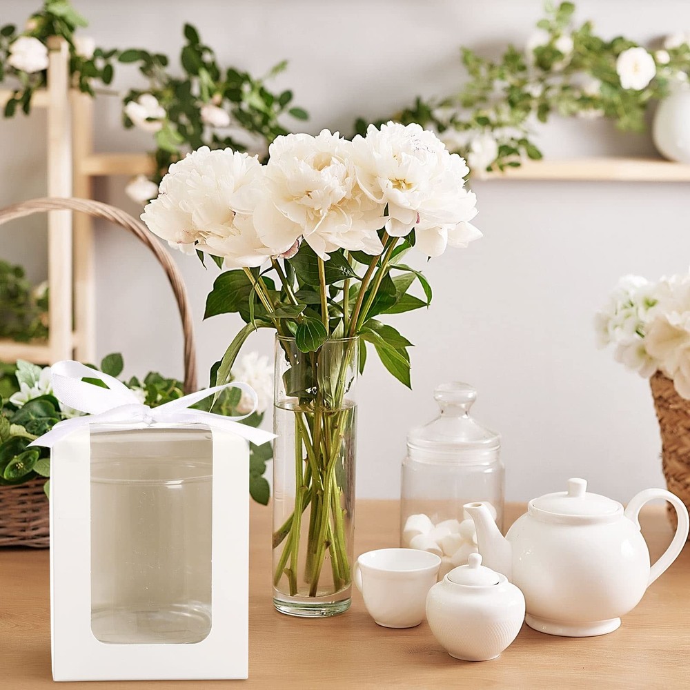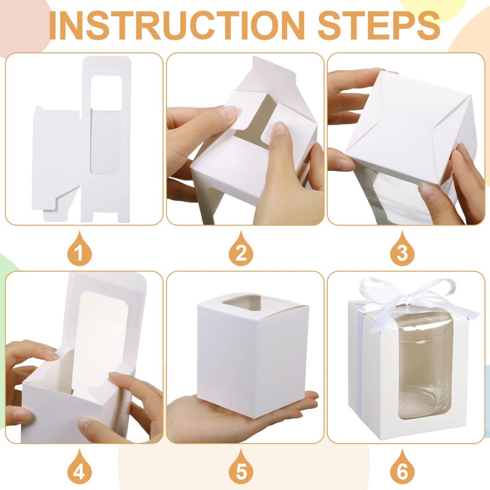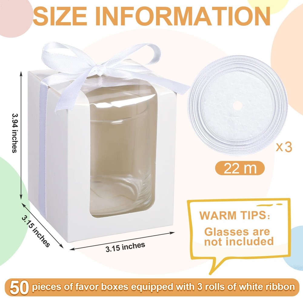 Features: Clear window design: These gift boxes for glasses are designed with a transparent window, making it easy to see through what's in the box. With this window, you can also display your baked goods while putting them in the boxes. Multiple functions: This wine glass box for gift can be not only applied for wrapping wine glass, but also nice for holding bread, cupcake, candy and more, your friend will be happy to receive this beautiful gift. Specifications: Material: cardboard, PVC Color: white Size: approx. 3.94 x 3.15 x 3.15 inches/ 10 x 8 x 8 cm Package includes: 50 x White favor boxes 3 Rolls of white ribbon Notes: Manual measurement, please allow slight errors on size. The color may exist a slight difference due to different screen displays. Boxes only, wine glass is not included in the package. Winding risk may exist, please keep away from little kids. Wine Glass Gift Boxes Bulk: you will receive 50 pieces of wine glass boxes equipped with 7 rolls of rope, sufficient quantity can meet your daily packaging and decoration demands Appropriate Size: each stemless wine glass gift box measures approx. 3.94 x 3.15 x 3.15 inches/ 10 x 8 x 8 cm, suitable for holding 9 oz stemless wine glass, these cake boxes are elegant and delicate Safety Materials: these wine glass boxes are made of cardboard material with see through PVC window, safe and reliable; The equipped ribbon can be trimmed into suitable size, convenient to use Exquisite Party Decor: you can use these white favor boxes to display wine glass, cupcake, candies, candles, balls, crafts and more, adding an elegant atmosphere to your party; Note: boxes only, wine glass is not included in the package Wide Range of Applications: these stemless wine glass boxes can be applied for various purposes, suitable as gift boxes for holiday gifts, also nice for weddings, birthdays, parties, bridal showers and other festive celebrations, which can enhance the festive atmosphere