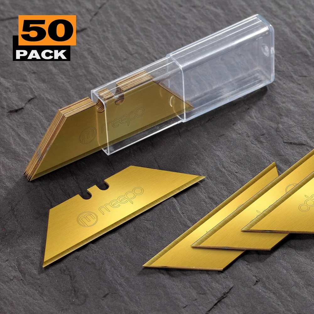 50-Pack Utility Knife Blades, Titanium Fully Plated, Durable SK-2 Razor Blades for Utility Knife Box Cutter, Never Rust, Extra Durable Made from high strength SK2 steel with titanium fully plated for superior durability and long-lasting sharpness 5X sharper and 15X durable than normal blades. Rust-resistant design for longevity and reliability Each 10-piece blades storaged in hard transparent plastic case Totally 50-pack utiity knife blades provide a long-lasting supply for all your cutting needs Perfect for sharing with coworkers, friends, or family members. And with 50 blades per box, you'll have plenty of blades to last you for multiple projects, no matter what your needs. Upgrade your cutting tool game today with Utility Knife Blades Shipping We offer FREE shipping on all orders! We ship within Three business days of payment, usually sooner. We use a selection of shipping services such as UPS, FedEx, USPS etc. We only ship to the lower 48 states, no APO/FPO addresses or PO Boxes allowed. Local pickups and combined shipping options are not provided at this time. Return You can return a product for up to 30 days from the date you purchased it. Any product you return must be in the same condition you received it and in the original packaging. Please keep the receipt. Payment We accept payment by any of the following methods: PayPal Please pay as soon as possible after winning an auction, as that will allow us to post your item to you sooner! Feedback Customer satisfaction is very important to us. If you have any problem with your order, please contact us and we will do our best to make you satisfied. Contact Us If you have any queries, please contact us via ebay. We usually respond within 24 hours on weekdays. Please visit our eBay store to check out other items for sale! Thank you for shopping at our store.