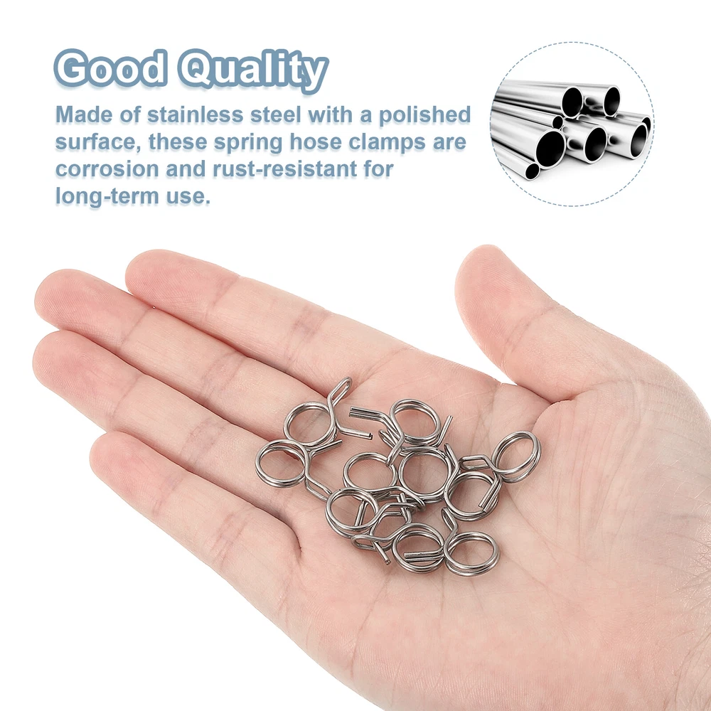 Document Description: Material: Made of stainless steel with a polished surface, these spring hose clamps are corrosion and rust-resistant for long-term use.Design: The spring hose clamps are designed with double-wound wire, which can spread the clamping force around the hose, and is more cost-effective than single-wire clamps.Easy to Use: These spring hose clamps are very easy to use, just use pliers to open the clamp and easily place it on the pipe.Wide Application: Spring hose clamps are widely used in automotive, agricultural, factory, and construction industries. Mainly used for fastening interfaces, they can firmly lock power equipment fuel lines, air hoses, water pipes, silicone hoses, vacuum hoses, automobile fuel lines, motorcycle air pipes, etc.Specification:Material: Stainless SteelFinish: PolishedInner Diameter: 4mm / 0.16inchMaximum Open Inner Diameter: 5.1mm/0.2inchWire Diameter: 0.8mm / 0.03inchPackage Content: 50pcs x Spring Hose Clamp Double Wire Spring Hose Clamp, 50pcs 304 Stainless Steel 10mm Spring Clips USD 11.2 Double Wire Spring Hose Clamp, 20pcs 304 Stainless Steel 6mm Spring Clips USD 7.78 Double Wire Spring Hose Clamp, 10pcs 304 Stainless Steel 5.5mm Spring Clips USD 6.71 Double Wire Spring Hose Clamp, 20pcs 304 Stainless Steel 3.5mm Spring Clips USD 7.49 Spring Hose Clamp, 50pcs 65Mn Steel 18mm Low Pressure Air Clip, Zinc Plated USD 21.04 Spring Hose Clamp, 10pcs 65Mn Steel 9mm Low Pressure Air Clip, Nickel Plated USD 7.03 50Pcs 0.16-0.2 Inch Double Wire Spring Hose Clamp, Adjustable Spring Clips Description: Material: Made of stainless steel with a polished surface, these spring hose clamps are corrosion and rust-resistant for long-term use. Design: The spring hose clamps are designed with double-wound wire, which can spread the clamping force around the hose, and is more cost-effective than single-wire clamps. Easy to Use: These spring hose clamps are very easy to use, just use pliers to open the clamp and easily place it on the pipe. Wide Application: Spring hose clamps are widely used in automotive, agricultural, factory, and construction industries. Mainly used for fastening interfaces, they can firmly lock power equipment fuel lines, air hoses, water pipes, silicone hoses, vacuum hoses, automobile fuel lines, motorcycle air pipes, etc. Specification: Material: Stainless Steel Finish: Polished Inner Diameter: 4mm / 0.16inch Maximum Open Inner Diameter: 5.1mm/0.2inch Wire Diameter: 0.8mm / 0.03inch Package Content: 50pcs x Spring Hose Clamp Hot Item Steel Band Clamp 12mm Hose Tube Spring Clips Clamp Manganese Steel 50Pcs USD 12.37 Double Wire Spring Hose Clamp, 20pcs 304 Stainless Steel 5mm Spring Clips USD 7.49 Steel Band Clamp 26mm Hose Tube Spring Clips Clamp Black Manganese Steel 10Pcs USD 12.49 Fuel Line Hose Clips, 10pcs 21mm 304 Stainless Steel Tube Spring Clamps(Silver) USD 7.56 Steel Band Clamp 12mm Hose Tube Spring Clips Clamp Silver Manganese Steel 10Pcs USD 7.22 Payment We accept eBay payment. Please do not email us to ask for other payment option. We appreciate prompt payment and look forward to your business in the future. Unpaid item will be filed without receiving payment in 7 days from listing ended. Shipping Usually we ship your order out within 24 hours in business day. For shipping and handling charges (S&H) for specific item, please refer to the item listing page for more details. Please make sure your shipping address is correct. We are not responsible for any loss in transit if a wrong address is provided. Return Policy Returns for exchange are permitted and must be initiated by the buyer within 30 days upon receipt. If you would like to return your product(s) for repair / replacement / refund, please kindly contact our customer service representatives via email for an authorized RMA number. Your returned product(s) will not be processed without a completed RMA. About Us We are continually expanding our product selection to better serve your need. We look forward to providing the best sevice to you - our dear customers, so take a look around our store and find the product that you want. You can put your trust in us! If you need any help or have any suggestions, please don't hesititate to contact us anytime , we will reply you within 24 hours and try the best to help you. Description Policy 50Pcs 0.16-0.2 Inch Double Wire Spring Hose Clamp, Adjustable Spring Clips Description: Material: Made of stainless steel with a polished surface, these spring hose clamps are corrosion and rust-resistant for long-term use. Design: The spring hose clamps are designed with double-wound wire, which can spread the clamping force around the hose, and is more cost-effective than single-wire clamps. Easy to Use: These spring hose clamps are very easy to use, just use pliers to open the clamp and easily place it on the pipe. Wide Application: Spring hose clamps are widely used in automotive, agricultural, factory, and construction industries. Mainly used for fastening interfaces, they can firmly lock power equipment fuel lines, air hoses, water pipes, silicone hoses, vacuum hoses, automobile fuel lines, motorcycle air pipes, etc. Specification: Material: Stainless Steel Finish: Polished Inner Diameter: 4mm / 0.16inch Maximum Open Inner Diameter: 5.1mm/0.2inch Wire Diameter: 0.8mm / 0.03inch Package Content: 50pcs x Spring Hose Clamp Double Wire Spring Hose Clamp, 50pcs 304 Stainless Steel 10mm Spring Clips USD 11.2 Double Wire Spring Hose Clamp, 20pcs 304 Stainless Steel 6mm Spring Clips USD 7.78 Double Wire Spring Hose Clamp, 10pcs 304 Stainless Steel 5.5mm Spring Clips USD 6.71 Double Wire Spring Hose Clamp, 20pcs 304 Stainless Steel 3.5mm Spring Clips USD 7.49 Spring Hose Clamp, 50pcs 65Mn Steel 18mm Low Pressure Air Clip, Zinc Plated USD 21.04 Spring Hose Clamp, 10pcs 65Mn Steel 9mm Low Pressure Air Clip, Nickel Plated USD 7.03 Hot Item Steel Band Clamp 12mm Hose Tube Spring Clips Clamp Manganese Steel 50Pcs USD 12.37 Double Wire Spring Hose Clamp, 20