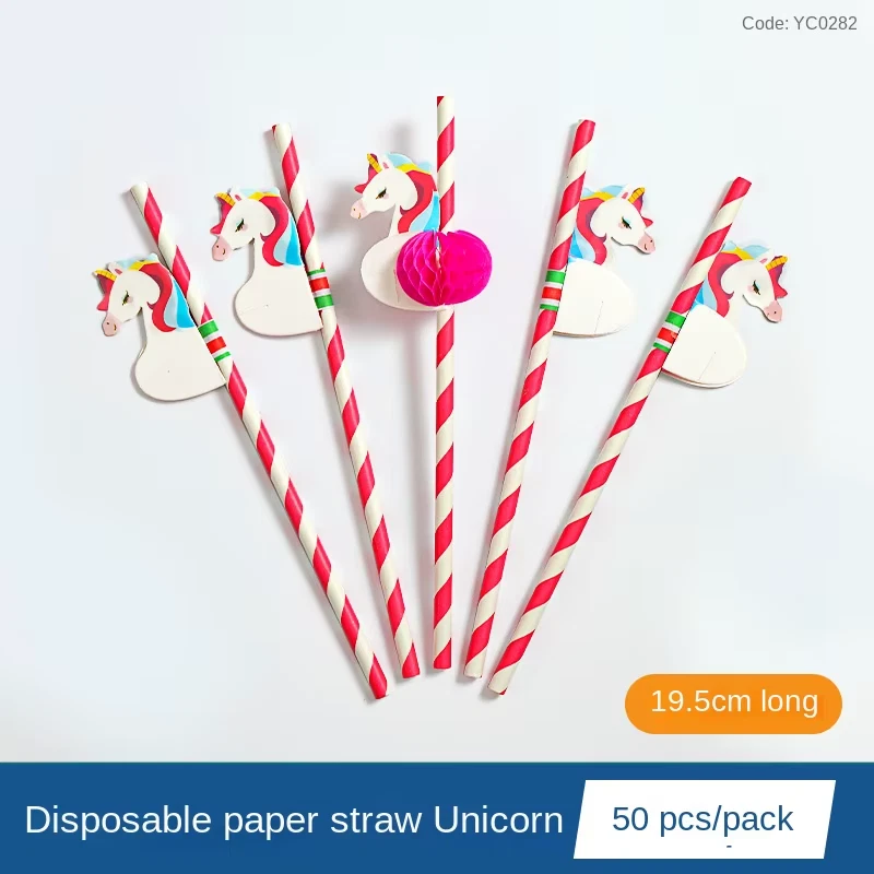 50Pcs Creative Paper Straws Disposable Biodegradable Paper Environmental Straws