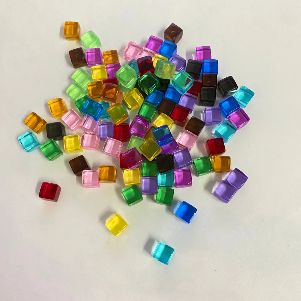 Material: Plastic Specification: 8*8*8MM Color:As picture(Some pieces was not smooth on the corner,if you can accept,pls order for it,thanks!) Package include:50 Pcs Cube Note: 1.Please allow 0.1-0.3mm error due to manual measurement. 2.Due to the difference between different Monitors, the picture may not reflect the actual color of the article.