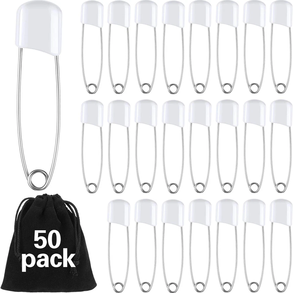 50-Piece Plastic Head Diaper Safety Pins for Cloth Nappies 2.2 Inch