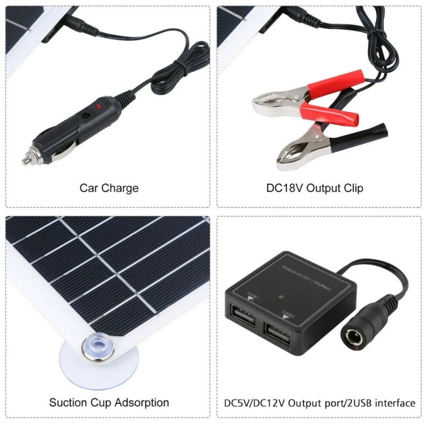 Product Description 50W 12V 20/40/60/100A Solar Panel Kit Battery Charger Controller Caravan Boat Features: Brand new and high quality With a semi-flexible design, you can bent the solar panel appropriately to suit a wider range of applications. The solar panels comes with high conversion rate, high stability and good durability. It has a single crystal R chip and can be used in any place and situation like automobiles, homes, boat, motorcycles, etc. With the strong sun in the summer, the solar panel can efficiently convert solar energy. Equipped with advanced polyethylene coating technology, the surface of the battery is plated with dark blue reflective film. The solar panels can withstand all kinds of environments with high waterproof performance. Anti-scratch, non-foaming, easy to clean. Specifications: Color: Black No-load voltage: 20.8V DC Load voltage: 12V Output voltage: 18V Charging time: 2 hours Battery panel specification: high-efficiency monocrystalline board Size: 28*28cm Application: Mobile Conversion rate: 23-24% Working temperature: -40℃+85℃ Application: Car batteries, cars, RVs, ships, airplanes. Package Included: 1x solar panel 4x suction cup 1x clip 1x car charger 1x DC male cable If you have any questions, please feel free to contact us via ebay. We usually respond within 24 hours. Payment Shipping Returns Contact Us We accept all verified payments from ebay. Orders will be shipped after receiving cleared payment. Payment due within 7 days after auction ends and for buy it now listings. We ship most of our orders within 24 hours, and may up to 48 hours for. If you want faster shipping way. Please contact us before making payment. Sometimes due to problems with our transportation company system, your shipping information may be delayed to update. We recommend that you try again after 3-4 days. If you still haven't checked the shipping information, you can contact us by ebay message. Always believe we can figure things out with communication, if it comes to return, the pacakge must be intact and the same as you receive. If you have any questions, please feel free to email our service specialists 24 Hours a Day, 7 Days a Week. We will reply you ASAP. Return/refund is accepted within 30 days after the buyer receives the item. NO exchange will be accepted after 30 days from the date when the item is received. Please contact us first before returning your product!!! If you have any questions, our Customer Service staffs welcome you to email us. We strive to answer all questions and resolve any problems as quickly as possible. You can contact us 7*24, we will reply at the first time, and we will surely solve your problems. Note: 1.We try our best to reply to your emails as soon as possible, however, due to high volume of daily incoming emails and time zone difference, we may not be able to reply your emails immediately. Please allow 1 business days for us to response. If you do not receive any reply from us, please check your email ensuring your mailbox has not reached full size. 2.Due to some ISP SPAM filter settings, you may not be able to receive our replies; if you have problems receiving our emails, you may need to use a different email account to contact us. 3.Please give us the opportunity to resolve any problem. We understand the concerns and frustrations you might have, and will try our best to resolve the issues. Please email us before leaving any negative feedback or open any dispute on PayPal. 4.We care about our valued customers, and will always try to help you. So if you have any problems, please e-mail us immediately. Payment We accept all verified payments from ebay. Orders will be shipped after receiving cleared payment. Payment due within 7 days after auction ends and for buy it now listings. Shipping We ship most of our orders within 24 hours, and may up to 48 hours for. If you want faster shipping way. Please contact us before making payment. Sometimes due to problems with our transportation company system, your shipping information may be delayed to update. We recommend that you try again after 3-4 days. If you still haven't checked the shipping information, you can contact us by ebay message. Returns Always believe we can figure things out with communication, if it comes to return, the pacakge must be intact and the same as you receive. If you have any questions, please feel free to email our service specialists 24 Hours a Day, 7 Days a Week. We will reply you ASAP. Return/refund is accepted within 30 days after the buyer receives the item. NO exchange will be accepted after 30 days from the date when the item is received. Please contact us first before returning your product!!! Contact Us If you have any questions, our Customer Service staffs welcome you to email us. We strive to answer all questions and resolve any problems as quickly as possible. You can contact us 7*24, we will reply at the first time, and we will surely solve your problems. Note: 1.We try our best to reply to your emails as soon as possible, however, due to high volume of daily incoming emails and time zone difference, we may not be able to reply your emails immediately. Please allow 1 business days for us to response. If you do not receive any reply from us, please check your email ensuring your mailbox has not reached full size. 2.Due to some ISP SPAM filter settings, you may not be able to receive our replies; if you have problems receiving our emails, you may need to use a different email account to contact us. 3.Please give us the opportunity to resolve any problem. We understand the concerns and frustrations you might have, and will try our best to resolve the issues. Please email us before leaving any negative feedback or open any dispute on PayPal. 4.We care about our valued customers, and will always try to help you. So if you have any problems, please e-mail us immediately. powered by