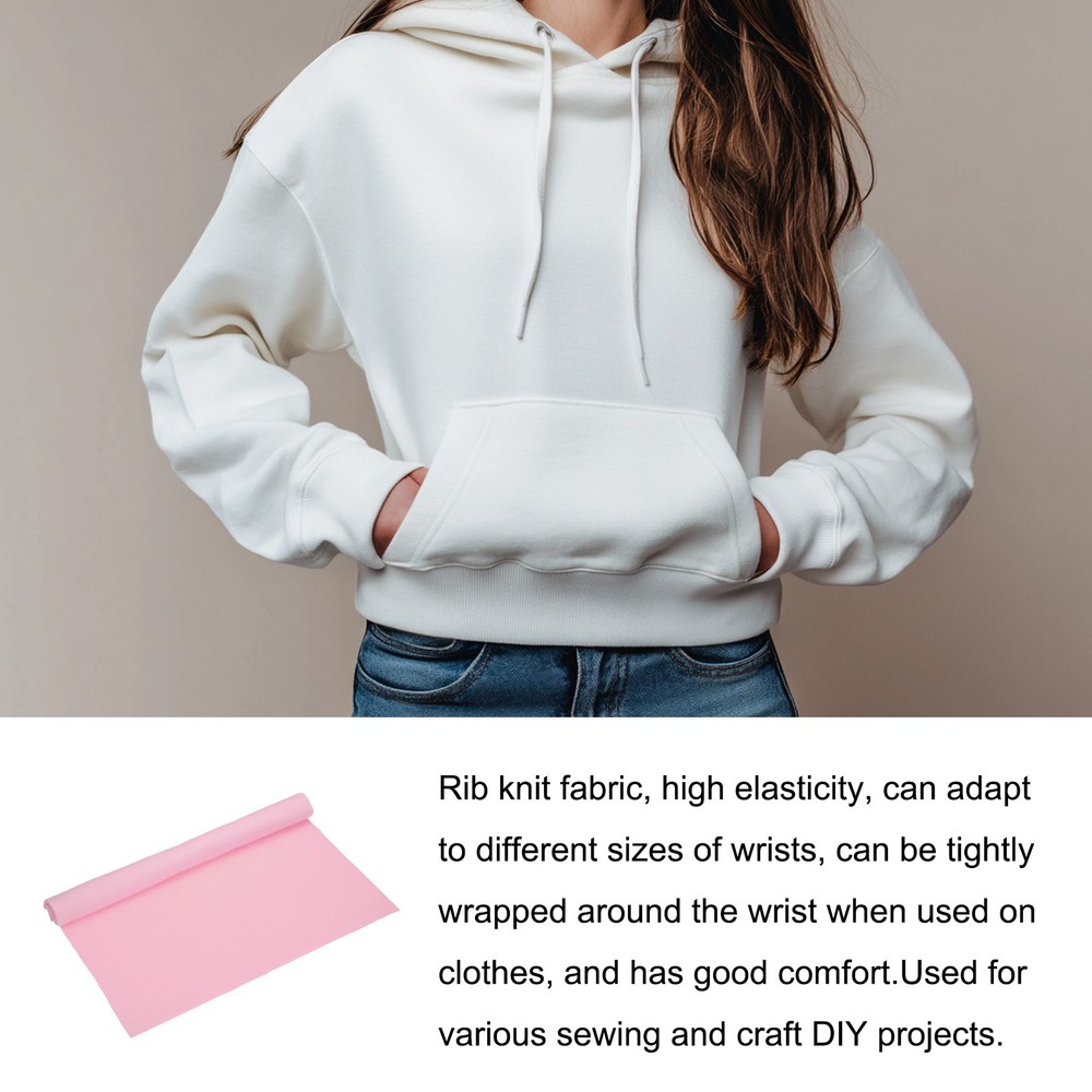50cm x 1.2m Elastic Cuffs Ribbed Trim Cotton Fabric Knitted Stretch Band Pink