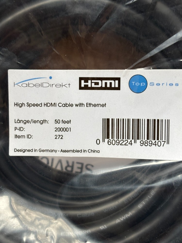 Unleash the full potential of your home entertainment setup with the KabelDirekt HDMI Cable. At a generous length of 50 feet, this cable offers ample reach for connecting devices without the need for extensions. Crafted with precision, it's designed to transmit a pristine signal for optimal audio and video quality.Engineered in Germany and originating from China, this KabelDirekt cable exemplifies both quality and reliability. The robust construction ensures durability while the gold-plated connectors provide a high-quality connection that resists corrosion. Whether for your TV, Blu-ray player, or gaming console, this HDMI cable is an essential accessory for a seamless entertainment experience.
