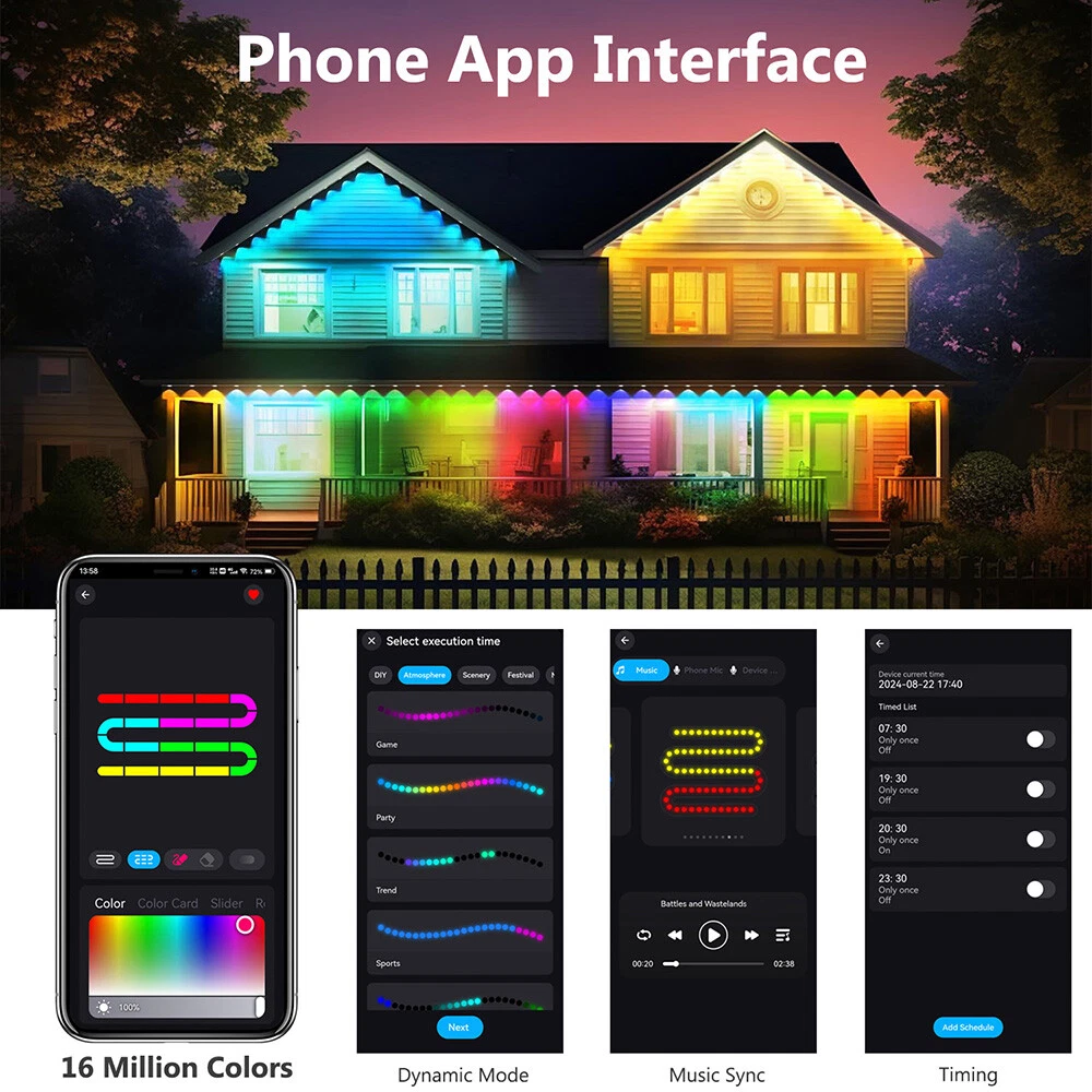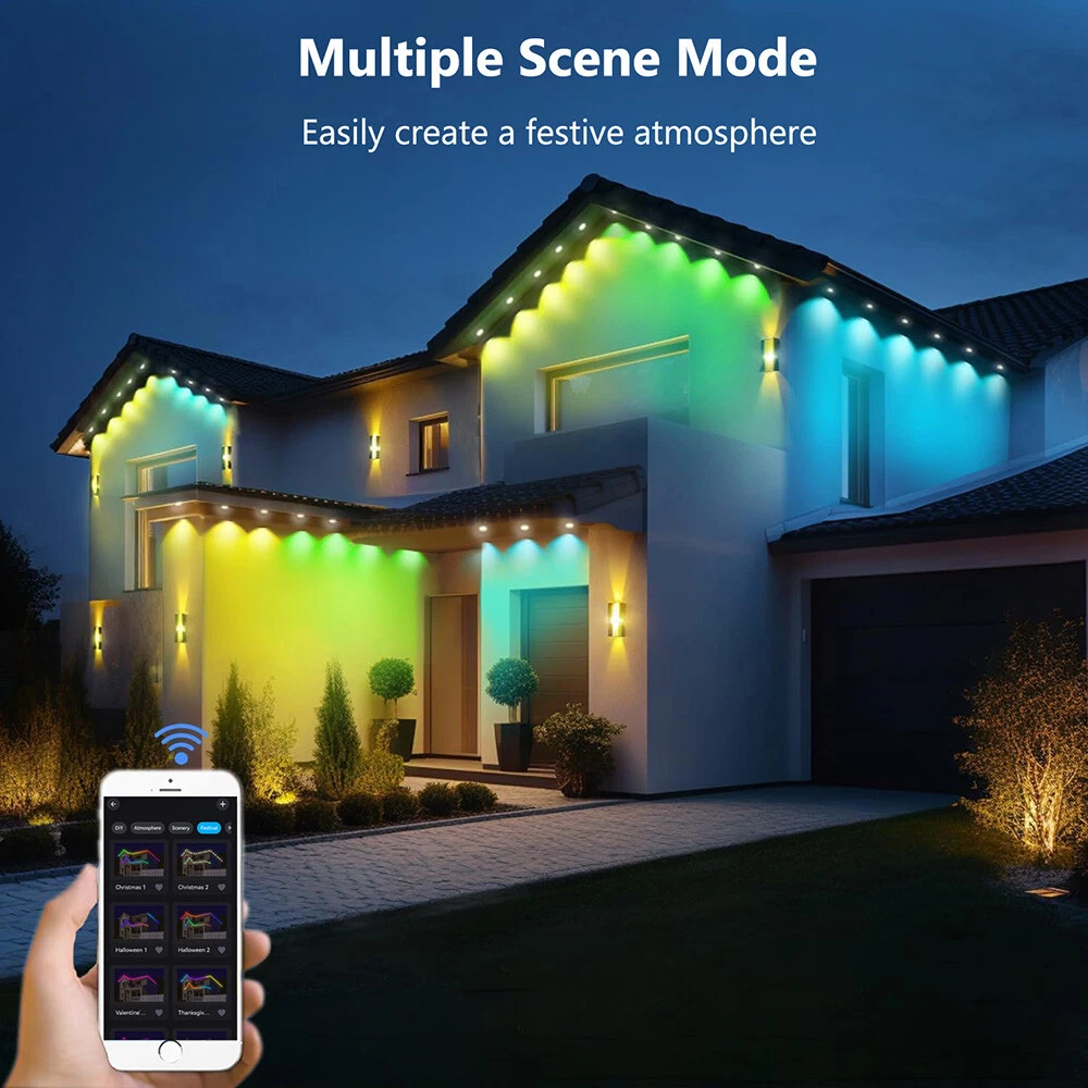 You may also like 15/30M Permanent Outdoor String Light Waterproof RGBIC LED Eave Lamp Party Decor 62.99 USD Free shipping LED Curtain Icicle String Lights Waterproof Big Snowflake Fairy Christmas Decor 21.49 USD Free shipping 20/50/100M LED Fairy String Light Party Christmas Tree Outdoor Home Garden Decor 19.69 USD Free shipping 50/100/200LEDs USB Copper Wire String Fairy Light Garden Outdoor Party Christmas 9.19 USD Free shipping 350 LEDs Outdoor Waterfall String Lights Star Topper Christmas Tree Patio Party 19.89 USD Free shipping 192/288 LED String Meteor Shower Light Fairy Falling Rain Tree Garden Xmas Decor 3.99 USD Free shipping 192/288 LEDs Meteor Shower Lights Fairy String Falling Rain Tree Christmas Decor 3.99 USD Free shipping Christmas Tree Outdoor 192/288 LED Meteor Shower Lights Fairy Falling Rain Decor 3.99 USD Free shipping 500 LEDs String Lights Waterproof 8 Modes US-plug Garden Wedding Christmas Party 22.19 USD Free shipping 100-2000LEDs LED Curtain Long String Light 8 Modes Outdoor Christmas Tree Decor 8.39 USD Free shipping Christmas Outdoor LED Net Light Waterproof Timer Memory Function 8 Modes Wedding 8.39 USD Free shipping Outdoor LED Curtain Lights Icicle String Fairy Garden Christmas Wedding Party US 17.79 USD Free shipping SAFE & SECURE SHOPPING 100% SATISFACTION GUARANTEED FAST SHIPPING 50ft/98ft Permanent Outdoor Eaves Light LED RGBIC Remote Control Christmas Decor Product Description Permanent Outdoor Lights IP67 Waterproof RGBIC LED Eaves Lights 50ft 98ft Smart Outside Lights with Scene and Music Sync Mode Outdoor Holiday Decorative Lights for Christmas Birthday Party All Holiday Decorations Description: Features: 【RGBIC Visual Feast】The permanent holiday outdoor lights have 16 million colors and multiple scene modes to suit every holiday theme. The unique curved lens design makes the light more concentrated and can present a better lighting effect. The brightness of each light is enough to bring wonderful lighting effects to your home. 【Customize Festive Atmosphere】Within the app, you can personalize holiday lighting with various colors and patterns, showcasing unique and captivating lighting effects. These permanent outdoor lights are ideal for parties, festivals, Halloween, Christmas, gardens, backyards, weddings, and recreational areas. 【Sync with Music】Our colorful eaves lights also sync with the music, pulsing to the beat of your favorite tunes. The built-in high-sensitive receiver microphone picks up the music and adjusts the light display accordingly. It's a great way to add fun and energy to your gatherings. 【High-end Bluetooth Eaves Lights】Our high-end Bluetooth fairy lights feature advanced WS2812B individual addressable LEDs, which give you full control over each light source. They're also much brighter and offer solid/steady and animated lighting modes. 【Waterproof and Sturdy】The outdoor lights are equipped with UV-resistant material to ensure normal operation in severe weather from -4°F to 140°F (-20°C-60°C). IP67 waterproof grade LED light string, control box, and ETL-certified adapter, up to 50,000 hours working time. 【Easy Installation】Clean the dust on the eaves with a cloth before installation, then peel and stick the permanent outdoor lights with the provided back adhesive, press each light for 8 seconds, and use the screw clips to fix them firmly. Specification: Materials: ABS, Acrylic, LED Light Color: Multicolor Voltage: DC 24V Rated power: 30 W Length: 50ft, 98ft Number of Lights: 30 LEDs, 60 LEDs Waterproof: IP67 Connect Bluetooth: Yes Life: 50,000 hours Remote Control Battery: CR2025 (not included) Package includes: 1× Permanent Outdoor Lights 1× Power Supply 1× Remote Control 1× Receiver 1× Instruction Manual About Us Contact Us About Us ❄We are always making efforts to providing better products and service. ❄If you feel satisfied with us, please leave us a 5-Star on the Detailed Seller Ratings. ❄We always try to provide the most cost efficient products for customers, the smoothest payment and after-services. Contact Us ❄Customer Service from 9:00 am - 6:00 pm on Business Days. ❄ Please feel free to contact us if you have any questions, we will reply to you asap. ❄ When delivery is delayed or items are damaged during delivery, please email us first before you leave feedback. Thank you. Copyright © 2022 Tongtool