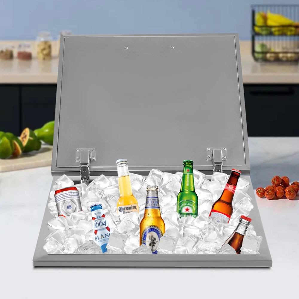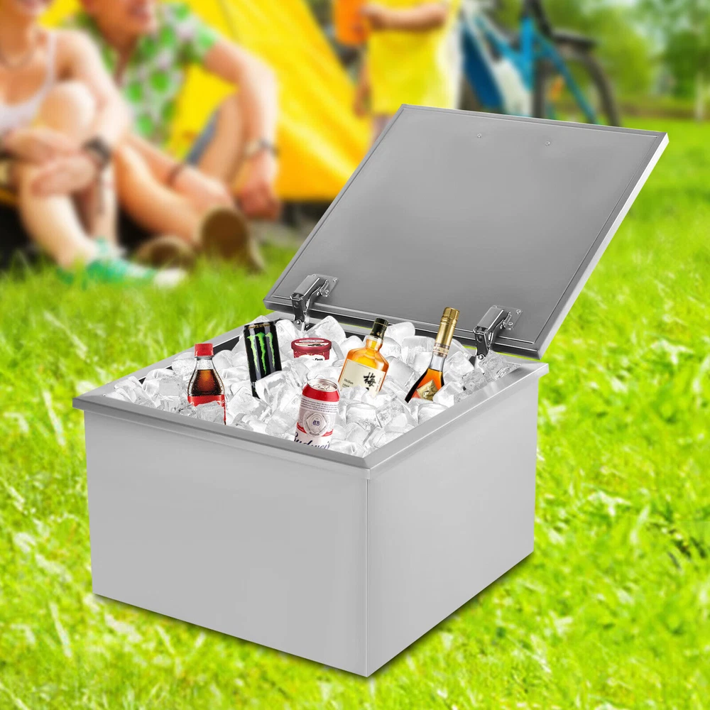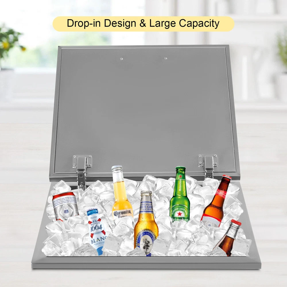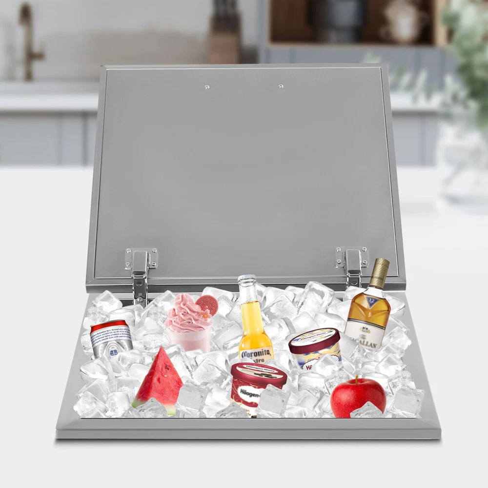 Details Ergonomic Handle: The handle on the lid is curved and ergonomic with a smooth surface, which makes it easy for you to open or close the lid and can prevent scratching your hands. Lid: The lid makes the product well sealed to allow for a better insulation effect and prevent the internal ice or drinks from being contaminated. Meanwhile, the two hinges make it easy for you to open and close the lid. Application It is widely used in dinner parties, parties, bars, kitchens, offices, etc. for keeping wine, beer, whiskey, beer, cocktails, vodka, juice, and frozen food fresh. 50L Stainless Steel Drop-in Ice Chest Commercial Ice Bin Sink Bar Ice Bucket Description It's a great pleasure to have an iced drink in the hot summer. But traditionally electric refrigerator isn't available everywhere. This drop-in ice chest with a large capacity (50L/52.8Qt) is your ideal choice for outdoor activities. Made of high-quality stainless steel, it is strong, durable, and not easy to rust. The excellent insulation performance can bring you cold drinks for a long time. It will be a great addition to your outdoor party. Key Features Premium Material: This product is made of food-grade 304 stainless steel, which is odorless, harmless, anti-rust, strong, durable, and not easy to deform. Excellent Performance: The double-walled design, built-in thickened foam, and lid can effectively prevent cold air from escaping and keep your ice solidified to keep your drinks cool for a long time. Large Capacity: It has a large capacity of 50L/52.8Qt to easily store and cool large quantities of ice, drinks, or frozen foods to meet your home and commercial needs. Saving Space: With a drop-in design, it will not take up too much space in the kitchen, especially suitable for small kitchens. Quick Drainage: With a drain hole at the bottom, a drain plug, and an extended water drainage hose, it can quickly drain water. As a result, it also can be used as an outdoor sink and is suitable for an outdoor kitchen, party, resort, bar, etc. Easy Assembly: This product is simple in structure and complete in the package. You only need a few simple steps to install it, which is very time-saving and labor-saving. Outdoor Available: You can take it to outdoor places, bringing cold drinks to your party without the need for an electric refrigerator to create happy memories. Easy to Clean: The stainless steel surface is smooth and flat without grooves to hide dirt, making it easy to clean. You can directly rinse it with water and dry it. Customer Service: We aim to provide quality products and services. If you have any problems, please feel free to contact us. We will reply and solve the problem for you as soon as possible. Details Ergonomic Handle: The handle on the lid is curved and ergonomic with a smooth surface, which makes it easy for you to open or close the lid and can prevent scratching your hands. Lid: The lid makes the product well sealed to allow for a better insulation effect and prevent the internal ice or drinks from being contaminated. Meanwhile, the two hinges make it easy for you to open and close the lid. Application It is widely used in dinner parties, parties, bars, kitchens, offices, etc. for keeping wine, beer, whiskey, beer, cocktails, vodka, juice, and frozen food fresh. Specifications Color: Silver Material: 304 Stainless Steel Shape: Rectangular Capacity: 50L/52.8Qt Insulation Temperature Range: -5℃-91℃/23℉-194℉ Foam Insulation Layer Thickness: 2cm/0.78in Net Weight: 11kg/24.25lbs Gross Weight: 12kg/26.5lbs Package Size: 55*55*39cm/21.7*21.7*15.4inch Product Size: 50.5*50.5*33cm/20*20*13inch Water Drainage Hose Length: 1m/3.2ft Package Included 1* Drop-in Ice Chest 1* Lid 1* Handle 1* Water Drainage Hose 1* Filter Basket Other Accessories for Assembly Notes Please allow the slight color difference caused by the shooting light and 1-3cm error due to manual measurement, and make sure you do not mind before you order. Payment Delivery details Terms of sales About us Contact us Payment We accept ebay payment 。 Fees such as import duties, taxes are not included in the item price or shipping costs. These charges are the buyer's responsibility. Delivery details Shipping: 2-9 working days to: USA Terms of sales We maintain high standards of excellence and strive for hundred percent customer satisfaction. Feedback is very important to us. We hope that you contact us immediately before you give neutral or negative feedback, so that we can address your concerns. It is impossible to address issues if we do not know about them! About us Your satis faction is our ultimate goal. We work hard to earn your trust and future business. Our certified technicians have tested each item before shipping. The unit comes with 1 year limited warranty on all manufacturing defects. a) If you receive a defective item, you may return it or ask for a discount. Please contact us within 14 days after you receive the package. b) What you returned must be intact and in its original packaging as re? u. Customer is responsible for shipping costs of the returned item. c) We will cover the cost of shipping back t with the shipping rate indicated in the registration page. We will send you a new unit or refund the full payment you paid. Thank you. Contact us Business Hour Business Hour: Monday To Friday: 8:30 AM to 5:00 PM (Beijing China time) Due to time zones, our reply to your questions may not be immediately. But within above working time, we will reply your email within 24 hours. If it's non-workdays, please kindly be patient and wait till Monday. Please contact us with ebay message. Please feel free to contact us if you have any questions. Monday To Friday: 8:30 AM to 5:00 PM (Beijing China time) Due to time zones, our reply to your questions may not be immediately. But within above working time, we will reply your email within 24 hours. If it's non-workdays, please kindly be patient and wait till Monday. Please contact us with ebay message. 