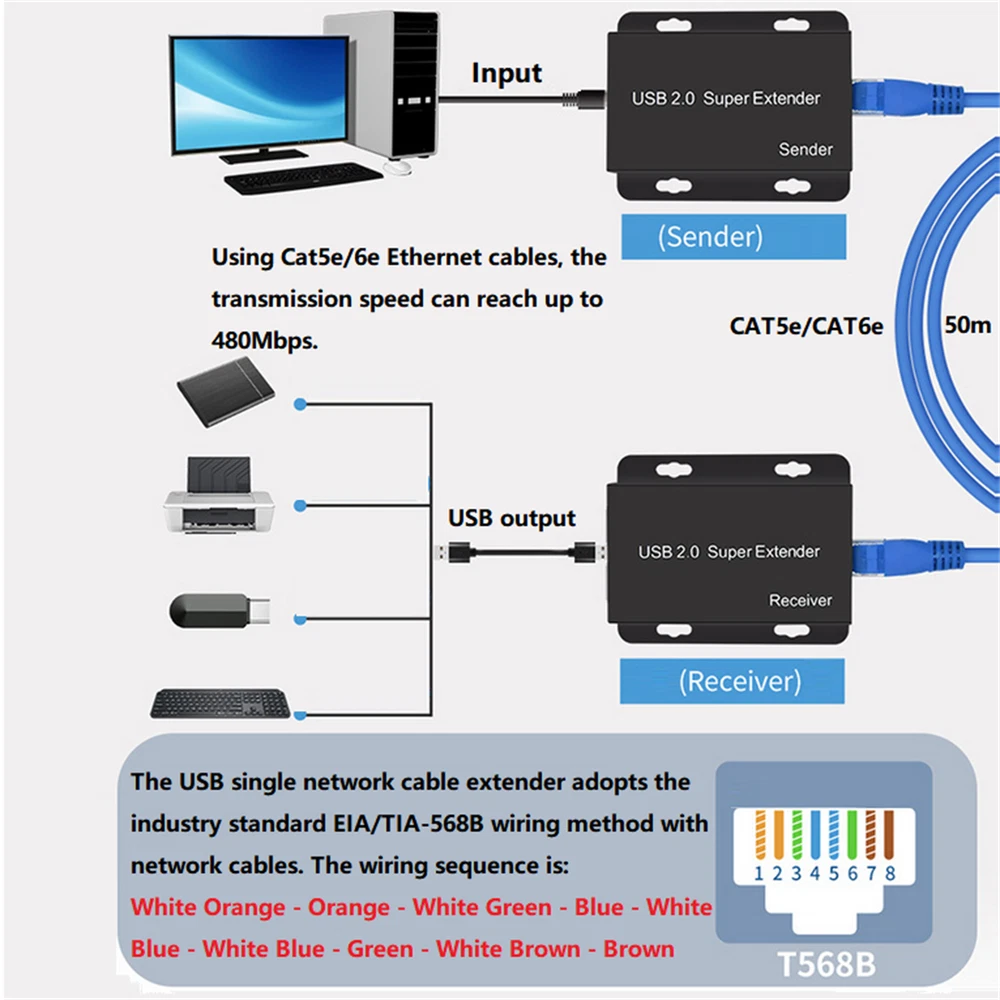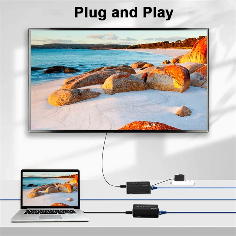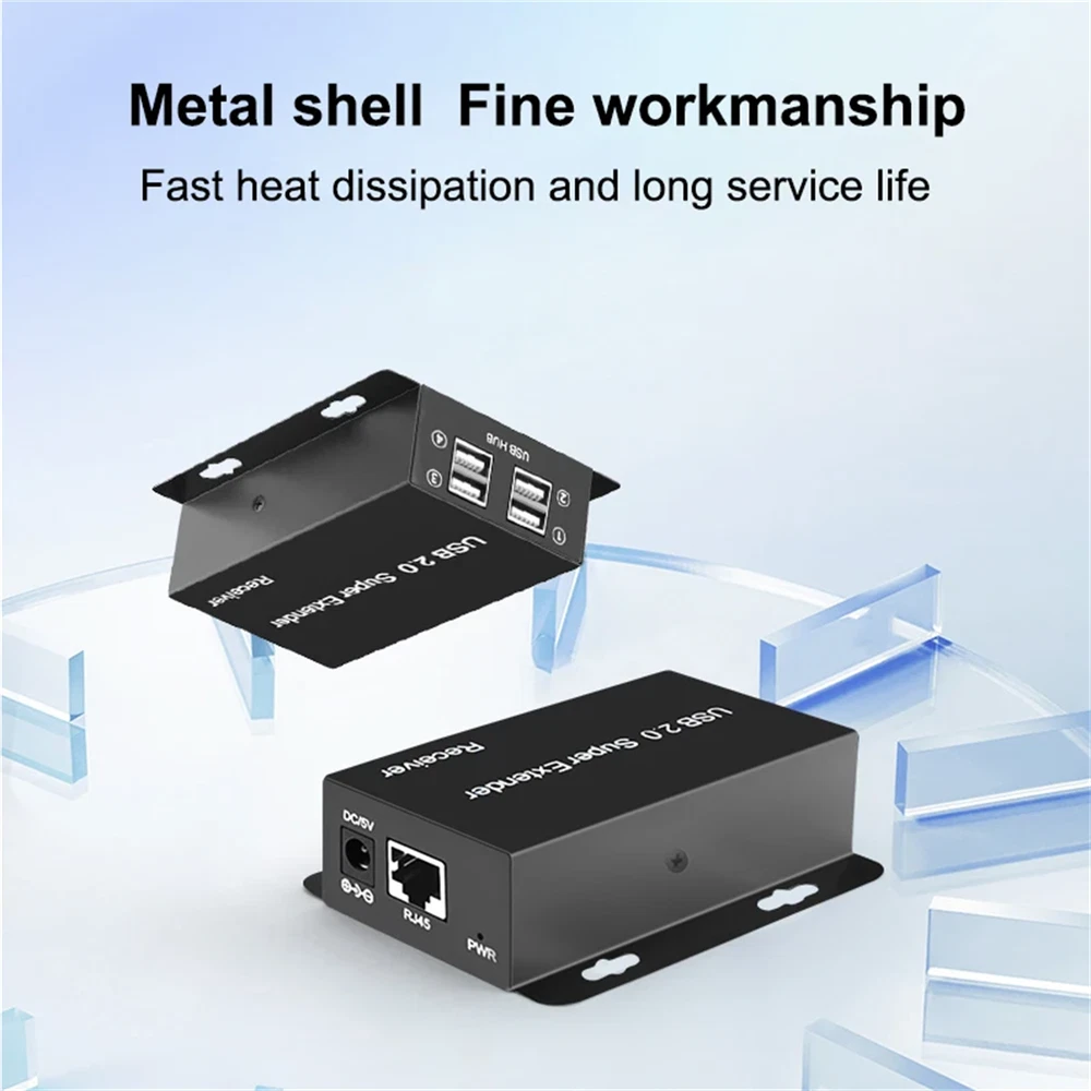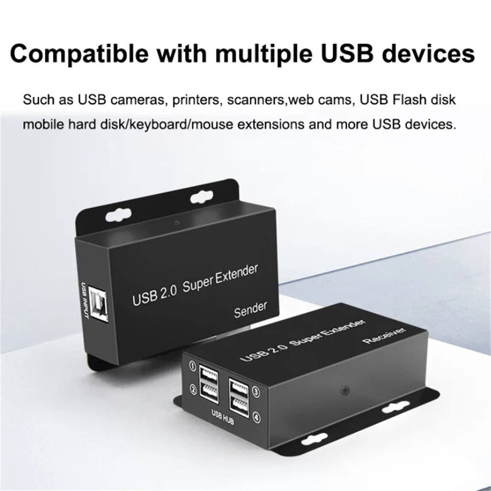 This USB 2.0 extender is a game-changer! It effortlessly extends my devices up to 50m over Cat5e/6 cables without lag. The 4-port hub works flawlessly with my keyboard, mouse, and webcam—no more messy cables cluttering my desk. Super easy setup on Windows, and the speed stays solid even at a distance. Perfect for home offices or setups needing extra reach. Highly recommend!