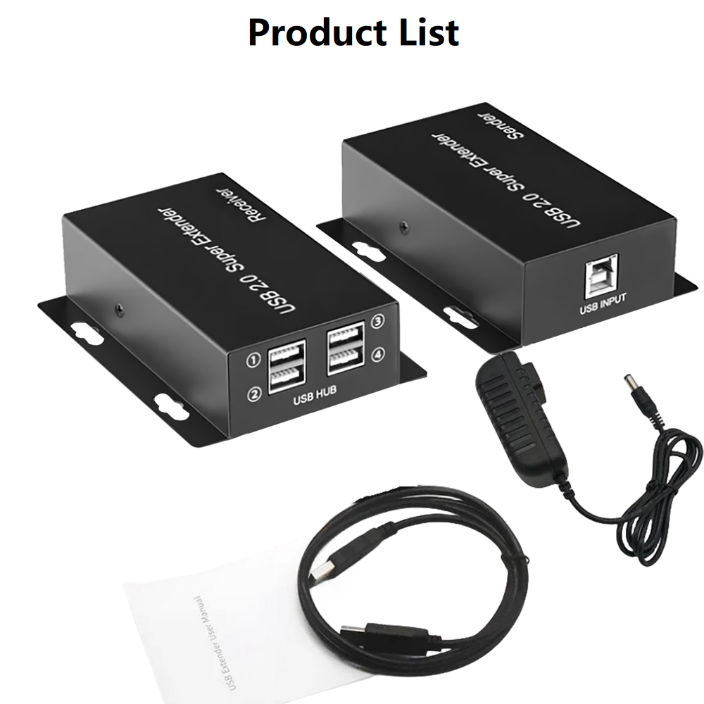 Product Description 50m USB 2.0 Extender Over Rj45 Ethernet Cat5e Cat6 Cable For Laptop PC U Flash Disk Camera Keyboard Mouse Webcam Printer Scanner Feature: Brand new and high quality. This USB extender extends the connected signal up to 50m by ethernet cable cat5e/6/7. With 4 USB2.0 ports, this is also a USB hub while connecting long-distance signals. Supports up to 480Mbps(Theoretical speed), easy to access USB 2.0 transmission equipment. Compatible with multiple operating systems: For Windows, For Mac, For Linux etc. Support PC, webcam, printer, scanner, USB Disk, keyboard, mouse and more. Plug and play, no additional driver is needed, it will be installed automatically when connected. Specifications: Product Name: USB2.0 Network Cable Extender Product feature: POC unilateral power supply USB version: USB2.0 Compatible with USB 1.1 Shell material: Iron shell Power supply DC: 5V 1000mA Product size: 66 * 81 * 24mm Packing Content: 1x USB transmitter 1x USB receiver 1x USB-B to USB-A cable 1x DC5V1A Power adapter 1x User manual Shipping Returns Contact Us Payment 1. Items sent from US warehouse. 2.Receiving time = Processing time + Shipping time 3. Processing Time: Around 1-2 business Days 4. Shipping Time: 3-5 business day it may have a little delay during some holiday (such as Christmas),any problem ,please feel free to contact 1. 30 days warranty from the purchased date. Please contact us via email before returning the defective item. 2.Our warranty does not extended to any product that are physically damaged or that are not under normal operating conditions as result of misuse or improper installation on the buyer/user's part. 3.Return items should include the original packaging and all accessories. buyers MUST contact us for the returning address. 4.In all cases, buyers pay shipping fees at their own cost to return products for exchange or refund. We will be responsible for the postage of replacements. Refund will be made upon receipt of the returned item. Pls contact us if you have any problems,we will try our best to solve for you We accept all verified payment from eBay. Shipping 1. Items sent from US warehouse. 2.Receiving time = Processing time + Shipping time 3. Processing Time: Around 1-2 business Days 4. Shipping Time: 3-5 business day it may have a little delay during some holiday (such as Christmas),any problem ,please feel free to contact Returns 1. 30 days warranty from the purchased date. Please contact us via email before returning the defective item. 2.Our warranty does not extended to any product that are physically damaged or that are not under normal operating conditions as result of misuse or improper installation on the buyer/user's part. 3.Return items should include the original packaging and all accessories. buyers MUST contact us for the returning address. 4.In all cases, buyers pay shipping fees at their own cost to return products for exchange or refund. We will be responsible for the postage of replacements. Refund will be made upon receipt of the returned item. Contact Us Pls contact us if you have any problems,we will try our best to solve for you Payment We accept all verified payment from eBay. powered by