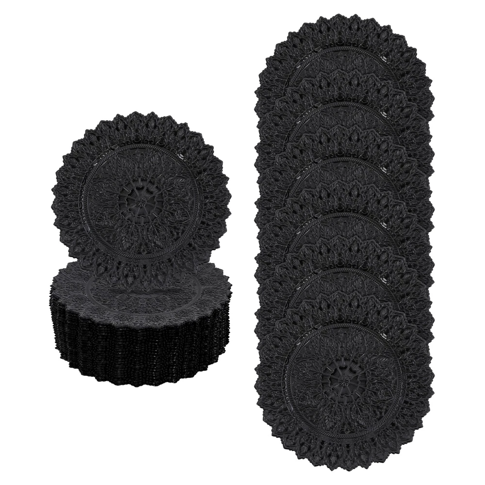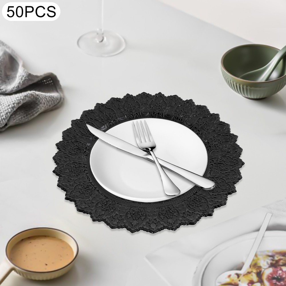 Specification Color: Black Shape: Round Style: Vintage Material: PP Process: Spray Painting Mounting Type: Tabletop Number of Pieces: 50 Each Product Diameter: 33cm/13in Package Size: 36*36*29cm/14.17*14.17*11.42in Gross Weight: 16kg/35.27lbs Net Weight: 15.2kg/33.51lbs Package Included 50* Charger Plates 50pcs 13" Vintage Antique Charger Plates Wedding Party Table Decor for Banquets Description Description Our charger plates bring a refined touch to most dining occasions while serving as a stunning backdrop for your culinary masterpieces. With their exquisite design and craftsmanship, they elevate table settings, creating a memorable impression for both formal events and intimate family gatherings. Key Features Crafted for Endurance: Crafted from premiu m PP wit h a spray painting process, this product withstands wear, cracks, and fading for long-term use. Elegant & Artistic: The round shape, attractive color, and exquisite texture patterns give this piece a classic, elegant look that enhances your table setting and creates a delightful dining experience. Reasonable Size: With a diameter of 13 inches, each piece ideally accommodates salad bowls and soup bowls (not included) while adding a stylish, functional touch to your table setting. Adequate Quantity: With 50 plates in a set, our package is ideal for both home gatherings and large-scale events, making it a versatile choice for hotels, restaurants, and other commercial settings. Space-Saving Storage: These stackable plates offer convenient storage, neatly fitting into your cabinet while minimizing space usage. Details Ingenious Sunken Bottom: It offers a secure spot for salad bowls, soup bowls, and main dishes(not included), helping to prevent spills and keep your table tidy. Sleek Edges: The smooth edges not only add to the product's aesthetic appeal but also ensure gentle care for your skin during use and cleaning. Application This product is suitable for parties, weddings, banquets, restaurants, hotels, camping, picnics, barbecues, or other events. Specification Color: Black Shape: Round Style: Vintage Material: PP Process: Spray Painting Mounting Type: Tabletop Number of Pieces: 50 Each Product Diameter: 33cm/13in Package Size: 36*36*29cm/14.17*14.17*11.42in Gross Weight: 16kg/35.27lbs Net Weight: 15.2kg/33.51lbs Package Included 50* Charger Plates Notes Please ensure that the size of this product is suitable for your needs before purchasing. Please note that this product cannot be directly used to hold food. Please note that this product has only undergone a spray painting treatment process on a single surface. Please ensure that you do not mind this before purchasing. Please allow the slight color difference caused by the shooting light and the 1-3 cm error due to manual measurement, and make sure you do not mind before ordering. Payment Delivery details Terms of sales About us Contact us Payment We accept ebay payment 。 Fees such as import duties, taxes are not included in the item price or shipping costs. These charges are the buyer's responsibility. Delivery details Shipping: 2-9 working days to: USA Terms of sales We maintain high standards of excellence and strive for hundred percent customer satisfaction. Feedback is very important to us. We hope that you contact us immediately before you give neutral or negative feedback, so that we can address your concerns. It is impossible to address issues if we do not know about them! About us Your satis faction is our ultimate goal. We work hard to earn your trust and future business. Our certified technicians have tested each item before shipping. The unit comes with 1 year limited warranty on all manufacturing defects. a) If you receive a defective item, you may return it or ask for a discount. Please contact us within 14 days after you receive the package. b) What you returned must be intact and in its original packaging as re? u. Customer is responsible for shipping costs of the returned item. c) We will cover the cost of shipping back t with the shipping rate indicated in the registration page. We will send you a new unit or refund the full payment you paid. Thank you. Contact us Business Hour Business Hour: Monday To Friday: 8:30 AM to 5:00 PM (Beijing China time) Due to time zones, our reply to your questions may not be immediately. But within above working time, we will reply your email within 24 hours. If it's non-workdays, please kindly be patient and wait till Monday. Please contact us with ebay message. Please feel free to contact us if you have any questions. Monday To Friday: 8:30 AM to 5:00 PM (Beijing China time) Due to time zones, our reply to your questions may not be immediately. But within above working time, we will reply your email within 24 hours. If it's non-workdays, please kindly be patient and wait till Monday. Please contact us with ebay message. Please feel free to contact us if you have any questions.