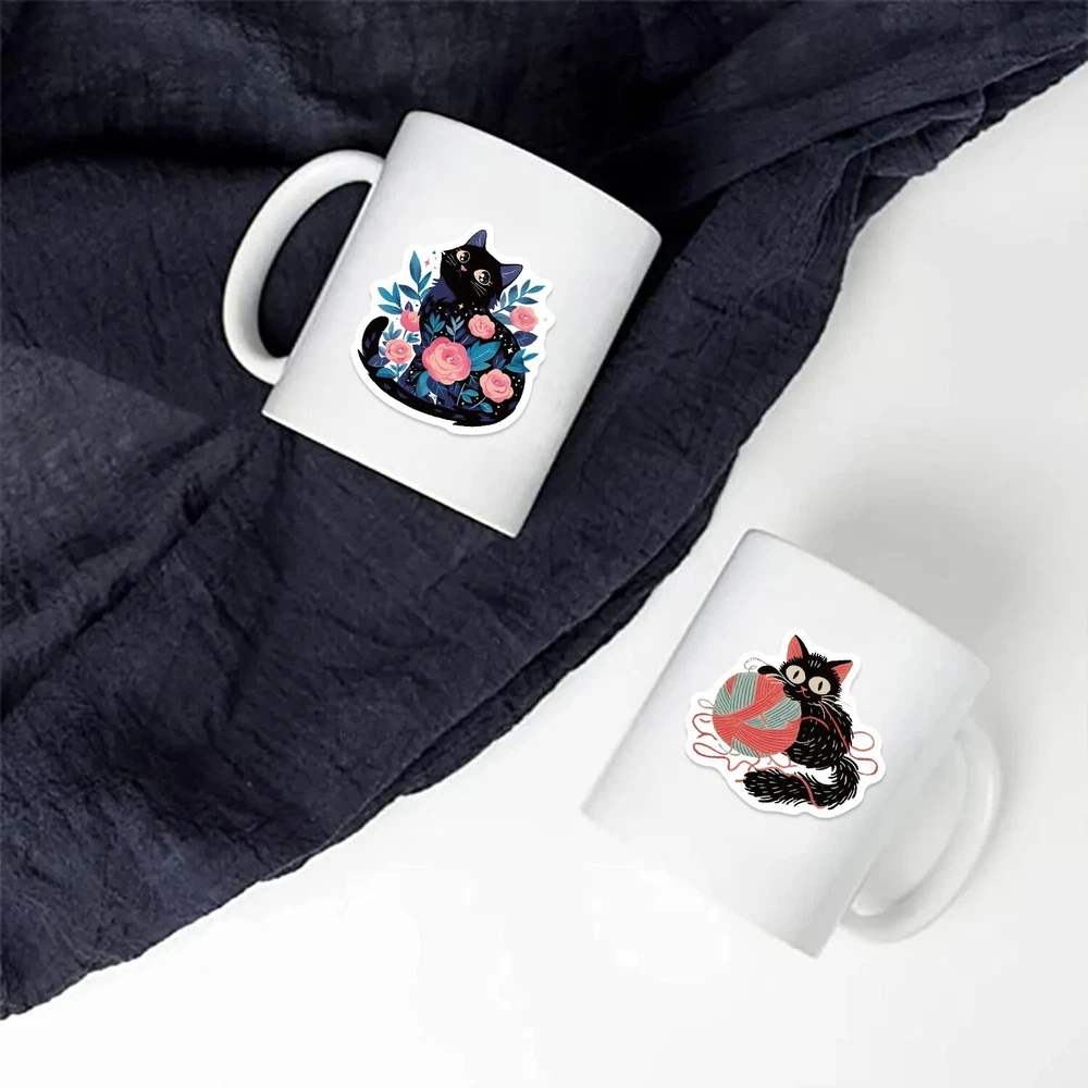 50pcs Cute Black Cat Stickers Aesthetic Scrapbooking Materials Diary Decorating