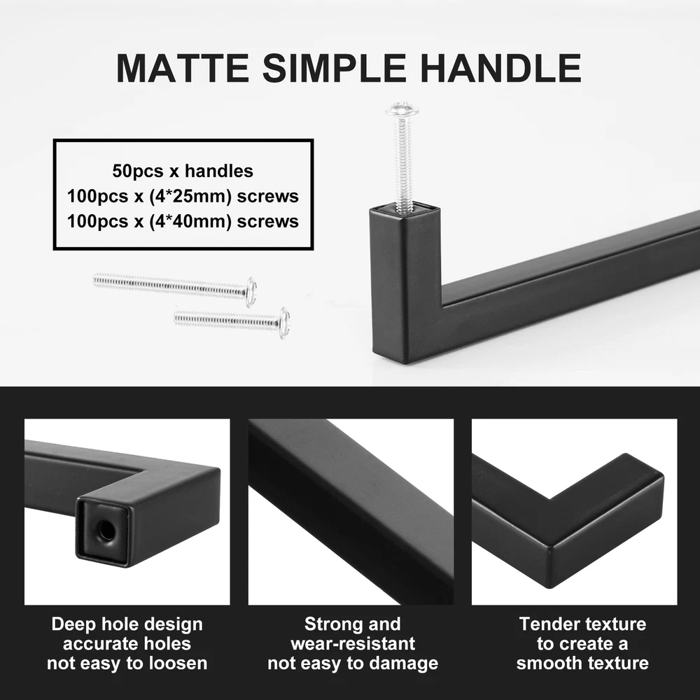 50pcs New Black Stainless Steel Kitchen Cabinet Handles Cupboard Drawer Pulls Bullet Points: Sophisticated Touch: The elegant and comfortable cabinet door handles offer a gorgeous appearance and exquisite workmanship, ensuring a touch of luxury to any decor. Upgrade Your Décor: With a unique hollow yet strong square design, these cabinet door handles add a touch of elegance to your kitchen or bathroom decor. The perfect match for any home design, upgrade your space with sophistication. Long-Lasting Durability: Made of solid stainless steel, these cabinet door handles are designed to last long, resist deformation, and are not easily prone to rusting, giving you the enduring strength and durability you need. Unique Present: Enhance your home's aesthetic with these cabinet door handles, perfect as housewarming gifts or for special occasions like birthdays, Year's, Christmas, and Halloween. Widely Applicable: Enhance the design of your kitchen cabinets and furniture doors with our refined cabinet door handles. These versatile handles are perfect for cupboards, desk drawers, and wardrobe drawers, offering wide applicability and an raised look. Transform your kitchen or furniture with these gorgeous Kitchen Square Cabinet Handles. The perfect touch that perfectly matches any home decoration. Built to last long, these handles are ideal for kitchen cabinets, furniture doors, cupboards, desk drawers, and wardrobe drawers. Specification: Material: Stainless steel Colour: Black Exterior finish: stainless steel Shape: square Scope of application: Cabinet/wardrobe/drawer Packing List: 50pcs x handles 100pcs x 4*25 screws 100pcs x 4*40 screws Note: Due to different lighting and screen settings, the item color may be slightly different from the picture. Due to different manual measurements, please allow a 1-2cm difference in size. 1.You can make a Credit payment via Paypal.Paypal will let you use MasterCard,Visa to pay. 2.Payment should be completed within 5 days after auction closed, or unpaid dispute will be filed for an closing auction.An unpaid case will be filled after 4 days. ● We strive for 100% customer satisfaction ! ● Positive Feedback is very important to us. ● We hope that you contact us immediately BEFORE you give us neutral or negative feedback, so that we can satisfactorily address your concerns. ● We promise to offer the lowest price and high quality produce. Dear buyers : ● Welcome to my store ! ● Your satisfaction is our top goal,we appreciate your patronizing. ● If you have any questions, please contact us before leave negative or neutral feedback, we will try our best to solve the issue to your satisfaction, thanks ! ● If you are satisfied with our service, please rate the details of the transaction (Detailed Seller Ratings) on eBay. ● Please always talk to us via ebay Message. ● We appreciate your business and look forward to growing our e-Bay sales with satisfied customers.