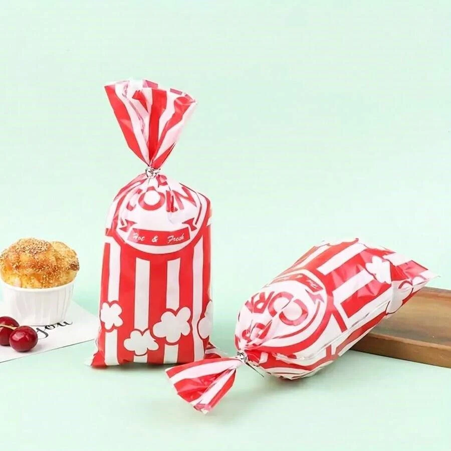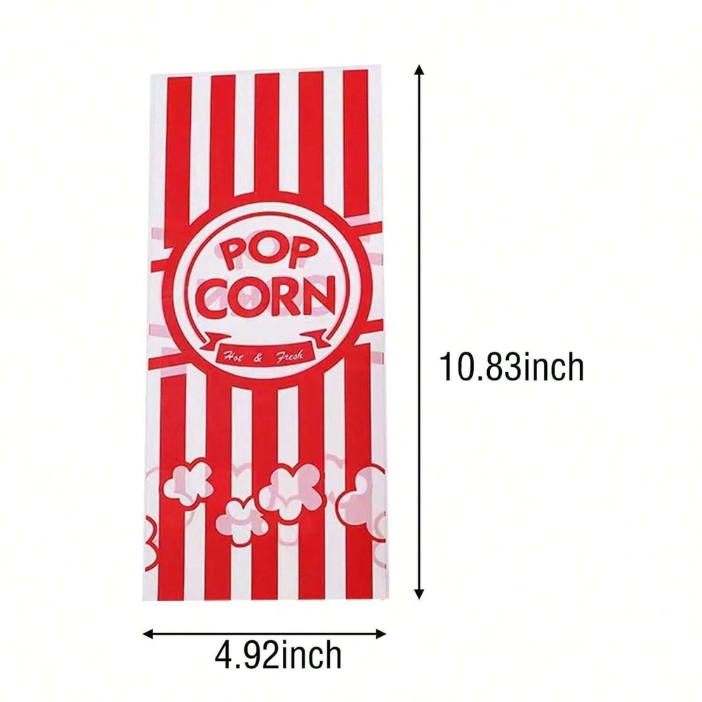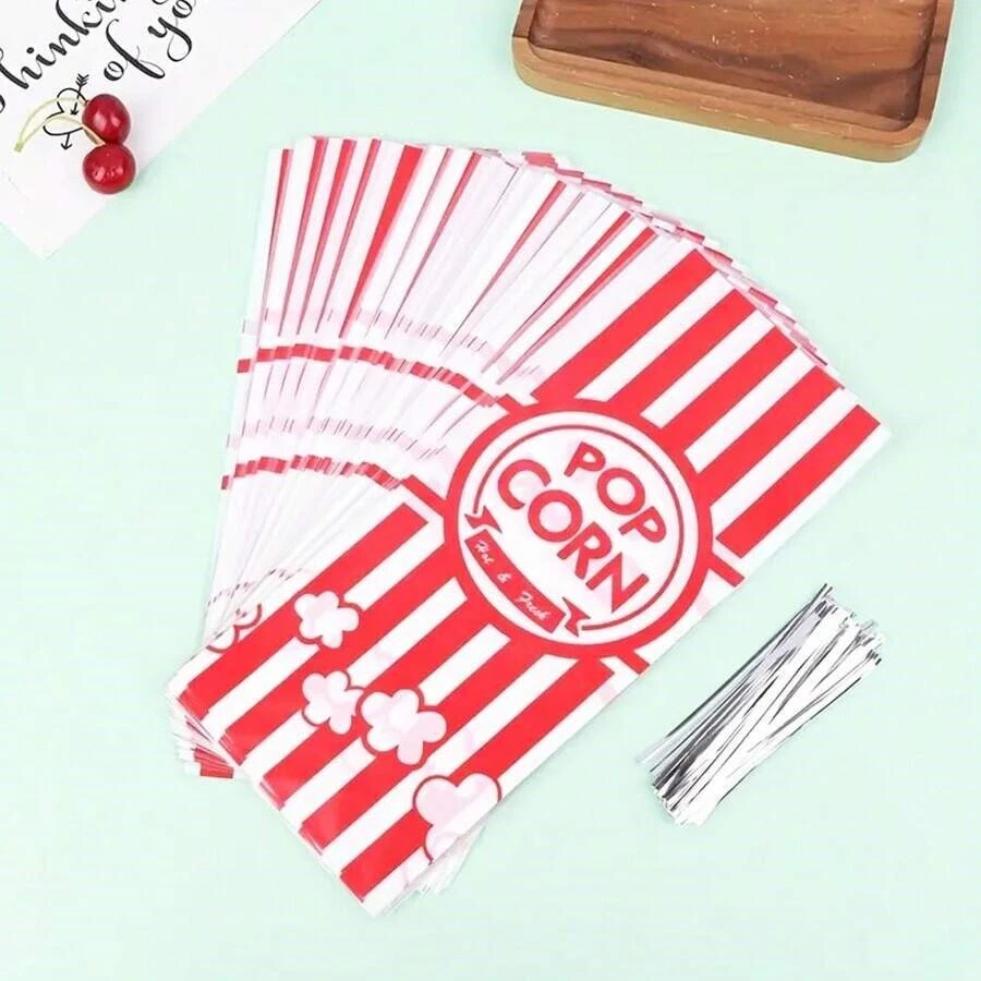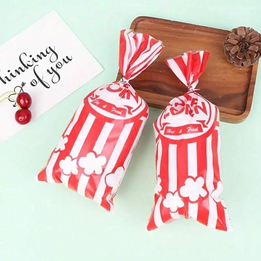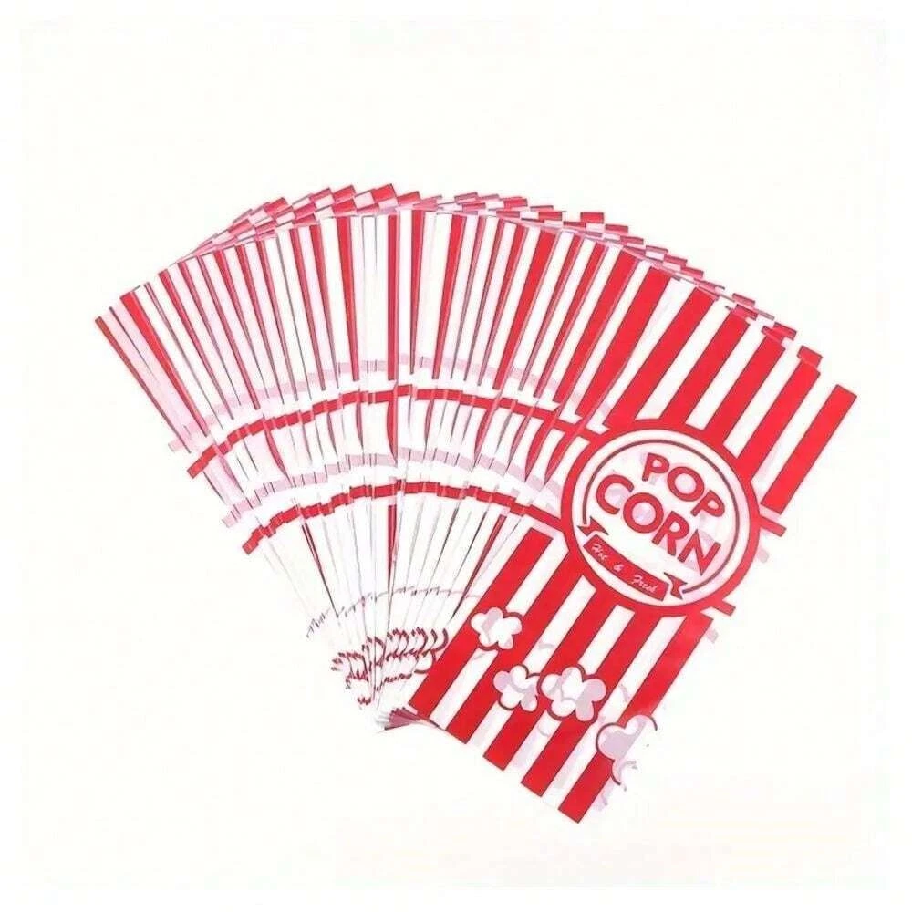 🍿 50pcs Red and White Stripe Popcorn Bags with Twist Ties – Perfect for Party Favors! 🍿 These classic Red and White Stripe Popcorn Bags are a must-have for your next party or event. Perfect for serving snacks, candy, or popcorn at birthday parties, movie nights, or carnivals, these bags will add a fun and retro vibe to your celebrations. Product Description: Design: Features a bold red and white stripe design with a fun "Popcorn" print, giving a nostalgic and festive look to any event. Material: Made from PP (Polypropylene), which is durable and food-safe, these bags are sturdy and easy to fill with your favorite treats. Size: Each bag measures 27.5 cm (Length) x 12.5 cm (Width) (10.83" x 4.92"), offering plenty of space to hold popcorn, candy, cookies, or other snacks. Multicolor: Bright red and white stripes add a lively, colorful touch to your party décor. Key Features: Perfect for Parties: Great for birthday parties, movie nights, carnivals, and other special events where fun snacks are a must. Twist Ties Included: Each bag comes with convenient twist ties to keep snacks fresh and secure, making them easy to transport or store. Eco-Friendly and Reusable: These durable bags can be reused, reducing waste while adding to the festive atmosphere of any event. Large Capacity: Roomy enough to hold a generous serving of popcorn, candy, cookies, or other treats for your guests. Classic Retro Look: The red and white stripe design adds a nostalgic charm that’s perfect for vintage or carnival-themed parties. Why You Should Buy: Versatile Party Favor Bags: Ideal for a wide variety of events, from movie nights to birthday parties, offering a practical and decorative solution for serving snacks. Durable and Food-Safe: Made from high-quality PP plastic, these bags are designed to last and are safe for storing food. Fun and Festive: The classic popcorn bag design is sure to be a hit with guests of all ages, enhancing the atmosphere of your event.