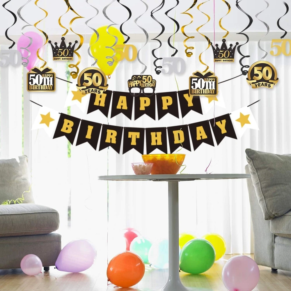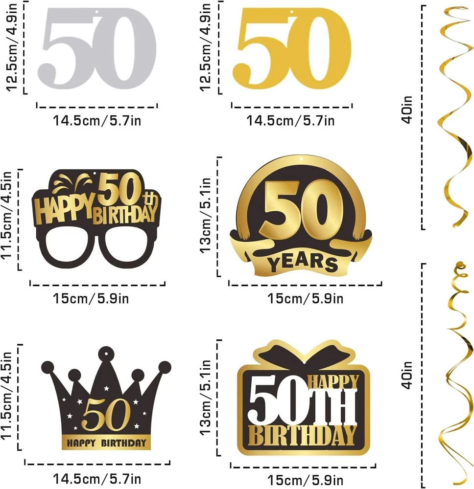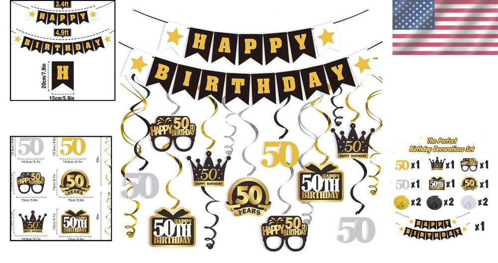 50th Birthday Party Essentials - Black & Gold Decorations Set, 12 Pieces ‹ › ‹ › ‹ › ‹ › ‹ › ‹ › ‹ › ‹ › ‹ › 50th Birthday Party Essentials - Black & Gold Decorations Set Elevate your celebration with our exquisite 12-piece Black & Gold Decorations Set, meticulously designed to transform any space into a festively elegant venue for your milestone birthday. What You Get: 12 pieces of stunning swirling streamers. 2 pre-strung Happy Birthday garland banners for effortless display. Features: Beautiful double-print details that are sure to impress and garner praise from your guests. Streamers measure approximately 40 inches in length, providing ample coverage for your décor needs. Durable and reusable, allowing you to enjoy them for many celebrations to come. Perfect for Any Occasion: Highly recommended for birthday parties; these decorations will create a festive atmosphere in your home or office. Ideal for use in courtyards, living rooms, corridors, or windows, enhancing your space beautifully. An excellent and cost-effective way to add holiday spirit to your gathering. Your Satisfaction is Our Commitment: We stand firmly by the quality of our decorations with a 100% satisfaction guarantee. Each piece is meticulously checked to ensure it meets your standards before delivery. Should you encounter any issues, our hassle-free customer service is ready to assist you, ensuring a smooth resolution. If you find any aspect of your purchase unsatisfactory, you can apply for an unconditional return. Celebrate in style and create unforgettable memories with our Black & Gold Birthday Decorations Set. Order now and make your milestone party truly special! Shipping Free & Fast Shipping - We offer free shipping to most of the USA with a normal delivery time of 3-7 days. However, due to the current situation, additional delivery time (up to 3 weeks) may be required for some items. Alternative Carriers - We may use alternative carriers (e.g. USPS, FedEx, UPS, etc.) to ensure your package arrives safely and on time. Due to the use of multiple carriers, we are unable to provide a tracking number automatically. Handling Time - Orders are processed and shipped within 1-2 business days of receiving cleared payment. Shipping Restrictions - Shipping to Alaska, Hawaii, Puerto Rico, Guam, and other US territories may incur shipping charges or delivery restrictions. Please contact us before ordering, or your order can be refunded/cancelled. State Restrictions - There may be restrictions based on your state of purchase. For example, certain items may not be shipped to California due to state regulations. Contact for Tracking Updates - If you require tracking updates or have any concerns about the delivery of your order, please feel free to contact us, and we will be happy to assist you. Return 30-Day Hassle-Free Returns - We want you to be completely satisfied with your purchase. If you are not, you can return the item within 30 days of receiving it for a full refund or exchange. Easy Return Process - To start a return, simply contact us and we will provide you with a prepaid return shipping label and detailed instructions. Restocking Fee - There are no restocking fees for returns. However, the buyer is responsible for return shipping costs if the return is not due to a seller's error. Refund Processing Time - Refunds will be processed within 5 business days of receiving the returned item in its condition. Payment We accept all major credit cards, PayPal, and Apple Pay for your convenience. Your payment information is secure and encrypted to ensure a safe and seamless transaction. Please complete your payment within 3 days of purchase to avoid any delays in shipping. Feedback Your feedback is extremely important to us. We strive to provide the best products and customer service possible. If you are satisfied with your purchase, please take a moment to leave us a positive review. If you have any concerns or issues with your order, please contact us before leaving negative feedback. We are committed to resolving any problems and ensuring your satisfaction. Contact Us If you have any questions or concerns, please feel free to out to our customer support team. You can contact us through the eBay messaging system. We are available Monday to Friday, 9:00 am to 5:00 pm EST, and we will do our best to respond to your inquiry within 24 hours. Buy it now and enjoy a pleasant shopping experience! Unit Quantity: 1.0 count Character: 50th Birthday Decorations Material: Paper,Thick Paper Type: Hanging Decoration Occasion: 50th Birthday Color: Black Theme: Birthday Department: Adults Pattern: Gold-set Style: Contemporary Unit Type: Unit