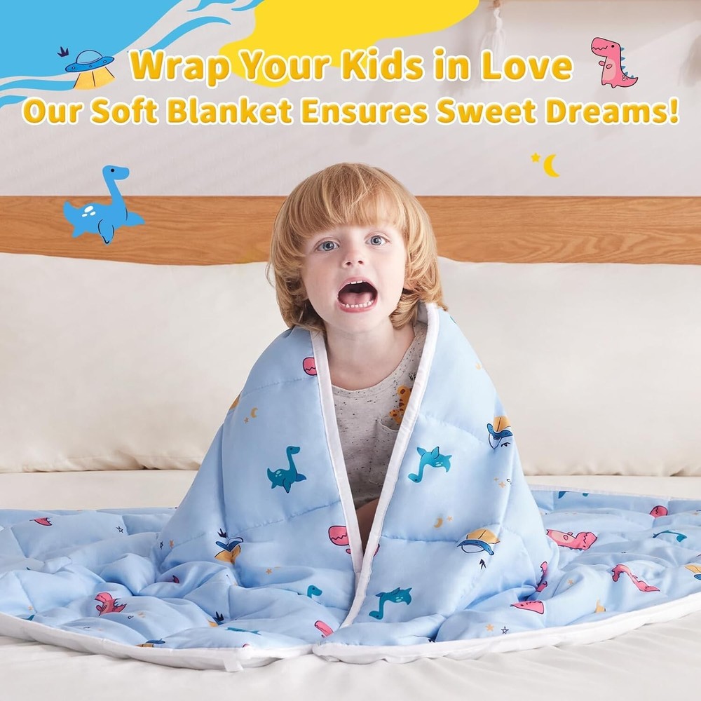 This weighted blanket is a game-changer for better sleep! The soft, breathable fabric feels amazing, and the 10lb weight provides just the right amount of cozy pressure. I love the fun dinosaur design—it’s well-made, safe (Oeko-Tex certified), and perfect for kids or adults. The glass microbeads distribute weight evenly, and the size is ideal for curling up. Highly recommend for anyone needing extra comfort and relaxation!
