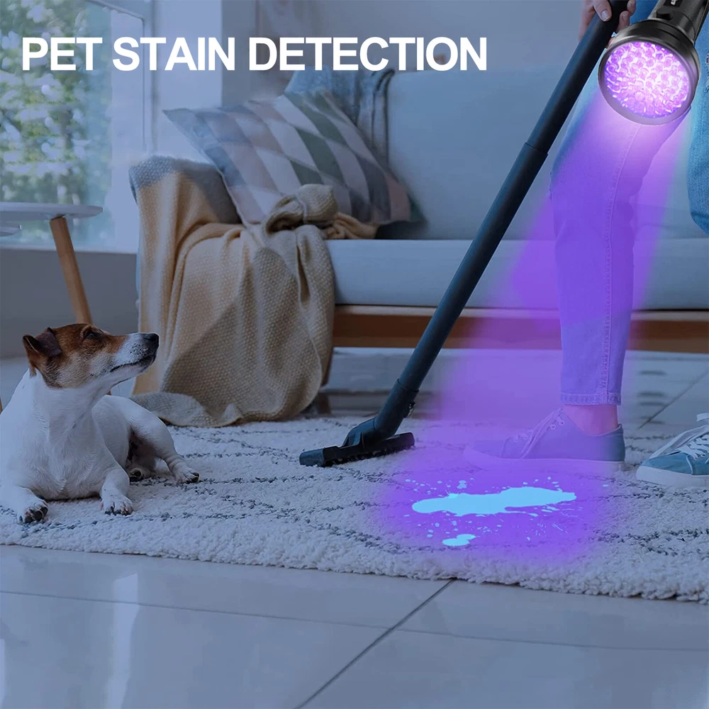51 UV LED Ultra Violet Detector Lamp Inspection Blacklight 395 nM Flashlight AA Features: 1. Use 3 AA Standard Alkaline Battery (Included) , Rechargeable batteries are not recommended (Size and Voltage is not compatible)! 2. Ensuring that you have a sufficient quantity for your needs; Ideal to stock up or ideal as a gift for your loved ones, especially for those who enjoy outdoor pursuits or need a UV light for both personal and professional use. 3. Broad Coverage : emitting a strong light with a wavelength of 395 nm, larger area than 9, 21 LED lights. the UV resin flashlight can cover a large area without reduction in the intensity of light; Whether you are scanning for pet stains or exploring the natural world in darker places, you can rely on this flashlight to do the job right. 4. Material and Construction : made mainly with an aluminum alloy, the UV flashlight for resin is sturdy; The surface bears a wear resistant, non slip texture grip that is waterproof and dust resistant to ensure that it lasts longer; It's crafted in a black color, and its compact size of about 5.66 x 2.22 x 1.37 inches, to adds to its usefulness. 5. Portable and Convenient : the blacklight for cat urine detection is designed to fit easily into a pocket and comes with a wristband for secure and comfortable carrying; Being lightweight, it can also be stored safely in a bag or backpack, offering you convenience on the go. 6. Multipurpose UV Flashlight : this UV flashlight is not only a pet cleaning tool for detecting pet urine stains on rugs, carpets, and clothes, but it also serves as a black light detector for scorpions, minerals, bugs, stains and fake currency; Suitable for outdoor use and serves as a nice tool for identifying currency, ID cards and more. 7. Tips: the 51 UV light LEDs have a lifespan of 15 years,To extend the flashlight’s life, please remove all batteries if you did not intend to use it for a long time. 8. Improper use or installation of poor quality batteries may cause product hazards that can affect our safety. We recommend the use of reliable high quality Alkaline batteries. Use of rechargeable or other non-recommended batteries VOIDS the manufacturer warranties. Specification: Color: Black Material: Aluminum with O rings for water resistance Size: 5.7 cm x 14.5 cm (DxH) 5.66" inches long & 2.22" inches across lamp Bulb Type: 395-400nm Bulb Life: 100,000 Hours Power Output: 5W Battery Required: 3 x AA Alkaline Battery Ni-MH 1.2V (Included). Battery Life: Approximately 20 hours on 3 AA batteries Switch Type: Click on / Click off Package include: 1 X UV Ultraviolet LED Flashlight Blacklight 3 X 1.2V AA Ni-MH Rechargeable Batteries On Feb 10, 2025 at 03:02:43 PST, seller added the following information: