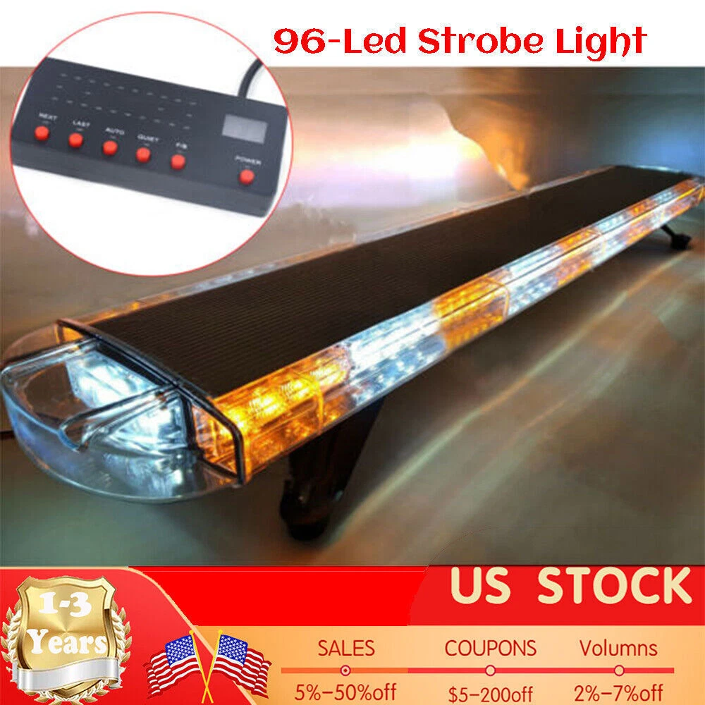 FITMENT: Universally for DC 12V - 24V vehicles with the mounting roof. PACKAGE INCLUDES: 1X 96-LED Strobe Light 1 Pair of Mounting Brackets 1 Set of Mounting Screws 1X Digital Display Switch 51 inch 96 LED Strobe Light Bar Tow Truck Amber Emergency Beacon Warn Light USA 51 inch 96 LED Strobe Light Bar Tow Truck Amber Emergency Beacon Warn Light NEW Brand Unbranded Manufacturer Part Number Does Not Apply Material PVC aluminum Working Wattage 96 Number of LED 96 Color Amber/White Voltage DC12-24V Working current ≤ 8A Size 131x22x12.5cm(51.5*8.6*4.9inch) Weight 10KG(22lbs) Switch with Digital Display Switch Manufacturer Warranty 5 Year Number of Bulbs 96 Light Color Amber/White Features: 1.Contain 96 high-intensity LEDs each Light Bar. 2.Multiple functions: Strobe light/ Beacon/ Warning Light/ Light Bar 3.Suitable for Postal Service, Construction Vehicles, Security, Snowplows, Emergency Vehicles, etc. 4.20 flashing modes + 1 steady mode. 5.Anti-collision, anti-dust and splash-proof, can be used in rainy weather. 6.Low power consumption, instant start-up time. FITMENT: Universally for DC 12V - 24V vehicles with the mounting roof. PACKAGE INCLUDES: 1X 96-LED Strobe Light 1 Pair of Mounting Brackets 1 Set of Mounting Screws 1X Digital Display Switch Payment Delivery details Terms of sales About us Contact us Payment We accept ebay payment 。 Fees such as import duties, taxes are not included in the item price or shipping costs. These charges are the buyer's responsibility. Delivery details Shipping: 2-9 working days to: USA Terms of sales We maintain high standards of excellence and strive for hundred percent customer satisfaction. Feedback is very important to us. We hope that you contact us immediately before you give neutral or negative feedback, so that we can address your concerns. It is impossible to address issues if we do not know about them! About us Your satis faction is our ultimate goal. We work hard to earn your trust and future business. Our certified technicians have tested each item before shipping. The unit comes with 1 year limited warranty on all manufacturing defects. a) If you receive a defective item, you may return it or ask for a discount. Please contact us within 14 days after you receive the package. b) What you returned must be intact and in its original packaging as re? u. Customer is responsible for shipping costs of the returned item. c) We will cover the cost of shipping back t with the shipping rate indicated in the registration page. We will send you a new unit or refund the full payment you paid. Thank you. Contact us Business Hour Business Hour: Monday To Friday: 8:30 AM to 5:00 PM (Beijing China time) Due to time zones, our reply to your questions may not be immediately. But within above working time, we will reply your email within 24 hours. If it's non-workdays, please kindly be patient and wait till Monday. Please contact us with ebay message. Please feel free to contact us if you have any questions. Monday To Friday: 8:30 AM to 5:00 PM (Beijing China time) Due to time zones, our reply to your questions may not be immediately. But within above working time, we will reply your email within 24 hours. If it's non-workdays, please kindly be patient and wait till Monday. Please contact us with ebay message. Please feel free to contact us if you have any questions. * Feature * Convenient Use,Easy Operation And Convenient Maintenance Color Amber/White Brand Unbranded Voltage DC12-24V Manufacturer Part Number Does Not Apply Manufacturer Warranty 5 Year Lighting Technology LED Number of Bulbs 96 Light Color Amber/White Feature 1 *Stable characteristic*, *high reliability* Warranty 5 Years Shipping notice Can not ship to Puerto Rico,Alaska/Hawaii Features2 Fast shipping, great seller! A++++++ Material PVC aluminum Size 131x22x12.5cm(51.5*8.6*4.9inch) Characteristic: Convenient Use,Easy Operation,Easy installation Weight 10KG(22lbs) Working current ≤ 8A 1Features* Wide Application,Novel Appearance,High Quality Working Wattage 96 Number of LED 96 Switch with Digital Display Switch