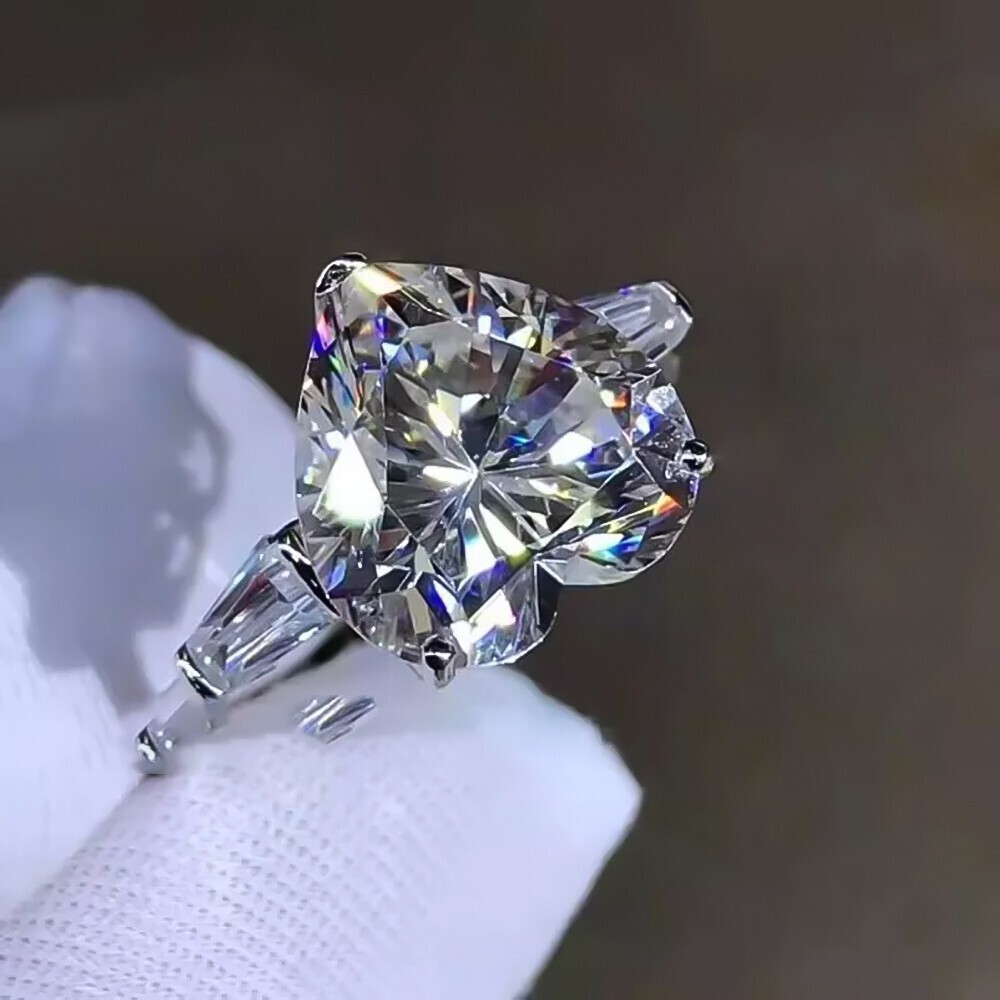 $ 88.2RARE 4.50 Ct Radiant Cut Off White Diamond Ring in Certified 925 Silver