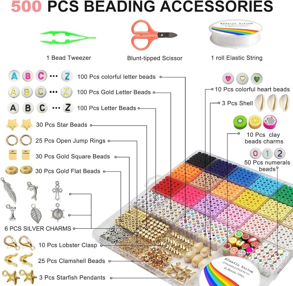 5100 Clay Beads Bracelet Making Kit DIY Jewelry Making Heishi Beads Charms Girls Gift Set LIMITED TIME OFFER: Free shipping on all orders! Product Features ๐จ Vibrant Colors & Variety: Includes 18-color polymer clay heishi beads & 500 charms. ๐ ๏ธ Complete DIY Kit: Comes with letter beads, heart beads, strings, scissors & tweezers. โ Safe & Premium Quality: Eco-friendly, waterproof, skin-friendly, and fade-resistant. ๐ Perfect Gift Choice: Ideal for birthdays, Christmas, Valentineโs, and creative fun. ๐ง๐ค๐ง Fun for All Ages: Great for kids 6+ and adults to make friendship bracelets & crafts. Shipping and Return Policies ๐ Shipping: Fast and Free Shipping to the USA. Most orders arrive in 3-10 business days. ๐ Delivery: Reliable shipping with tracking available for all purchases. ๐ Returns: Hassle-Free Returns: Free returns within 30 days for a full refund. Frequently Asked Questions (FAQ) What is included in the kit? This kit contains 5100 clay beads, 500 charms, letter beads, stretch strings, scissors, and more. Is this kit safe for kids? Yes! The materials are eco-friendly, waterproof, and safe for children ages 6+. Can I create different types of jewelry? Absolutely! You can make bracelets, necklaces, earrings, anklets, and keychains. Looking for more jewelry-making kits? Visit our store for exclusive offers! Visit Our Store All rights reserved by Building Your Future Company.