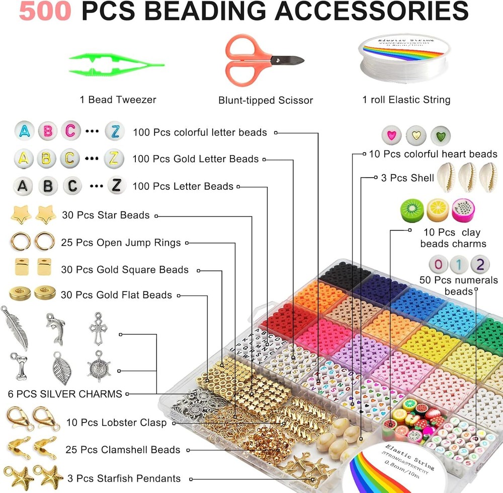 $ 11.04Preppy Polymer Clay Beads Kit 5000 Pcs DIY Bracelet Making for Kids Ages 6-13