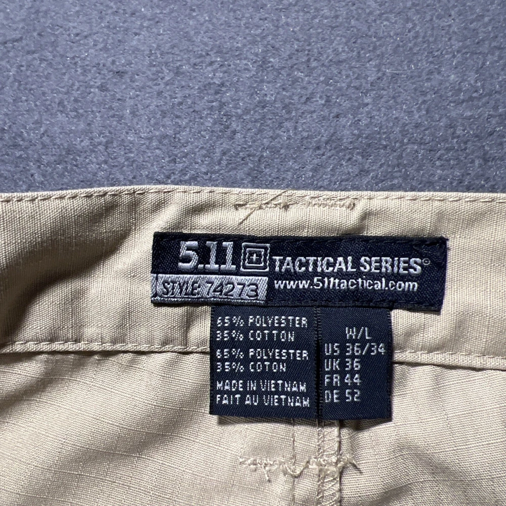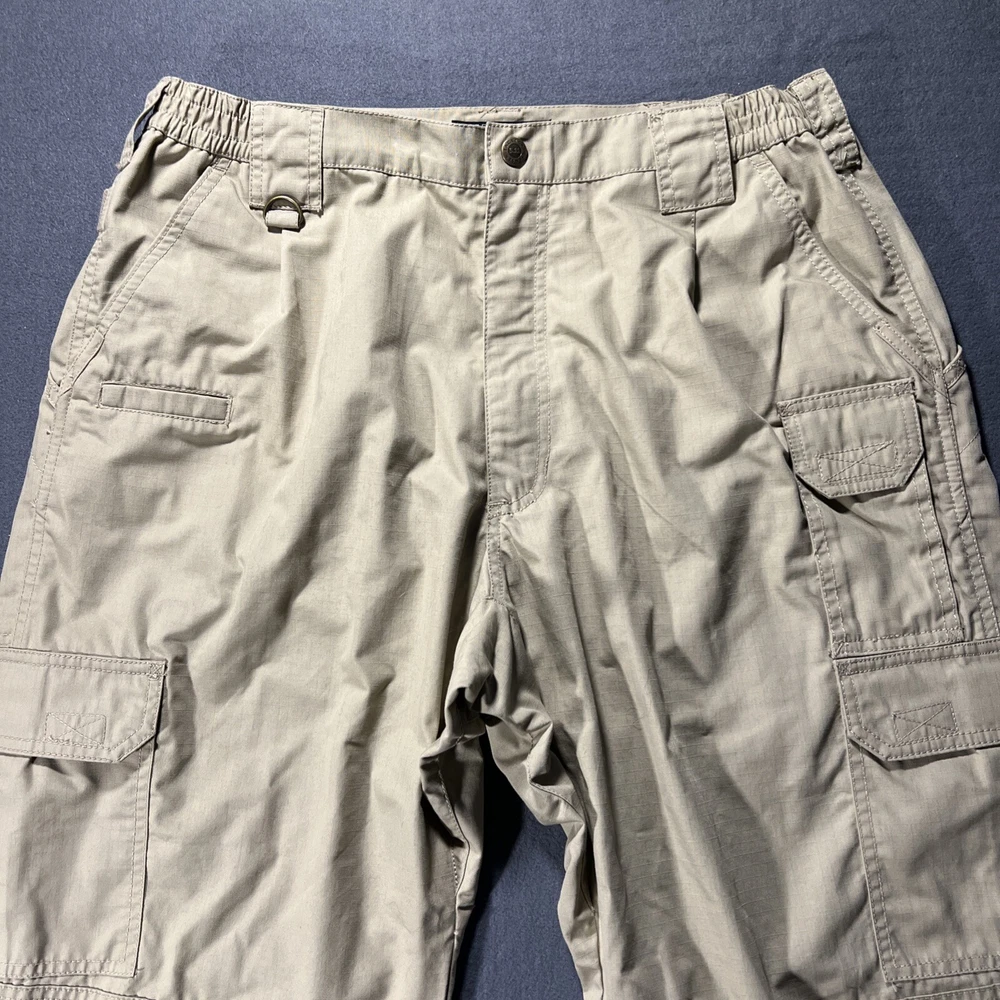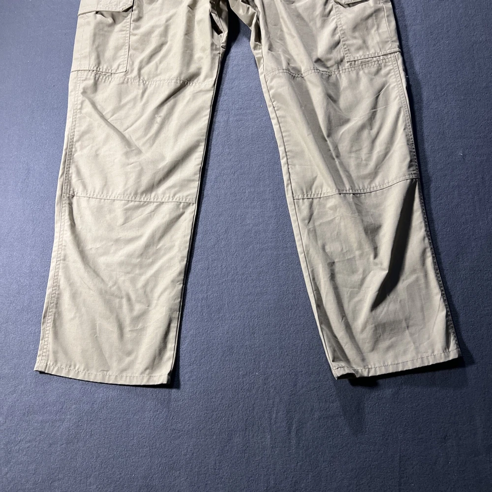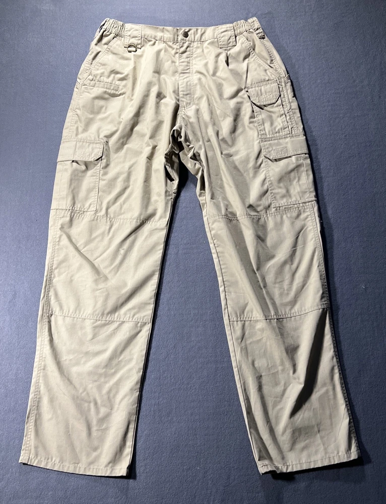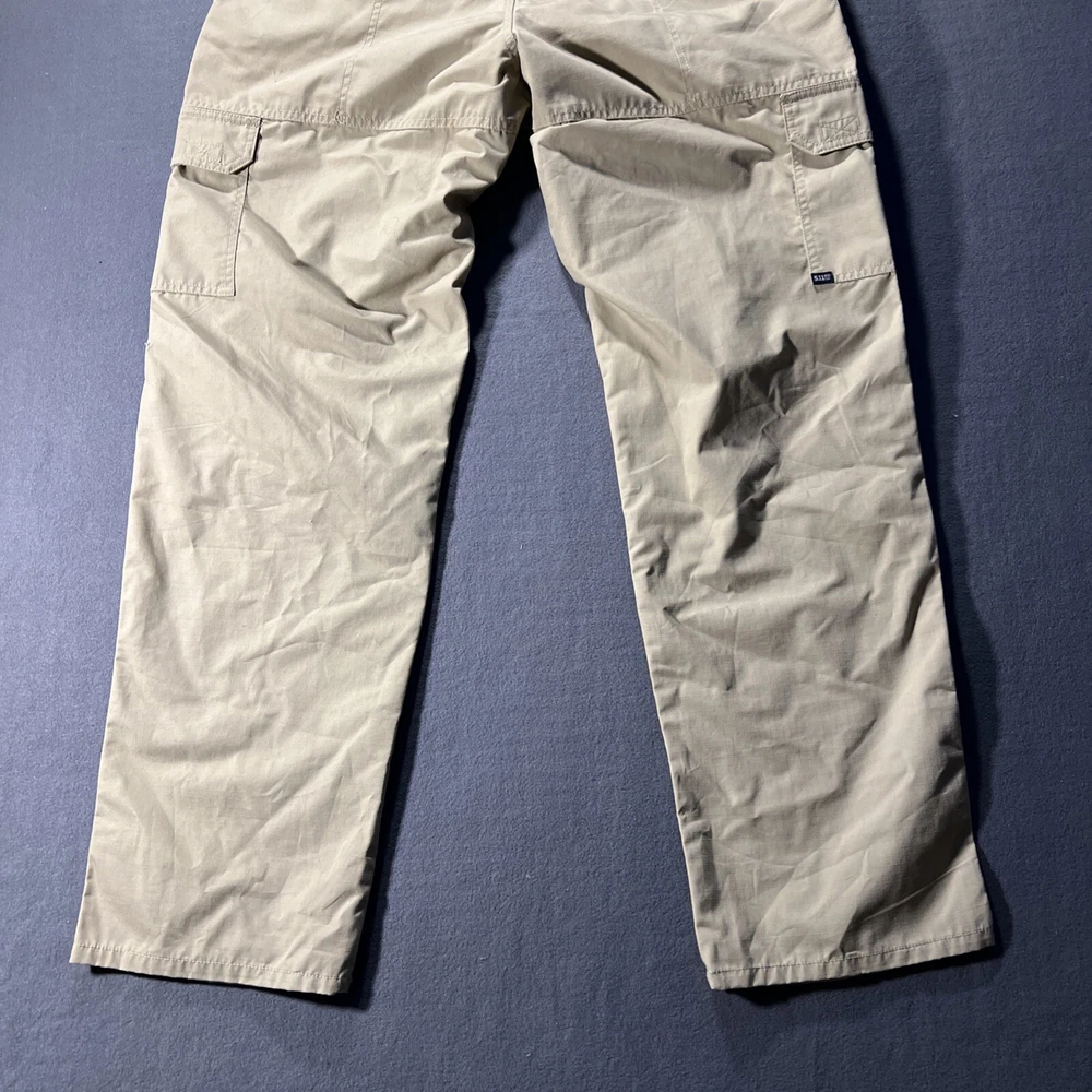 *Please review all photos closely before purchasing due to pants having mild signs of use and wear from washing and being preowned to prevent return.* Elevate your outdoor style with these 5.11 Tactical Men's Cargo Pants in Tan. These pants are perfect for casual or workwear occasions with their versatile design. The mid-rise and straight leg style offer a comfortable fit while the elastic waist and lightweight material provide added comfort. These pants also come with convenient features such as pockets and zipper closure. The 5.11 Tactical Men's Cargo Pants are made of high-quality cotton material with a solid pattern that complements any outfit. These pants are machine washable and easy to care for. The pants are part of the 5.11 Tactical product line and are designed to withstand any season. With a 36-inch waist and 34-inch inseam, these pants are a perfect fit for most men. Security Shooting Ripstop Durable Tactical Original Work Security Guard Shooting Pants Shooting Competition Clothing Iconic Classic 511