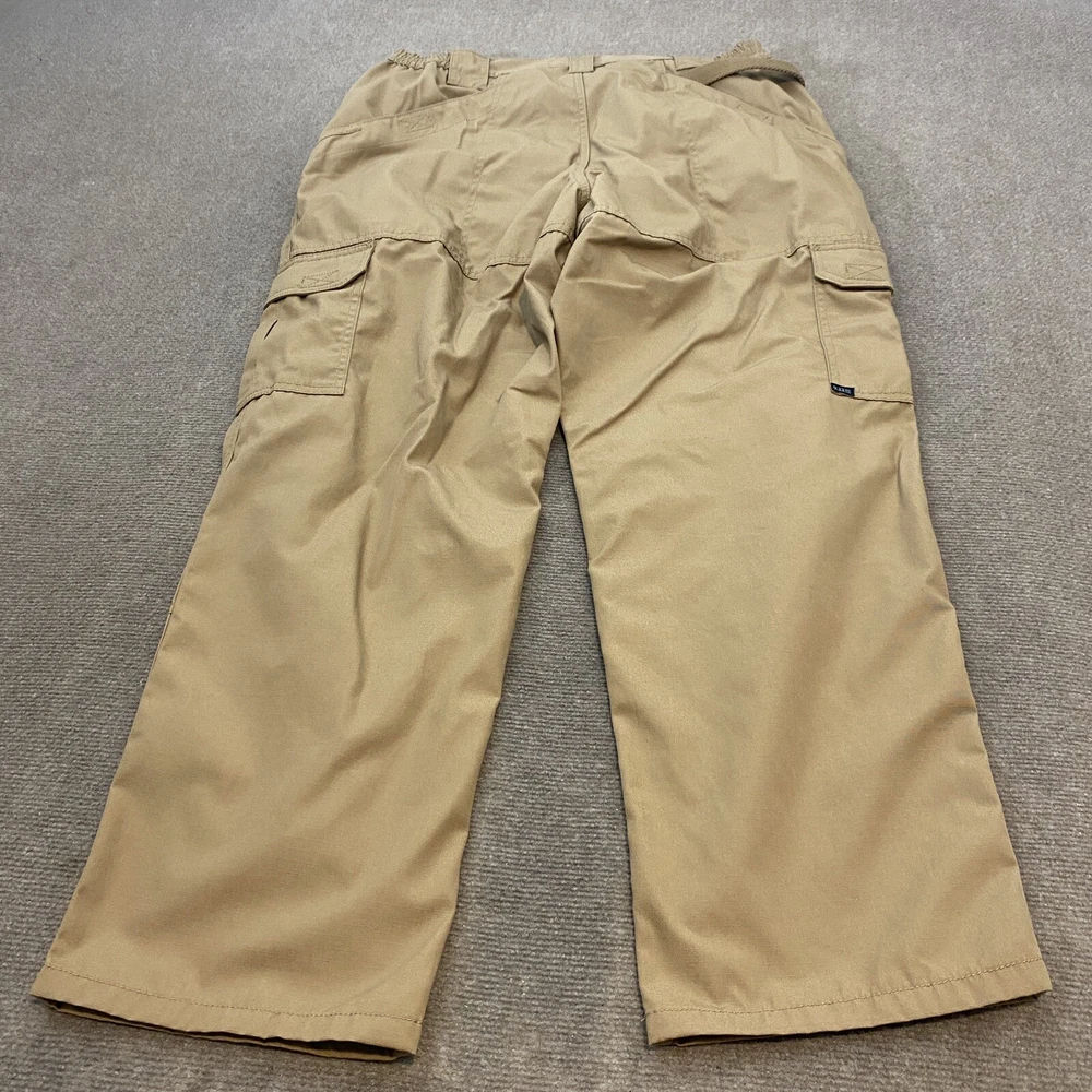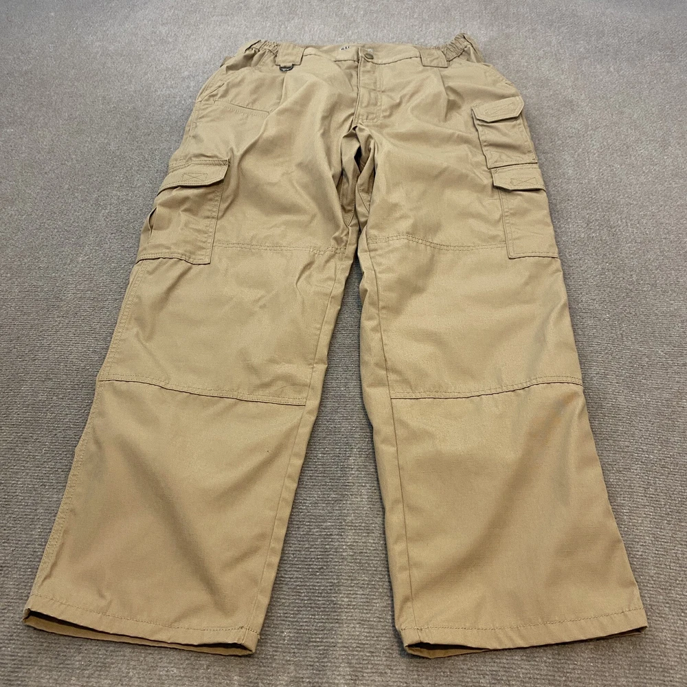 Features: Rip Stop, Comfort, Elastic Waist, Pockets Fabric Type: Canvas Fit: Regular Waist Size: 36 in Material: Polyester Blend Department: Men Theme: American, Army, Outdoor Product Line: 5.11 Taclite Pro Style: Cargo Brand: 5.11 Tactical Inseam: 30 in Occasion: Casual, Travel, Workwear Closure: Zip Accents: Button, Logo Type: Pants Size Type: Regular Color: Brown Size: 36 Pattern: Solid Vintage: No Front Type: Flat Front Leg Style: Straight