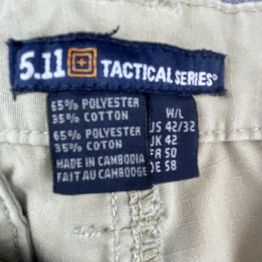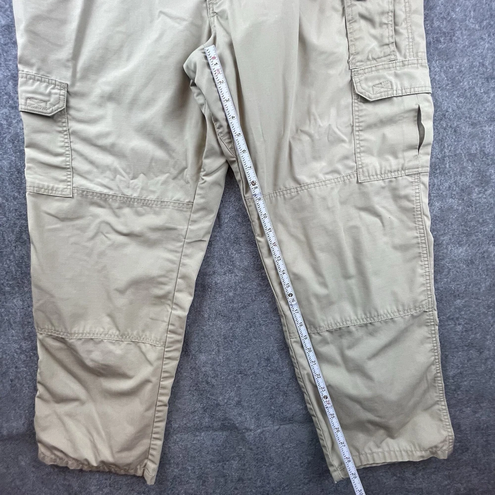 Material: Cotton, Polyester Pattern: Solid Type: Pants Style: Cargo Size Type: Regular Inseam: 29 in Front Type: Pleated Brand: 5.11 Tactical Color: Beige Seller Notes: “has snags on one pocket, see photos.” Leg Style: Straight Size: 42 Department: Men