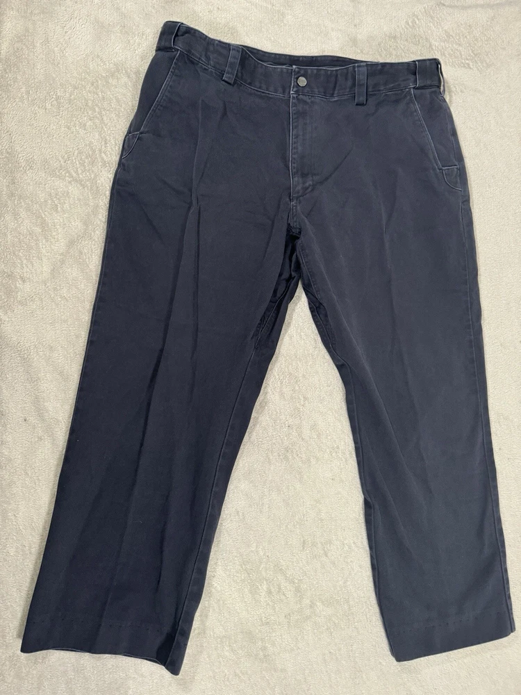 Elevate your style game with these 5.11 Tactical pants for men. These pants come in a classic navy blue color and a regular fit, with a straight leg style and a flat front design. They feature a convenient zip closure and a 5-pocket design with a cargo pocket for added storage. Made from a durable blend of polyester and cotton, these pants are machine washable and perfect for casual or workwear occasions. The mid-rise style and solid pattern make them a versatile addition to any wardrobe, while the button and zipper accents add a touch of style. These pants are available in size 42x27 and are suitable for all seasons.