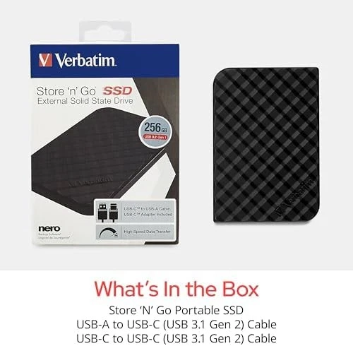 512GB Solid state drive with no moving parts for high reliability and silent operation High speed data transfer; fast and safe solution to expand storage and backup files; USB 3.2 GEN 1 connection with USB-C adapter Stylish black design with a 3D surface; USB-C to USB-A cable, USB-A to USB-C adapter, Quick Start Guide and User Manual included Nero Backup Software (Windows OS only)