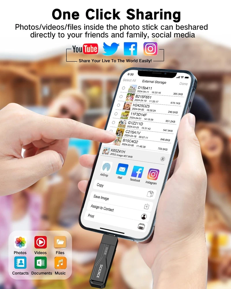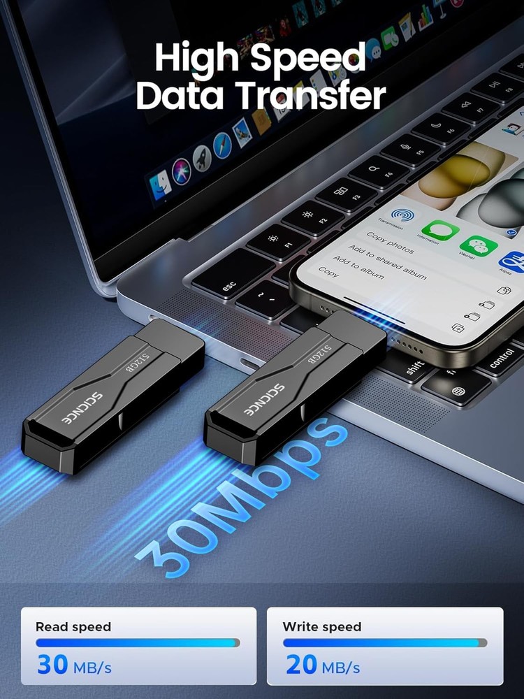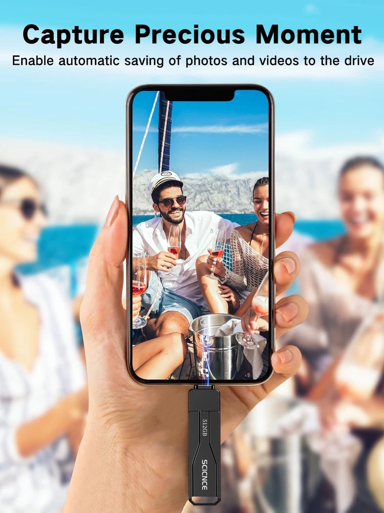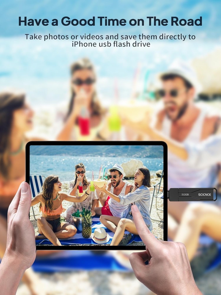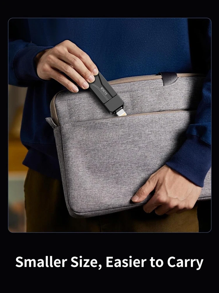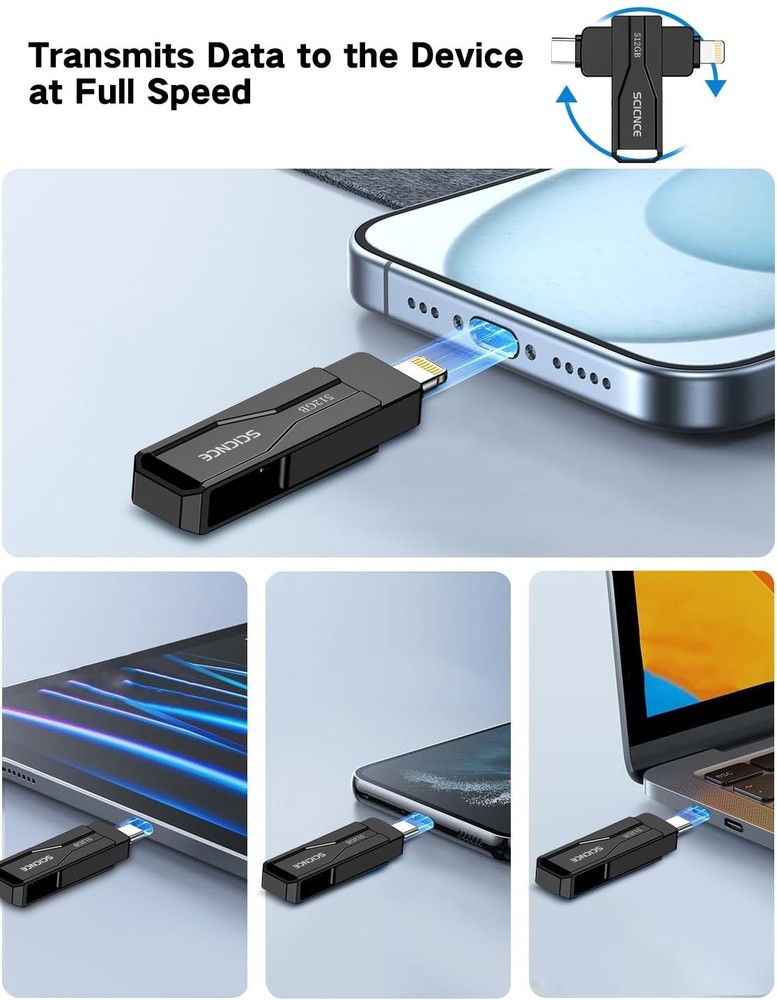 Do you want to make your Phone more convenient? Are you tired of your Phone running out of memory? Do you want to keep enough Phone memory during your trip? Plug and Play, No Application Required! Never lose important documents, videos, photos again thanks to large and reliable Phone flash drives. Free up iPhone and iPad Memory Space Immediately If your iPhone or iPad has almost used up all the memory space, this iPhone USB storage flash drive can help alleviate 512GB of storage space. Whether you like to shoot short videos or take selfies, our iPhone memory stick are perfect for you. One-Click Backup You can easily backup with one click and manage files at any time. No need of iTunes, manage files, pictures and videos through the mobile app to quickly backup to iPhone flash drive, save the storage space of the mobile phone, and at the same time, operations such as forwarding files on the USB drive can be performed. Plug and Play Share your photos, videos, songs and other files between iPhone picture stick easily. You don't have to pay extra for additional storage, just insert iPhone external storage and enjoy the extra space of your flash drive. High Transfer Speed Smart and upgraded chip with high efficiency and stability. read speed up to 30MB/s and write speed up to 20MB/s. The upgraded chip provides you with more efficient storage experience. How to transfer in iPhone iPad Requires iOS 13 and higher: Simply insert the flash drive into your iPhone iPad, then go to the "Files" app to find "NoName" and move files to your iPad or iPhone as needed. How to transfer in Android Phones Android phones need to support OTG, and flash drives can be found in the “File Manager” of most Android devices. 【Plug and Play, No Application Required, Instantly Increases iPhone and iPad Memory Space】If you almost used up all space on your iPhone or iPad, this photo stick for iPhone helps to expand your memory at full storage with 512GB. And usb memory stick for photos is also a great partner for traveling photographers editing on iPad. Using this memory device for your iPhone, iPad or Computers, no worries with the iPhone storage anymore! 【Multi-Port USB Drive】The 3 IN 1 phone photo stick with USB-C Port/ USB-L Port/ USB Port (Independent interface), which is more convenient for data transfer between different devices, so as to get rid of the data cable and iTunes and iCloud, let you switch easily storage space. The Phone thumb drive is designed for use with a wide range of devices, Compatibility iPhone 16/15/14/13/12/11/8/7/6S/SE/XR/XS/XS Max/X Series/iPad Air Series/iPad Pro Series. Also support Android smartphones/Computers and other devices with USB-C Ports. (Tip: For iPhone system version requires iOS 13 or higher, For Android smartphones need to open OTG function) 【Watch Movies, Photos and Play Music Directly From Phone Flash Drive】Store your favorite videos, audios and music on your iPhone's Photo Stick, then seamlessly plug and play on your iPhone or iPad anytime, anywhere. No more need for Internet or WiFi. This iPhone storage device plays videos in many different formats.Pictures stored on the Phone storage device also support different formats. Great way to store all your pictures and videos on an phone external storage device. 【High Transfer Speed】Transfer photos, videos, and files in seconds with our USB stick. With a write speed of up to 15 MB/s and a read speed of up to 30 MB/s, our flash drive for iphone have higher performance than conventional usb storage flash drive. Save time and get more done with iphone photo storage stick. Enjoy the whole relaxing trip with never stuttering or buffering video play on the go. (Tip: No Third-Party Apps Required, Simply insert the flash drive into the iPhone iPad and go to "Files" app) 【How to transfer in iPhone iPad】Requires iOS 13 and higher: Simply insert the flash drive into your iPhone iPad, then go to the "Files" app to find "Untitled" and move files to your iPad or iPhone as needed. 【How to transfer in Android Phones】Android phones need to support OTG, and flash drives can be found in the “File Manager” of most Android devices. 【Kindly Note】1) For Flash Media Devices, 1 megabyte = 1 million bytes; 1 gigabyte = 1 billion bytes. Actual useable capacity may vary. Some of the listed capacity is used for formatting and other functions, and thus is not available for data storage. 2) Up to 30MB/s read speed, write speed is lower. Based on internal testing; performance may be lower depending on the host devices and user’s settings and configurations. 【Kindly Note】The phone case may prevent the proper connection between a phone and a usb flash drive, which could result in the phone being unable to recognize the usb flash drive. In this situation, please do not conclude that the usb flash drive cannot be used, remove the phone case and try again. 【Reliable After-Sales Service】Experience the convenience of high-quality USB memory stick and enjoy our premium customer service at the same time. For the phone flash drive, if you have any questions, we are willing to provide help.