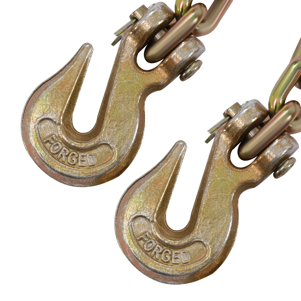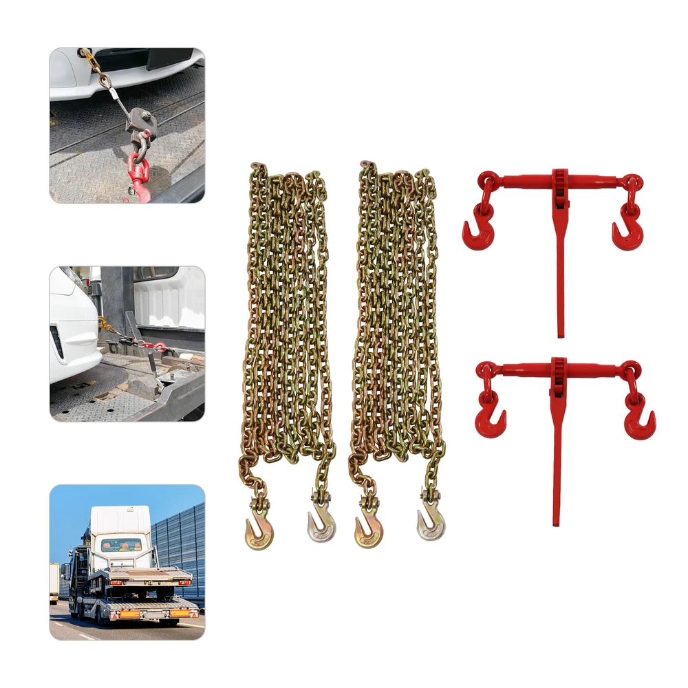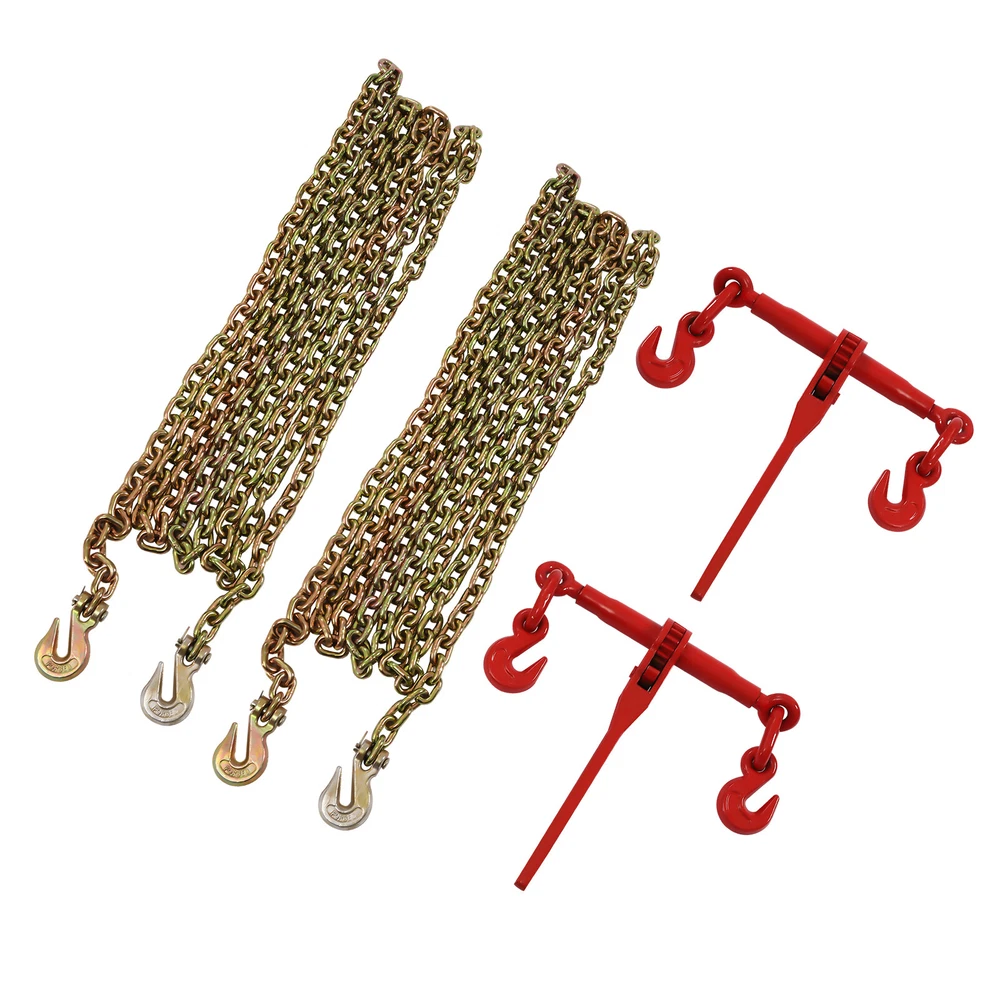 5/16”-3/8” Ratchet Chain Load Binder Flatbed Truck Trailer Tie Down & 10" Chains Key Words: 5/16'' - 3/8'' Chain Binder and 5/16'' X 10ft Binder Chains, Transport Chain Safe Working Load, Chains with Grappling Hook, for Tie Down Heavy Loads to a Truck or Flatbed Trailer Description The high-quality ratchet binder and chain set made of high-quality 45 steel is ideal for hauling and tying cargo. The upgraded ratchet gears, rings, and hooks not only increase the strength and load-bearing capacity of the product but also extend its service life. Buy this ratchet and chain set to make hauling goods easier and safer. Key Features 1. High-quality Materials: The ratchet binder and chain are made of strong, wear-resistant 45 steel, which provides excellent durability for the product. 2. Strong Connecting: The high-strength hanging ring forged from 45 steel is very strong and solid to effectively prevent falling off. A strong connection ring can effectively avoid accidents. 3. Upgraded Gears: The ratchet gears are made of exquisite forging and fine milling process to make them have excellent performance of high strength, not easily deformed and durable. At the same time, the flexible ratchet wheel is adjustable and tight to adapt to different scenarios. 4. Excellent Loading Capacity: The ratchet chain set has an excellent loading capacity of 5400 pounds and a breaking pull of 19,000 pounds, making it excellent for most industrial jobs. 5. Labor-saving and Safe: The ratchet binder has a 14'' long handle that provides extra leverage, which makes it easier for you to operate with less effort. And the ratchet gear and pawl prevent you from danger when loading and unloading. 6. Easy to Use: The 360° rotatable pawl engages easily with the chain to smoothly lift heavy loads. The smooth ratchet gear and pawl design tighten the chain and hold the load faster. 7. Long Service Life: The ratchet binder uses a superb spraying ,casting and die-forging process to make it wear and corrosion-resistant, which enables it to withstand harsh weather conditions. The superb craftsmanship greatly extends the product's life. 8. Customer Service: We aim to provide quality products and services. If you have any problems, please feel free to contact us. We will reply and solve the problem for you as soon as possible. Details 1. Extended Galvanized Chains: The extended chain (10 feet long) allows for a wider range of hauling of goods, which is more convenient and faster. The surface of the chain is galvanized so that the product has better corrosion resistance and wear resistance, which extends the service life. 2. High-strength Nuts: The nuts are processed with special treatment to make them high-strength and durable. They will not be deformed or damaged even after a long time of use. Application They are ideal for strapping, recording, securing, and pulling loads for most industrial applications such as factories, warehouses, garages, and docks. Specification Material: 45 Steel Color: Red, Gold Hook Rating: G70 Process: Die-forging, Casting, Spraying, Precision Milling Gross Weight: 19kg/42.22lbs Package Size: 40*41*9cm/15.75*16.14*3.54in Rated Pulling Force: 5400lbs Test Pulling Force: 10,800lbs Breaking Tension: 19000lbs Compatible Chain Size: 5/16''-3/8''/8-10 mm Adjustable Length: 57.5-77.8cm/22-30inch Handle Length: 35.3cm/14in Chain Length: 3m/10ft Chain Diameter: 5/16in/8mm Package Included 2*Ratchet Binders 2*Chains Notes 1. Develop good lifting habits, and plan how to hang, lift and unload before the lifting work starts. 2. Make preparations: determine the weight and center of gravity of the object to be lifted and mark the lifting and weight data. Only after the center of gravity is determined can the hook be hung in the proper position. 3. The crane operator should be informed of the weight of the object to be lifted. 4. The crane hook should be hung vertically above the center of gravity of the object to be lifted. 5. The lifting object is to be lifted in such a way as to avoid damage to the lifting object, damage to the rigging itself, rotation, or dropping. The following conditions need to be observed to ensure safe lifting. 5.1 For single-leg rigging, the lifting point should be vertically above the center of gravity of the object being lifted. 5.2 In the case of double-legged rigging, the lifting point should be located on both sides of the lifting object, with the lifting point above the center of gravity. 5.3 In the case of three-legged and four-legged rigging, the lifting point should be evenly located at the level of the center of gravity of the lifted object and above the center of gravity of the object to be lifted. 6. This product is only suitable for binding and tightening, not for high-altitude hoisting. 7. Please allow the slight color difference caused by the shooting light and 1-3cm error due to manual measurement. Please make sure you do not mind before you order. Payment Delivery details Terms of sales About us Contact us Payment We accept ebay payment 。 Fees such as import duties, taxes are not included in the item price or shipping costs. These charges are the buyer's responsibility. Delivery details Shipping: 2-9 working days to: USA Terms of sales We maintain high standards of excellence and strive for hundred percent customer satisfaction. Feedback is very important to us. We hope that you contact us immediately before you give neutral or negative feedback, so that we can address your concerns. It is impossible to address issues if we do not know about them! About us Your satis faction is our ultimate goal. We work hard to earn your trust and future business. Our certified technicians have tested each item before shipping. The unit comes with 1 year limited warranty on all manufacturing defects. a) If you receive a defective item, you may return it or ask for a discount. Please contact us within 14 days after you receive the package. b) What you returned must be intact and in its or