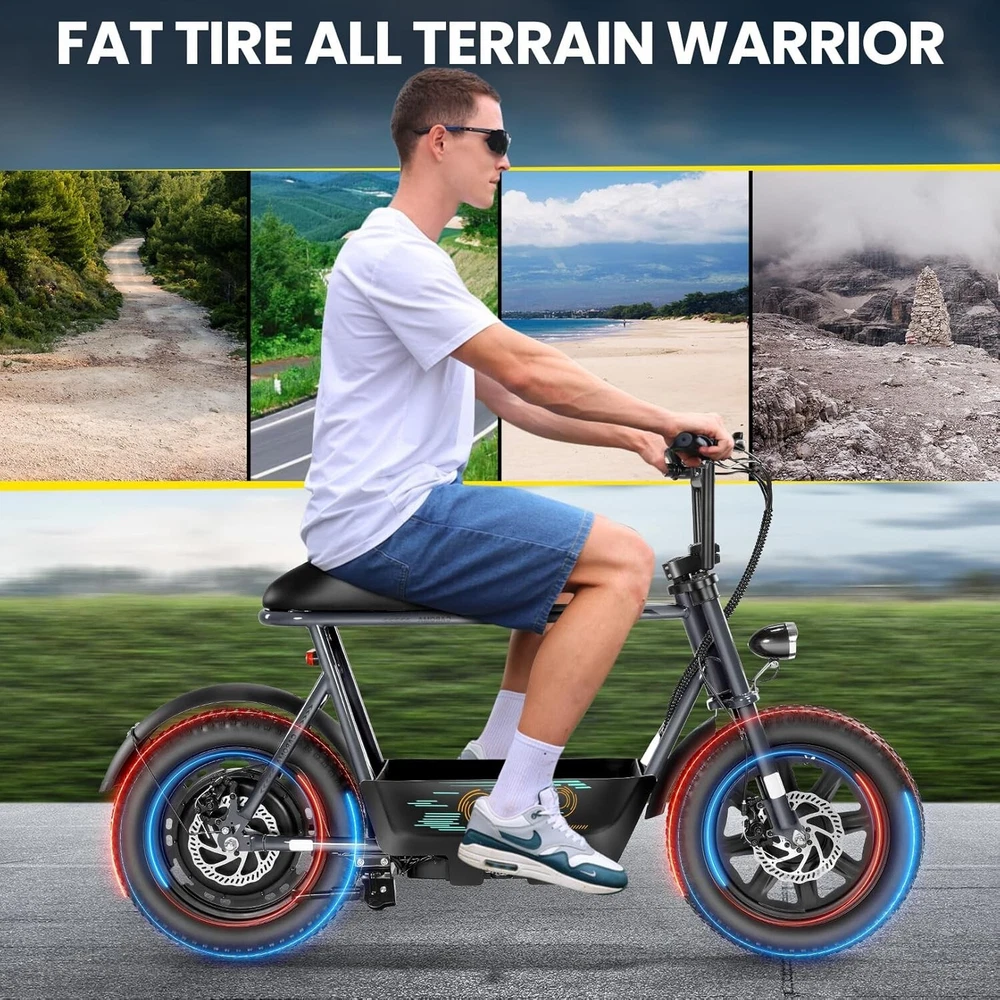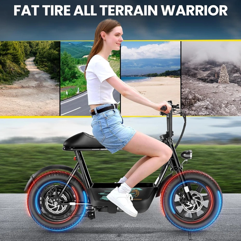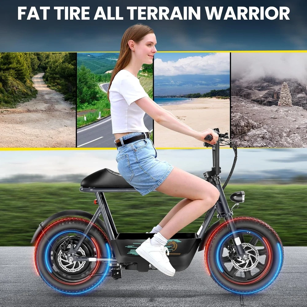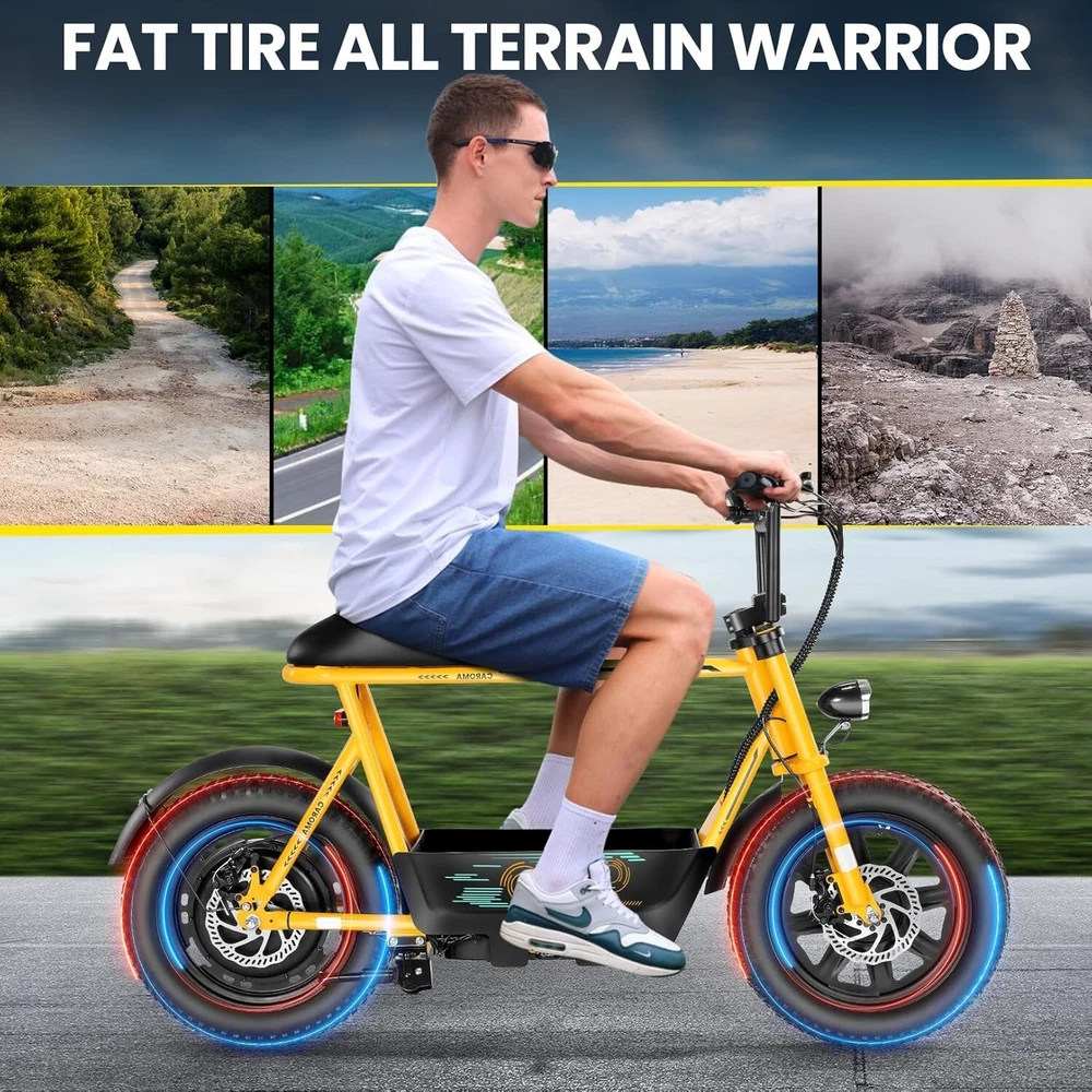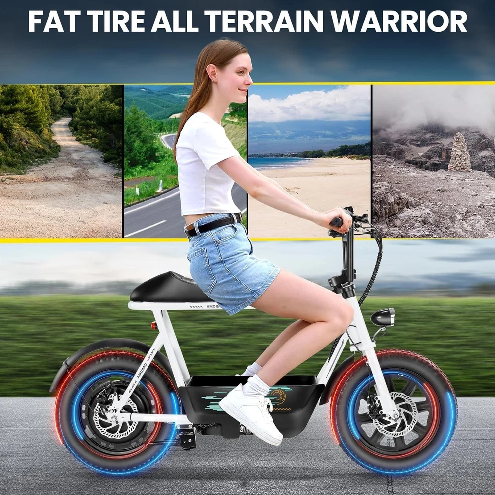 Product Description About this item ใ๐๐ฃ๐๐ฆ๐ช๐ ๐๐ฉ๐ฎ๐ก๐ & ๐๐ฅ๐ค๐ง๐ฉ๐จ ๐๐๐จ๐๐ค๐ฃใ:This ๐บ๐ผ๐๐ผ๐ฟ๐ฐ๐๐ฐ๐น๐ฒ ๐๐๐๐น๐ฒ electric scooter for adults features a ๐๐ป๐ถ๐พ๐๐ฒ ๐ฎ๐ป๐ฑ ๐ถ๐บ๐ฎ๐ด๐ถ๐ป๐ฎ๐๐ถ๐๐ฒ ๐ฑ๐ฒ๐๐ถ๐ด๐ป. The saddle is both delicate and soft, with a strengthened pole that creates a thrilling sports adventure experience. You'll turn heads with this bike and be the envy of others. Join us and try out the latest fashion trend. ใ๐ผ๐ก๐ก-๐๐๐ง๐ง๐๐๐ฃ ๐๐๐จ๐ฉ๐๐ง๐ฎใ:๐ญ๐ฒ*๐ฏ" ๐ณ๐ฎ๐ ๐๐ถ๐ฟ๐ฒ๐ provide a larger contact area, giving the scooter better stability and grip on a variety of surfaces. Fat tires better absorb vibrations on the road, providing a smooth and comfortable ride even on uneven roads,๐ฟ๐ฒ๐ฑ๐๐ฐ๐ถ๐ป๐ด ๐๐ต๐ฒ ๐ฟ๐ถ๐๐ธ of a blowout when driving over sharp objects, more suitable for extreme or irregular terrain, such as off-road mountain or beach, expanding the range of riding environments. ใ๐๐๐๐ ๐ญ๐ฎ๐ฌ๐ฌ๐ช ๐๐ค๐ฉ๐ค๐ง & ๐ฑ๐ฌ๐ฌ๐๐ ๐ฝ๐๐ฉ๐ฉ๐๐ง๐ฎใ: ๐๐๐ฅ๐ข๐ ๐ ๐๐ฏ ๐ฒ๐น๐ฒ๐ฐ๐๐ฟ๐ถ๐ฐ ๐๐ฐ๐ผ๐ผ๐๐ฒ๐ฟ with seat is equipped with a ๐ณ๐ฑ๐ฌ๐ช(๐ฃ๐ฒ๐ฎ๐ธ ๐ญ๐ฎ๐ฌ๐ฌ๐ช) brushless hub motor and ๐ฑ๐ฌ๐ฌ๐ช๐ต long lasting battery, so that it can reach ๐ฎ๐ฌ๐ ๐ฃ๐ top speed and travel up to ๐ฏ๐ฌ ๐บ๐ถ๐น๐ฒ๐ on a single charge. The E sooter can run smoothly even on a ๐ฎ๐ฌยฐ road. ใ๐๐๐ง๐๐๐๐ฉ ๐๐ก๐๐๐ฉ๐ง๐๐ ๐ฝ๐๐ ๐ ๐๐ค๐ง ๐ผ๐๐ช๐ก๐ฉ๐จ ๐๐ฃ๐๐๐ง $๐ฑ๐ญ๐ฌใ:๐๐๐ฅ๐ข๐ ๐ ๐๐ฏ ๐ฒ๐น๐ฒ๐ฐ๐๐ฟ๐ถ๐ฐ ๐๐ฐ๐ผ๐ผ๐๐ฒ๐ฟ is a standout choice with its unbeatable price/performance ratio. Not only does it excel in its price range, but its unique design ensuring you turn heads wherever you go. Electric scooter arrives ๐ด๐ฑ% ๐ฝ๐ฟ๐ฒ-๐ฎ๐๐๐ฒ๐บ๐ฏ๐น๐ฒ๐ฑ. Simply install the front wheel, handlebars, pedal and basket, you're ready to hit the road with ease. ใ๐๐ง๐ช๐จ๐ฉ๐๐ ๐๐ช๐๐ก๐๐ฉ๐ฎ ๐ผ๐จ๐จ๐ช๐ง๐๐ฃ๐๐ใ:The caroma electric scooter is UL 2272 certified. We provide a ๐ญ๐ฎ-๐บ๐ผ๐ป๐๐ต ๐๐ฎ๐ฟ๐ฟ๐ฎ๐ป๐๐ for this electric scooter. If you encounter problems when using the product, please refer to the manual. If the problem cannot be solved, feel free to contact our customer service. ใ๐๐พ๐ฟ ๐ฟ๐๐จ๐ฅ๐ก๐๐ฎ & ๐๐๐๐ ๐ฉ๐ค ๐๐๐๐ใ:The LCD monitor shows the ๐ฏ๐ฎ๐๐๐ฒ๐ฟ๐ ๐น๐ฒ๐๐ฒ๐น of the e scooter, so you can get a clear picture of your riding. The effective front and rear disc brake on the e-scooters provide excellent stability and control. Complete with a ๐ฐ๐ผ๐ผ๐น ๐ต๐ฒ๐ฎ๐ฑ๐น๐ถ๐ด๐ต๐ for optimal safety during night rides. The high-brightness headlight and rear brake light ๐ธ๐ฒ๐ฒ๐ฝ ๐๐ผ๐๐ฟ ๐ฟ๐ถ๐ฑ๐ถ๐ป๐ด ๐๐ฎ๐ณ๐ฒ at night.