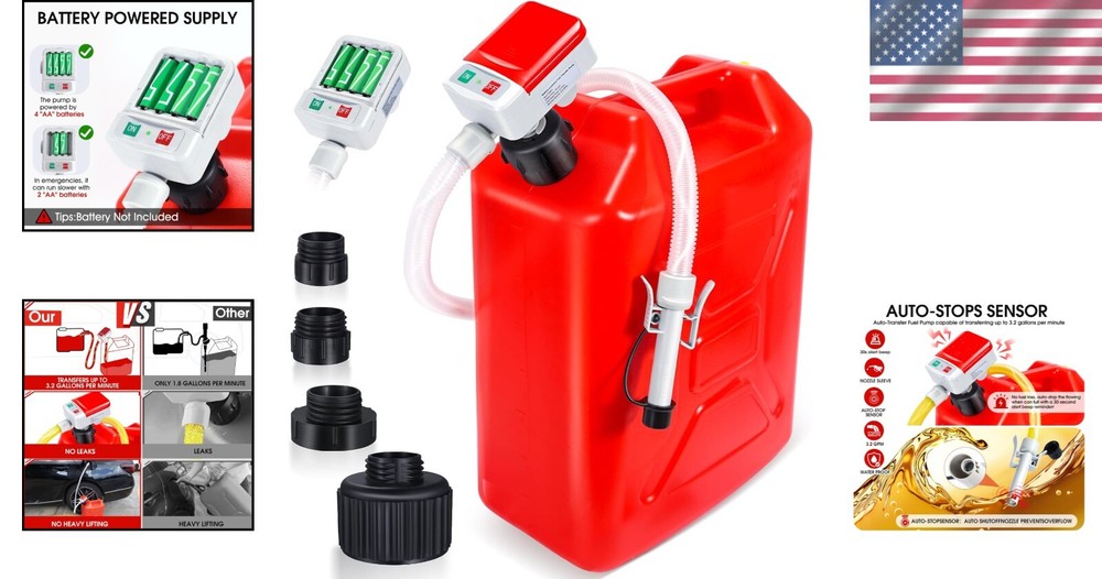Fuel Transfer Pump Plastic 51in Hose Auto-Stop Sensor 3.2GPM Portable ‹ › ‹ › ‹ › ‹ › ‹ › ‹ › ‹ › ‹ › ‹ › ‹ › Fuel Transfer Pump Portable Fuel Transfer Pump with 51in Hose & Auto-Stop Sensor Features: Equipped with an auto-stop sensor to prevent spills, leaks, and overflows, enhancing safety in your work environment. Efficient fuel transfer at a flow rate of up to 3.2GPM, ideal for quick and hassle-free refueling of vehicles and equipment. Includes 4 gas can adapters (2.0inch, 2.1inch, 2.75inch, 3.75inch) to meet various oil drum requirements. Durable 51-inch polyethylene plastic hose that is rustproof and corrosion-resistant. Battery-powered for convenience; recommended to use 4xAA batteries for optimal performance. Compact and portable design with a storage bag, making it easily storeable in your trunk or garage. Benefits: Reduces risk of fuel spills and leaks, ensuring a safer transfer process. Fast and efficient refueling for all types of vehicles and equipment. Flexibility without the constraints of cords or electrical outlets. Highly portable, perfect for various environments and emergencies. Ideal as a thoughtful gift for those who appreciate quality tools and equipment. Why Choose Our Fuel Transfer Pump? Don't let spills and leaks ruin your refueling experience! Our Fuel Transfer Pump combines efficiency and safety with its auto-stop sensor and powerful 3.2GPM flow rate, making it perfect for refueling and transporting various liquids. With multiple adapters included, you'll be equipped for any task. This pump stands out for its portability and convenience, making it an essential addition to your garage or trunk. Whether you're on the go or dealing with a fuel transfer emergency, our Fuel Transfer Pump is your reliable partner. Treat yourself or surprise a loved one this holiday season with the practical gift of a high-performing fuel transfer solution! Shipping Free & Fast Shipping - We offer free shipping to most of the USA with a normal delivery time of 3-7 days. However, due to the current situation, additional delivery time (up to 3 weeks) may be required for some items. Alternative Carriers - We may use alternative carriers (e.g. USPS, FedEx, UPS, etc.) to ensure your package arrives safely and on time. Due to the use of multiple carriers, we are unable to provide a tracking number automatically. Handling Time - Orders are processed and shipped within 1-2 business days of receiving cleared payment. Shipping Restrictions - Shipping to Alaska, Hawaii, Puerto Rico, Guam, and other US territories may incur shipping charges or delivery restrictions. Please contact us before ordering, or your order can be refunded/cancelled. State Restrictions - There may be restrictions based on your state of purchase. For example, certain items may not be shipped to California due to state regulations. Contact for Tracking Updates - If you require tracking updates or have any concerns about the delivery of your order, please feel free to contact us, and we will be happy to assist you. Return 30-Day Hassle-Free Returns - We want you to be completely satisfied with your purchase. If you are not, you can return the item within 30 days of receiving it for a full refund or exchange. Easy Return Process - To start a return, simply contact us and we will provide you with a prepaid return shipping label and detailed instructions. Restocking Fee - There are no restocking fees for returns. However, the buyer is responsible for return shipping costs if the return is not due to a seller's error. Refund Processing Time - Refunds will be processed within 5 business days of receiving the returned item in its condition. Payment We accept all major credit cards, PayPal, and Apple Pay for your convenience. Your payment information is secure and encrypted to ensure a safe and seamless transaction. Please complete your payment within 3 days of purchase to avoid any delays in shipping. Feedback Your feedback is extremely important to us. We strive to provide the best products and customer service possible. If you are satisfied with your purchase, please take a moment to leave us a positive review. If you have any concerns or issues with your order, please contact us before leaving negative feedback. We are committed to resolving any problems and ensuring your satisfaction. Contact Us If you have any questions or concerns, please feel free to out to our customer support team. You can contact us through the eBay messaging system. We are available Monday to Friday, 9:00 am to 5:00 pm EST, and we will do our best to respond to your inquiry within 24 hours. Buy it now and enjoy a pleasant shopping experience! Model: Fuel Transfer Pump MPN: Fuel_Transfer_Pump Country/Region of Manufacture: Fuel Transfer Pump