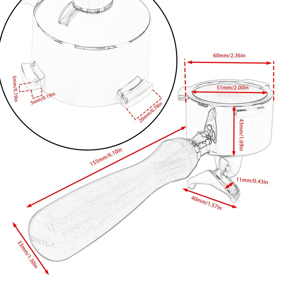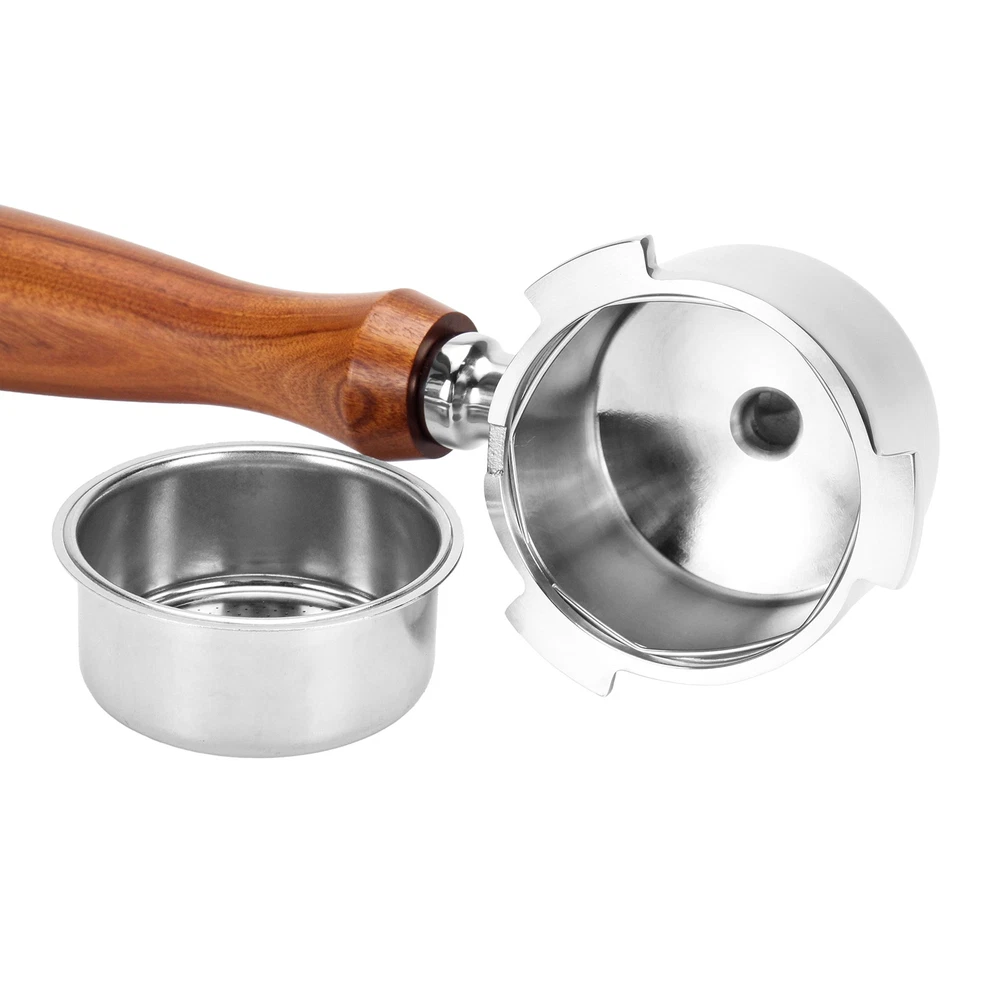 51mm Coffee Tamper Espresso Portafilter For Delonghi EC680 EC685 SMEG ECF01 51mm Coffee Portafilter --51mm 3 Ears Design Portafilter: It is compatible with Delonghi Dedica Style Series EC680 and EC685, SMEG ECF01.But NOT fit for EC9335, EC966,EC9115. --Portafilter with Split Spouts: This coffee portafilter is design with double spouts, which allows you to make two espresso cups at the same time without coffee residue. 51mm Coffee Tamper --Fit 51mm Portafilter: Coffee tamper is fit for any portafilter filter baskets of 51mm diameter. --Professional Spring Loaded espresso Hand Tamper : This design will make the handle and flat base of this coffee tamper is separated , when you use at least 30 pounds of force to press this tamper, the handle and base will be connected, which results in an even pressure distribution , the coffee grounds in the portafilter are compacted with consistent pressure , the perfect tamp for the best tasting espresso possible. Description: Material: Solid Food 304 Stainless Steel Base/Anti-slip Wood Handle Color: As pictures shown Base diameter: 51mm Package Include: 1 Set (51mm Portafilter+51mm Coffee Tamper)