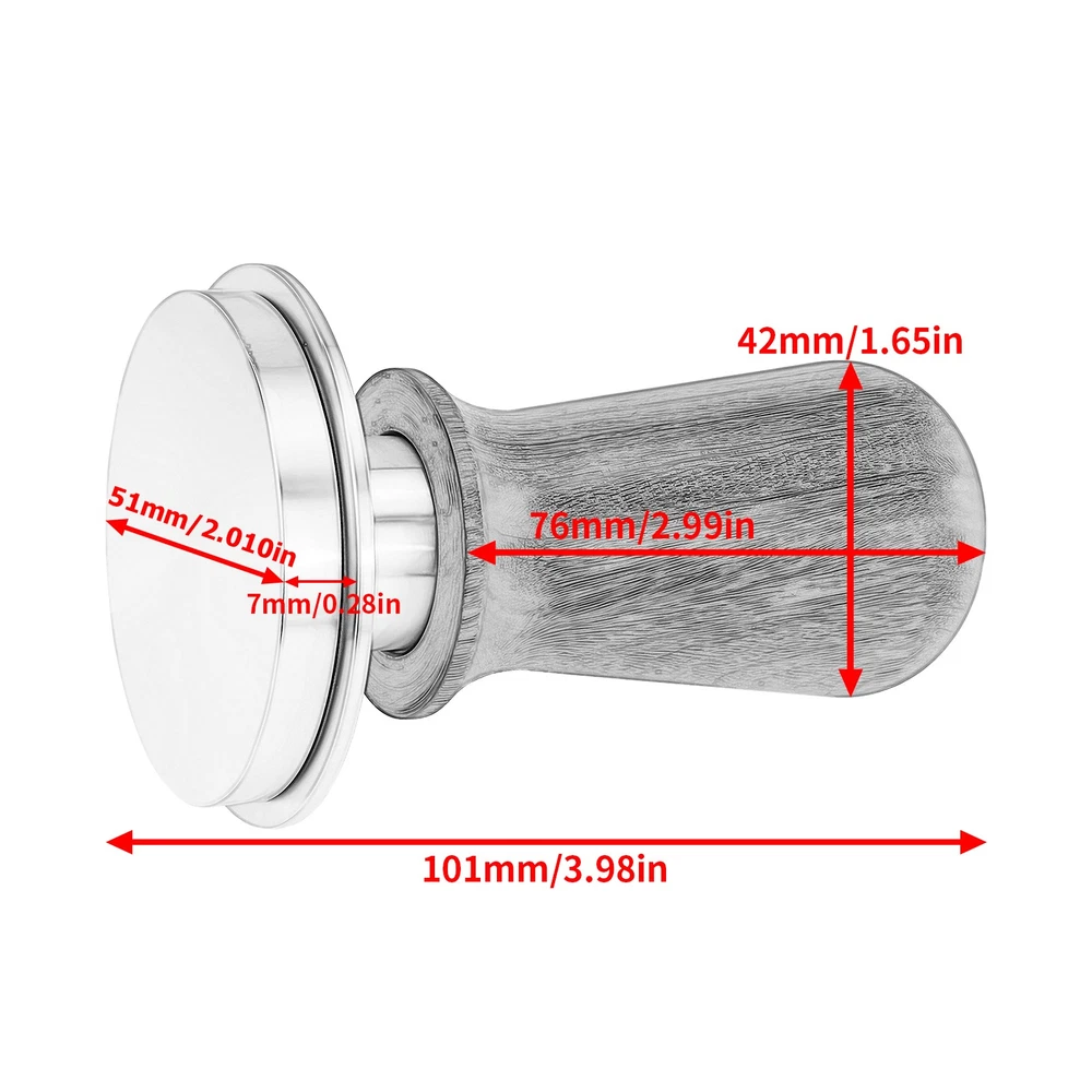 51mm Coffee Tamper Espresso Portafilter Kit For Delonghi EC680 EC685, SMEG ECF01 51mm Coffee Portafilter --51mm 3 Ears Design Portafilter: It is compatible with Delonghi Dedica Style Series EC680 and EC685, SMEG ECF01.But NOT fit for EC9335, EC966,EC9115. --Portafilter with Split Spouts: This coffee portafilter is design with double spouts, which allows you to make two espresso cups at the same time without coffee residue. 51mm Coffee Tamper --Spring Loaded Coffee Tamper: This coffee tamper is compatible with Delonghi Dedica EC685/EC785/EC860/La Specialista Prestigio/Stilosa ec235,SMEG, Solis Grind & Infuse Compact 1018/Priaroma/Solis 110 and other 51mm espresso machine portafilter basket --Features A Circular Baffle For Level Tamping: Our tamper's circular baffle guarantees a straight-down press, preventing puck tilting for a vertical tamp. The 30lb spring ensures consistent pressure, saving time for consistently delicious espresso. --Ripple Base: Created to minimize the risk of a doughnut extraction, the indentation on the coffee bed made by the ripple tamper allows controlled water channeling and even saturation of the grounds. Description: Material: Solid Food 304 Stainless Steel Base/Anti-slip Wood Handle Color: As pictures shown Base diameter: 51mm Package Include: 1 Set (51mm Portafilter+51mm Coffee Tamper)