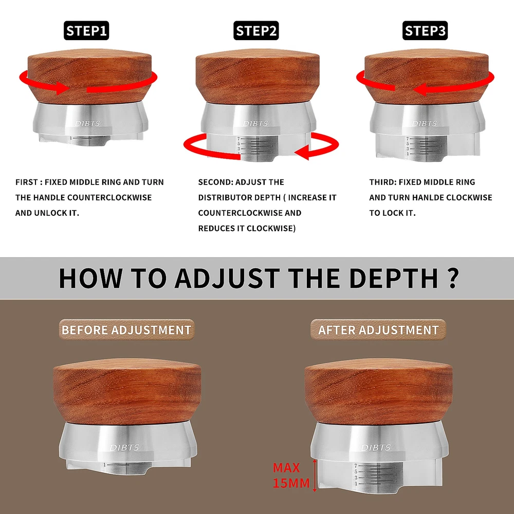 51mm Distributor Portafilter Set For Delonghi Dedica EC680 EC685 SMEG ECF01 51mm Coffee Portafilter --51mm 3 EARS DESIGN PORTAFILTER: It is compatible with Delonghi Dedica Style Series EC680 and EC685, SMEG ECF01. But NOT fit for EC9335, EC966,EC9115. --PORTAFILTER WITH SPLIT SPOUTS: This coffee portafilter is design with double spouts, which allows you to make two espresso cups at the same time without coffee residue. Perfect for use at cafe or home which with many members, can improve the efficiency of coffee making --304 STAINLESS STEEL PORTAFILTER BASKET: This 51mm portafilter filter basket is made of food-grade 304 stainless steel, its exceptional resistance to oxidation, corrosion, and rust, which ensures that your coffee stays free from any unwanted impurities. The filter basket and wood handle of this portafilter can be disassemble, convenience to clean. Coffee Distributor --51mm Coffee Distributor : The coffee distributor is fit for any portafilter filter baskets of 51mm diameter. It’s use for distributing fresh coffee powder before tamping , fully even distribute the coffee powder for a richer and more flavorful coffee brew. --Depth Adjustable Distributor : Height is easily adjustable by it's screw mechanism ( NO tool required ) to suit different doses , After Loosening the anti-slip ring of the distribution tool and adjusting its height, fix back the ring for tightening. --4-leaf 304 Stainless Steel Base : The base of the coffee powder leveler designed with 4-Leaf distributes the coffee consistently and evenly by spinning around in circular motion. This ensures that microchannels are reduced and flat and consistent compaction is formed. Specification: Material: Wood & Stainless Steel Color: As pictures shown Base diameter: 51mm Package: 1*Coffee Portafilter+Tamper