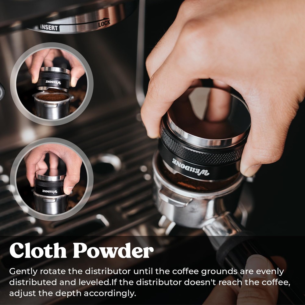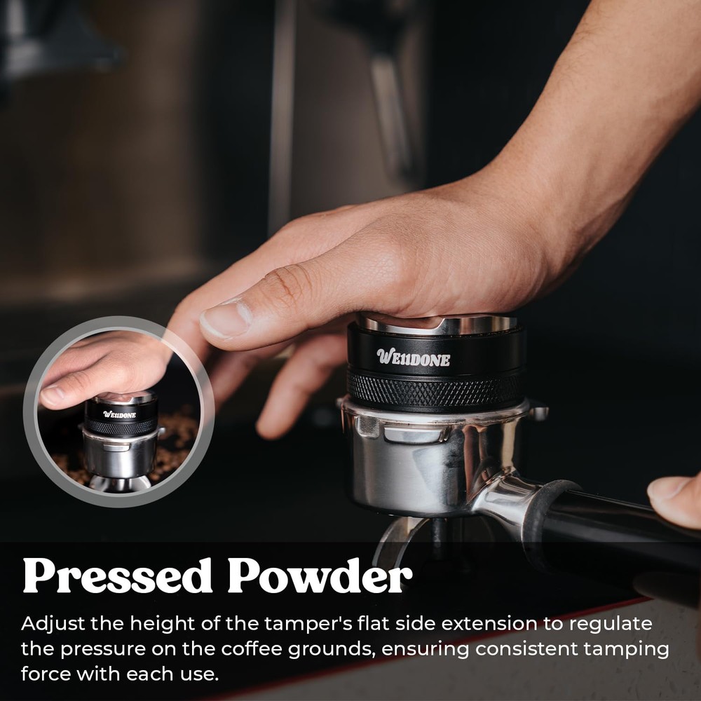 Crafted for Multi-brand Compatibility:The 51mm espresso tamper, designed with an adjustable distributor and base, is meticulously tailored to harmonize with various portafilters and espresso machines. Compatible brands include Delonghi pump machine series, Capresso PRO and Breville 800 Series and other espresso machines with 51mm portafilter Consistent Brewing Stability:assures a stable brewing experience by delivering uniform distribution and pressure every time. Pulling a perfect shot at home is effortless, thanks to the consistent tamp achieved by leveling the coffee grounds before tamping. Adjustable Depth and Comfortable Grip:With height adjustability catering to any portafilter basket depth, our 51mm espresso tamper ensures consistent tamping pressure, resulting in an exceptional cup every time. The diamond-patterned grip provides a non-slip, incredibly comfortable feel in your hand. Dual-Head Design for Unmatched Versatility:Experience unparalleled versatility with our dual-sided distributor/leveler and tamper. The ingeniously designed unit offers flexibility, making it a versatile tool for various coffee-making techniques. Pro Tips for Enhanced Enjoyment:shares professional insights to elevate your experience. Ensure the portafilter basket is fully dosed with coffee grinds for optimal tamper pressure, creating a tighter pack and richer flavor. Groom the basket's top with a finger or flat edge before leveling and tamping. Brew with high-quality, filtered water for an exceptional result.