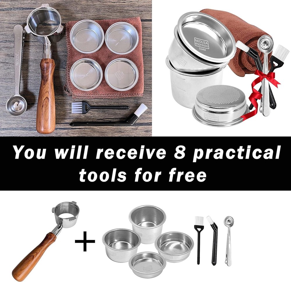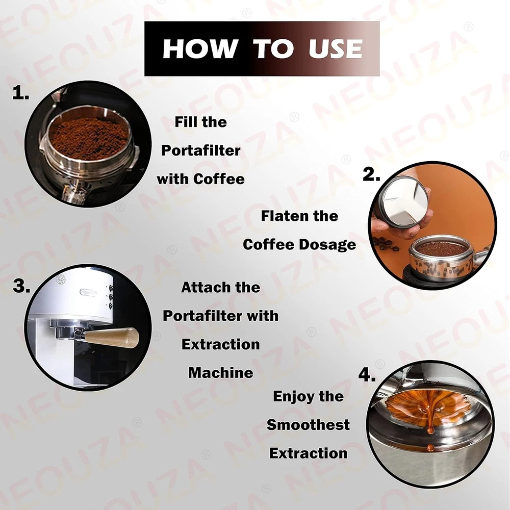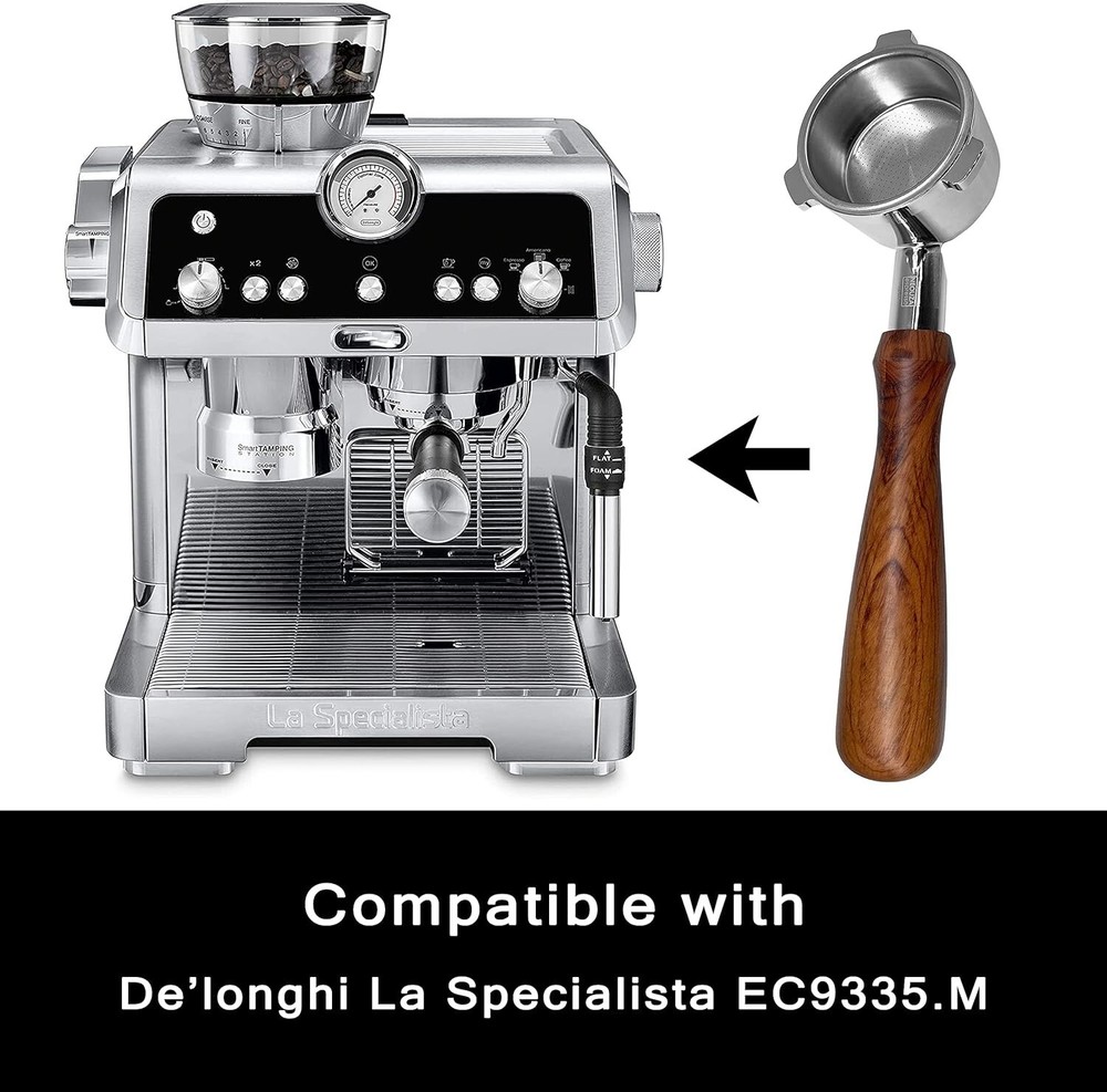 About this item High-Quality Material——Made of thick and food-grade 304 stainless steel, the 51mm bottomless portafillter is safe, hygienic and anti-corrosion. The handle is very comfortable to hold because of being made of high-quality natural rosewood, each of which has a unique color and grain. Adaptive Models——The bottomless portafillter is compatible with DeLonghi EC9155M EC9335M EC9355M EC9665M, which can be used compatibly with 51mm fillter basket, 51mm Distributor, and 51mm Tamper. Unique Advantages——The bottomless portafillter allows you to clearly observe the entire process of extraction, helping you find problems in the extraction process. It is very convenient for you to disassemble and clean the bottomless portafillter. Compared with standard portafillters, the bottomless portafillter is much more hygienic. Discount Package——The gift includes a 1-cup fillter basket,a 2-cup fillter basket, a 4-cup fillter basket,a backflush blind filter,a Scoop Clip,a PP brush and a special brush for cleaning the brewing head of coffee machine. If you have problems with the extraction liquid flowing too fast, splashing, or falling into multiple jets during use, you can adjust the grinding degree and use finer coffee powder for extraction.
