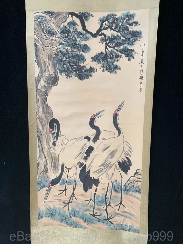 Here is an 52" Chinese Xuan Paper Crane Bird Long Scrolls Painting By Xu Beihong 徐悲鸿 . It is in good condition and was created by skilled craftsmen in traditional style with fine handcrafts in earlier time. This is a great piece of valuable collection, a valuable personal alter or a very good present. the handwork is very fine with incredible detailing. Don't miss out this chance to get it . Size: Height : 52 inch .Long:25.2 inch . Width: inch Size: Height:130 cm .Long:63 cm . Width: cm Weight: 0.6 KG ----included the weight of packing materials Materials: Paper Condition: Good condition Origin: China Shipping cost by Air Mail EMS (7--15 days ) : $Free we only accept pay pal if you have any problems on payment,please inform us via e bay message . 1.We ship regularly Monday to Saturday (Beijing Time) and will ship your items within 1-2 days upon payment received. If we can not ship your item on time for some special reason, we will inform you via e bay message. 2.We are not responsible for nor can we offer any specific adv ices on import fees, duty, customs, VAT or taxes that you may have to pay when your order arrives. 3.We ship the items according to your Pay pal address except the special notes from buyers! Be sure that your Pay pal address is correct when you buy the items in e bay. We do not take responsibility for item loss due to wrong address. 4.Estimated delivery time: Shipping may be influenced by holidays, events and some other uncertainties. If you dislike the seemingly long shipping time, please think carefully to bid or buy the item. We do not want to get a negative or neutral or low D SR score because of shipping time. If you have special demand on shipping time, please inform me via e bay message. We want to give you a happy shopping experience, when you are not satisfied with our products, please contact us on E BAY, we are responsible seller, we will solve your problem, please believe us,thanks! If you're in any way dissatisfied with your purchase, let me know through "MY MESSAGES" or "Ask Seller Questions" or our mailbox. We will solve it for you. We are committed to ensuring that you are completely satisfied with every transaction. 100% Satisfaction guaranteed ! We will reply your mail with in 24 hours normally. Sometimes have a little delay due to the weekends or holidays. If you can't get our mail after 48 hours, please check your spam or contact to us via E bay. In addition to contact us through eBay or you can send your message to our mailbox. Any question, please feel free to contact us, we will always do our best to serve you. Business Hours: Mon-Sat 9:00-17:30:00 (Hong Kong Time GMT+8:00)