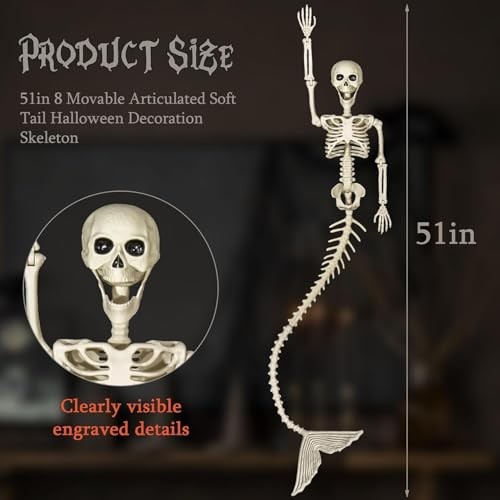 52 Inches Mermaid Halloween Skeleton Pose-N-Stay Posable Movable Jonints 1 Pack