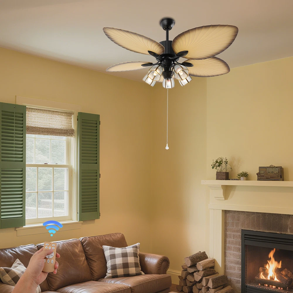 Ceiling Fan with Light Remote Control Reversible 5 Palm Tropical Blades 52 inch