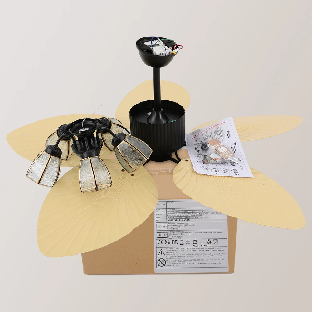 Specifications Model: CJ3366 Material: Copper, Iron Hardware, Plastic Style: Modern Process: Baked Paint Efficiency: E Mounting Type: Ceiling Mount Indoor/Outdoor Use: Indoor Assembly Required: Yes Light Source Type: 5*E26(Not Included) Control Style: Remote Control (Included) Remote Control Distance: Within 10m/32.8ft Battery Type: 2* AAA Batteries (Included) Voltage: 110V Noise: 30dB Number of Fan Blades: 5 Wind Speed: 6 Gears Timing Range: 1/2/4H Rod Length: 10cm/3.94in, 25cm/9.84in Base Diameter: 15cm/5.9in Lampshade Diameter: 132cm/52in Package Included 1* 52-inch Ceiling Fan Light 1* Remote Control 1* English Manual All Accessories for Assembly 52 inch Reversible Ceiling Fan Lamp 5 wood Palm leaves Chandelier with Remote Application It is suitable for a bedroom, living room, kitchen, dining room, corridor, aisle, balcony, study, reading room, living room, cafe, store, bar, office, lounge, library, club, hotel, kindergarten, and so on. It is not only suitable for indoor lighting but also can be used as a ceiling fan. Specifications Model: CJ3366 Material: Copper, Iron Hardware, Plastic Style: Modern Process: Baked Paint Efficiency: E Mounting Type: Ceiling Mount Indoor/Outdoor Use: Indoor Assembly Required: Yes Light Source Type: 5*E26(Not Included) Control Style: Remote Control (Included) Remote Control Distance: Within 10m/32.8ft Battery Type: 2* AAA Batteries (Included) Voltage: 110V Noise: 30dB Number of Fan Blades: 5 Wind Speed: 6 Gears Timing Range: 1/2/4H Rod Length: 10cm/3.94in, 25cm/9.84in Base Diameter: 15cm/5.9in Lampshade Diameter: 132cm/52in Package Included 1* 52-inch Ceiling Fan Light 1* Remote Control 1* English Manual All Accessories for Assembly Description This 52-inch ceiling fan light combines the usefulness of a ceiling fan and light, which not only cools the room but also illuminates it. It is equipped with a remote control that can greatly enhance your convenience. Forward and reverse functions keep you comfortable in both summer and winter. The modern feel of the product is suitable for most minimalist house decoration styles, so you can get one and try it out. Key Features Build to Last : Premium iron hardware, copper, plastic, and superb baked paint process make the product resistant to rust, wear, breakage, corrosion, and fade, thus reducing the frequency of replacing the lamps. Smart Control : With the remote control, you can adjust the fan speed(6 gears) while lying in bed to feel the gentle to strong winds and set timing(1/2/4H) to rest assured to sleep, providing you with a more intelligent and convenient life experience. User-friendly: It helps reduce the frequency and time of air conditioning use, saving energy, and reducing expenses. When used together with air conditioning(not included), it can avoid direct blowing and reduce the risk of air conditioning diseases. Two-way Rotation : It has a one-touch forward and reverse function. The normal mode of the fan can bring coolness in summer, while the winter reverse mode can be combined with heating to press down the warm air and increase the air convection rate, creating a 360-degree ambient heating flow. High Adaptability: The 3.94" and 9.84" suspension rods provide you with the flexibility to install this ceiling fan according to your needs. Elegant Appearance : The classic black color, 5 stylish shades, and 5 larger fan blades give the product a stylish and eye-catching appearance, making it a good decorative piece to blend in with different decorative styles and add color to a room. Ideal Gift : This product is practical and has a simple and generous appearance, you can give it as a Christmas gift or housewarming gift to your friends. Details Upgraded Blades: 5 fan blades adopt an aerodynamic design, providing a stable and powerful air supply with low noise. Standard E26 Bases: Equipped with standard E26 bases, you can choose different styles of bulbs such as LED, Edison, and incandescent to create different lighting effects. Stable Base : The 5.9" diameter round base increases stress area, ensures stable support for the light body, and presents classic beauty. Notes Please check the dimensions of the product before ordering to ensure it fits your home. Please prepare 5 E26 bulbs yourself. Please make sure the power is cut off before installation. To ensure your safety, we recommend that two people install it together. Please install it by someone with an electrical license if necessary. Please wear electric insulation gloves (not included) and avoid scratching the surface of the item and the electric wire when installing. Please use it within the applicable voltage range and clean it regularly. Please cut off the power supply when you clean the item. Please wipe with a soft cotton cloth and do not use household cleaning agents. Please use it in a dry environment. It is not suitable for outdoors and bathrooms. Please read the operating manual completely before use. And pay particular attention to the safety instructions included. Payment Delivery details Terms of sales About us Contact us Payment We accept ebay payment 。 Fees such as import duties, taxes are not included in the item price or shipping costs. These charges are the buyer's responsibility. Delivery details Shipping: 2-9 working days to: USA Terms of sales We maintain high standards of excellence and strive for hundred percent customer satisfaction. Feedback is very important to us. We hope that you contact us immediately before you give neutral or negative feedback, so that we can address your concerns. It is impossible to address issues if we do not know about them! About us Your satis faction is our ultimate goal. We work hard to earn your trust and future business. Our certified technicians have tested each item before shipping. The unit comes with 1 year limited warranty on all manufacturing defects. a) If you receive a defective item, you may return it or ask for a discount. Please contact us within 14 days after you receive th