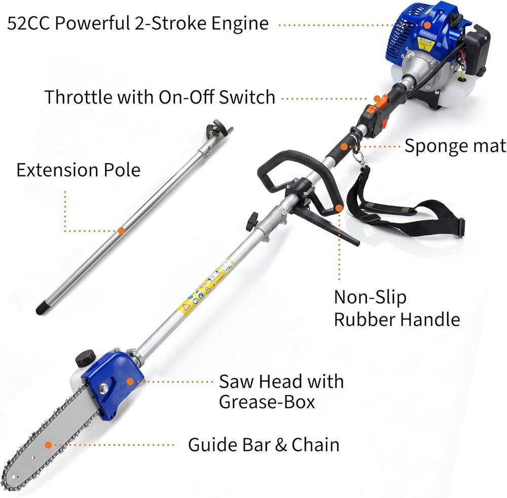 52CC Pole Saw Gas Powered 2-Stroke Chainsaw Tree Trimmer Extension Hedge Trimmer
