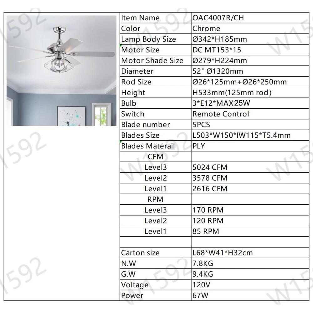 $ 101.3842"Crystal Fandelier Fan Lights Modern Ceiling Fan with Light and Remote Fan