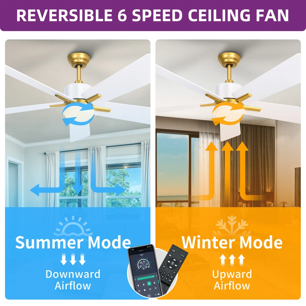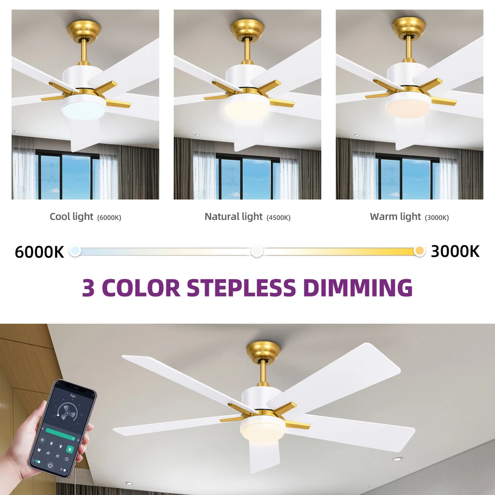 Product Description Specifications: Color:Black & Gold; White & Gold Product Dimensions: 52"L x 52"W x 15"H Numbers of Blades: 5 Numbers of Speeds: 6 Material: Metal Sound Level: 35 dB Item Weight: 16.5 pounds Control Method: Remote Control & APP Control Mounting Type: Ceiling Mount Assembly Required:Yes Package Included: 1 x Ceiling Fan 1 x Remote Control (Battery Not Included) 1 x Instructions Manual Product Details Shipping 1.The shipping rates listed are only for residential or commercial destinations in the continental 48 United States. All international sales will go through eBay Global Shipping Program.please ask us if there are any questions. 2.We only ship the item to the address that is sent to us at the time of checkout. Please verify the correct shipping address in your PayPal account before making your payment. If we ship your item to an old or invalid address and you are not able to locate the item, we are not responsible for shipping a replacement. 3.Currently, we do not ship to Hawaii, Alaska, Puerto Rico,APO/FPO/PO Boxes. 4.We use USPS, UPS & FedEx as shipping method. 5.Payments cleared before 12 PM PST, will be shipped on the same day. Payment 1.We accept PayPal and all forms of credit card. 2.We will only ship to the confirmed Paypal shipping address given with the payment. 3.We do not offer local pick up service. Return 1.30 days Money Back Guarantee. 2.If any package that needs to be returned, please contact our customer service first to receive a RMA form. 3.All return items MUST be in brand new condition. About Us 1.Specialized in aftermarket auto parts since 2012, we source and work directly with professional manufacturers to provide the highest quality parts at the most economical prices. 2.We also has over 5 years of shipping experience with FedEx and USPS . Our Packing Quality is Guaranteed , Item Ship-ping is timely! On Feb 13, 2025 at 03:50:45 PST, seller added the following information: