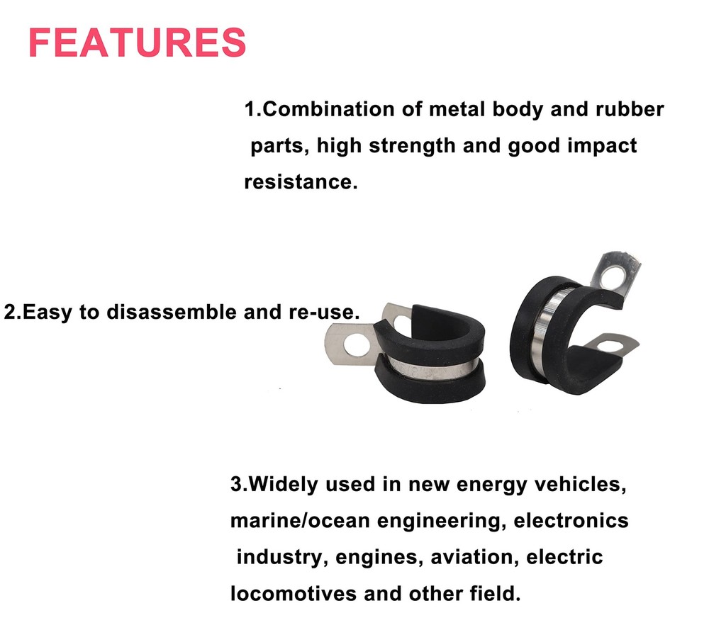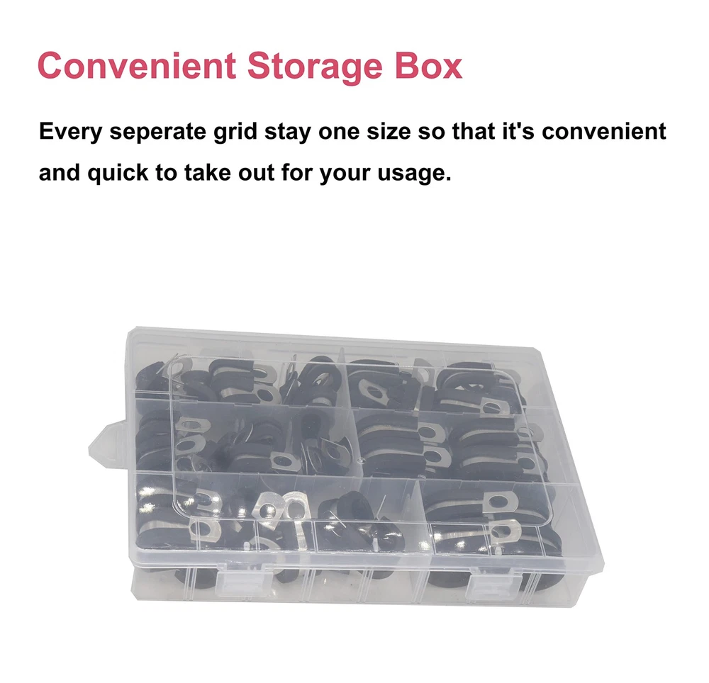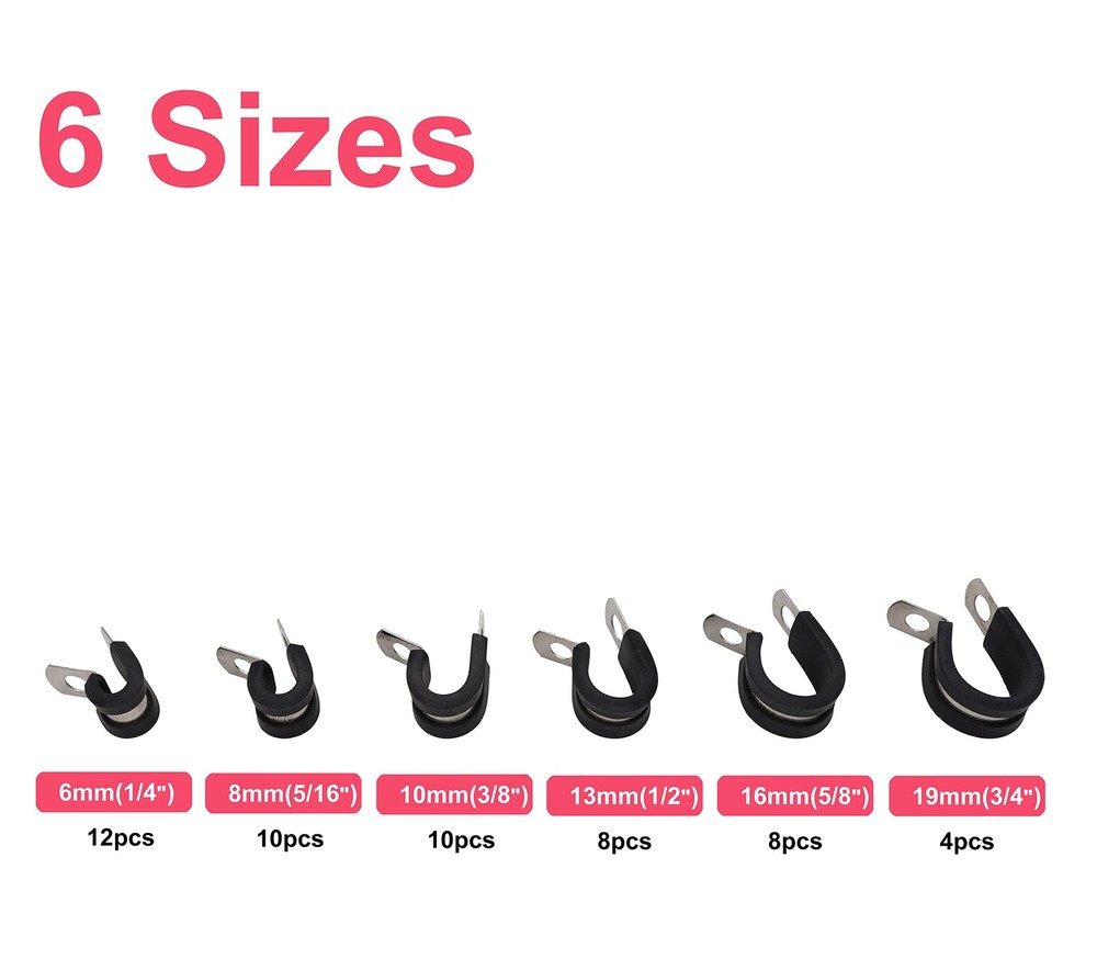 π Name: Cable Clamps Wire Hold Downs; π Include sizes: 1/4'' 5/16'' 3/8'' 1/2'' 5/8'' 3/4''; π Features: Cable clamp fit M6( 1/4 inch) or M5 screw bolt to through them, very easy to install and remove π Material: Made of 304 Stainless steel material with rubber cushioned. π Applications: it is widely used in construction, automobile, mechanical engineering, aircraft, ship and other industries.